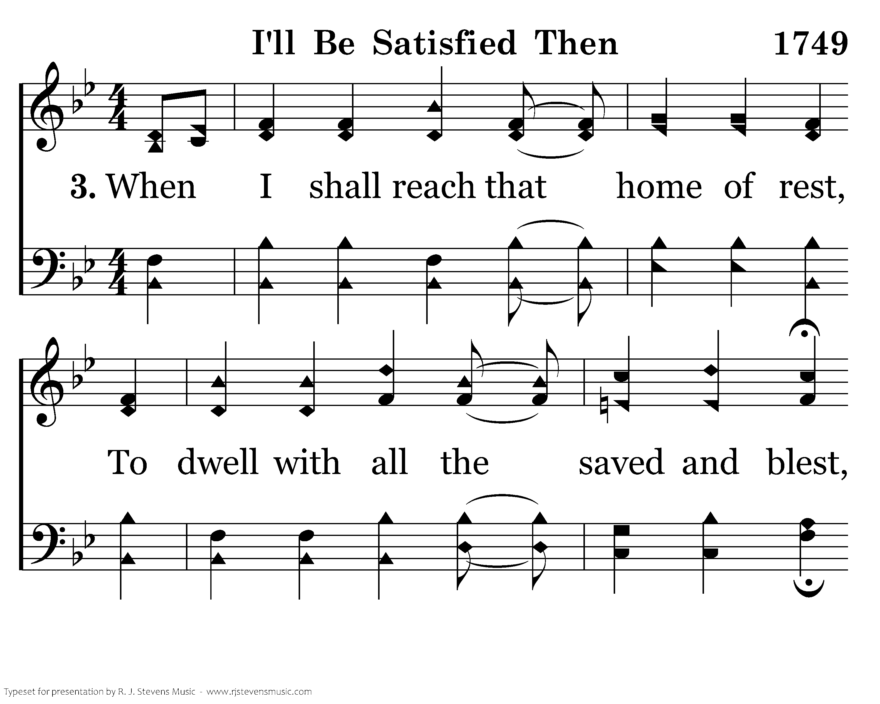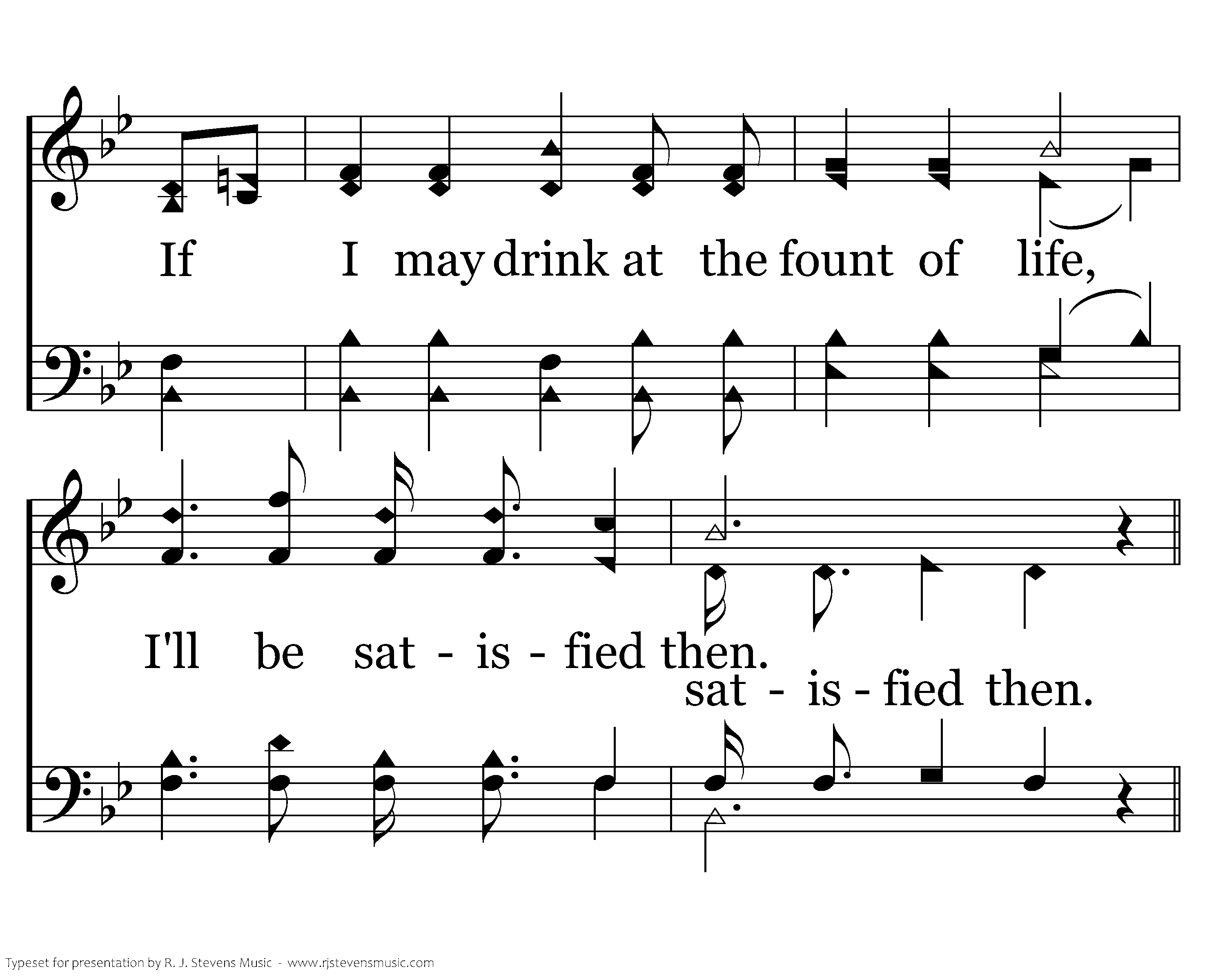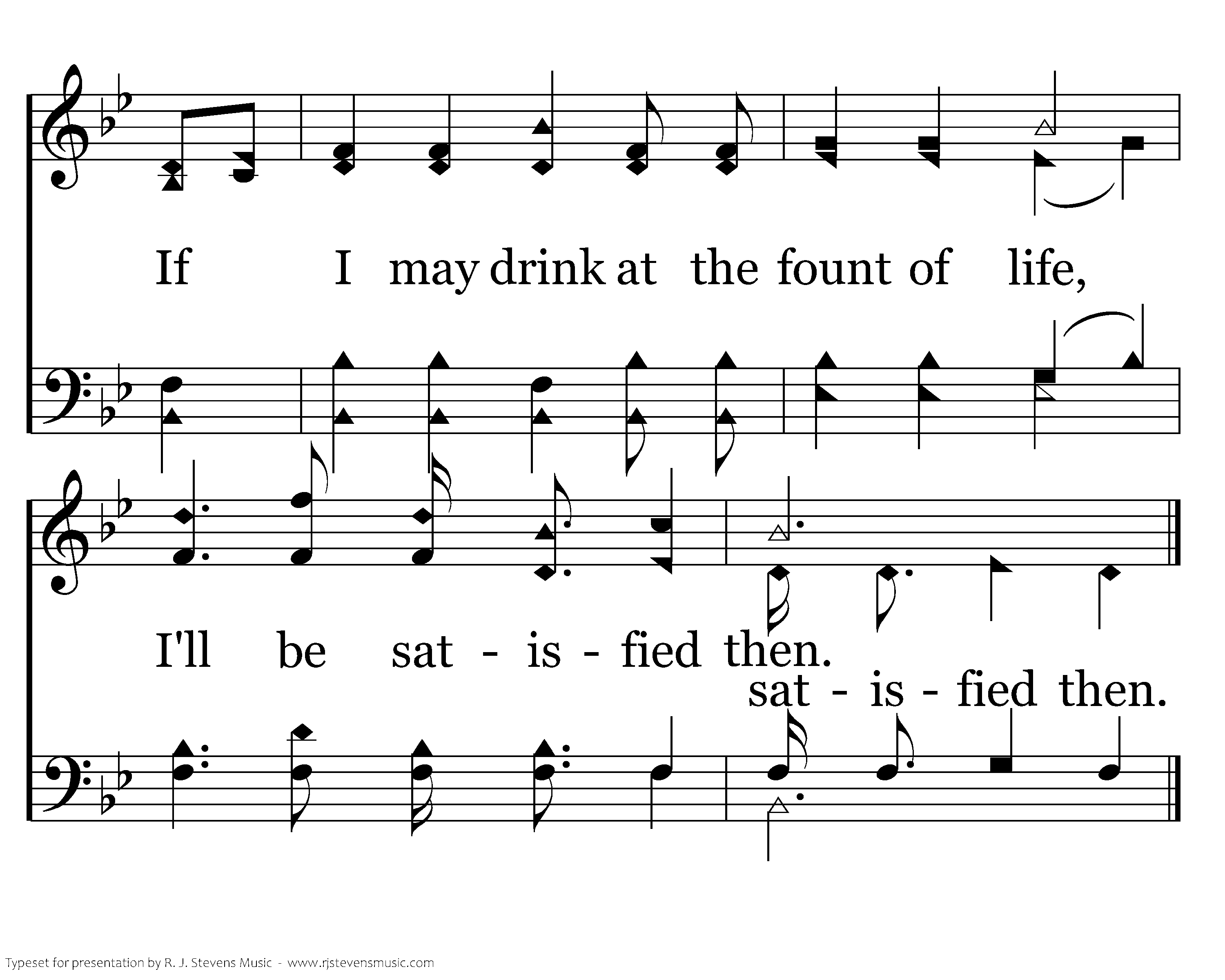 When I shall reach that home of rest, To dwell with all the saved and blest, If I may drink at the fount of life, I'll be satisfied then. I'll be satisfied then, I'll be satisfied then, If I may drink at the fount of life, I'll be satisfied then.