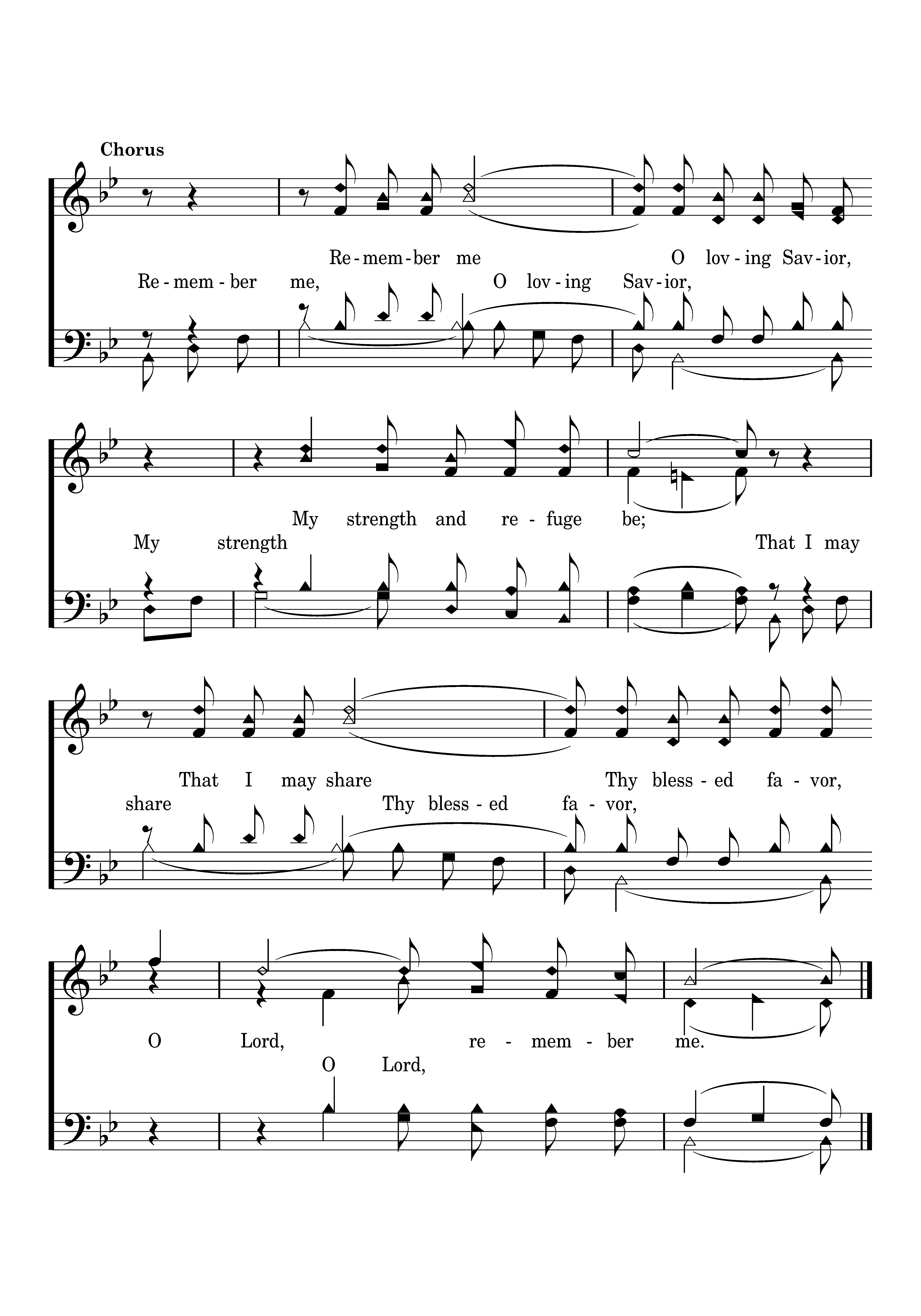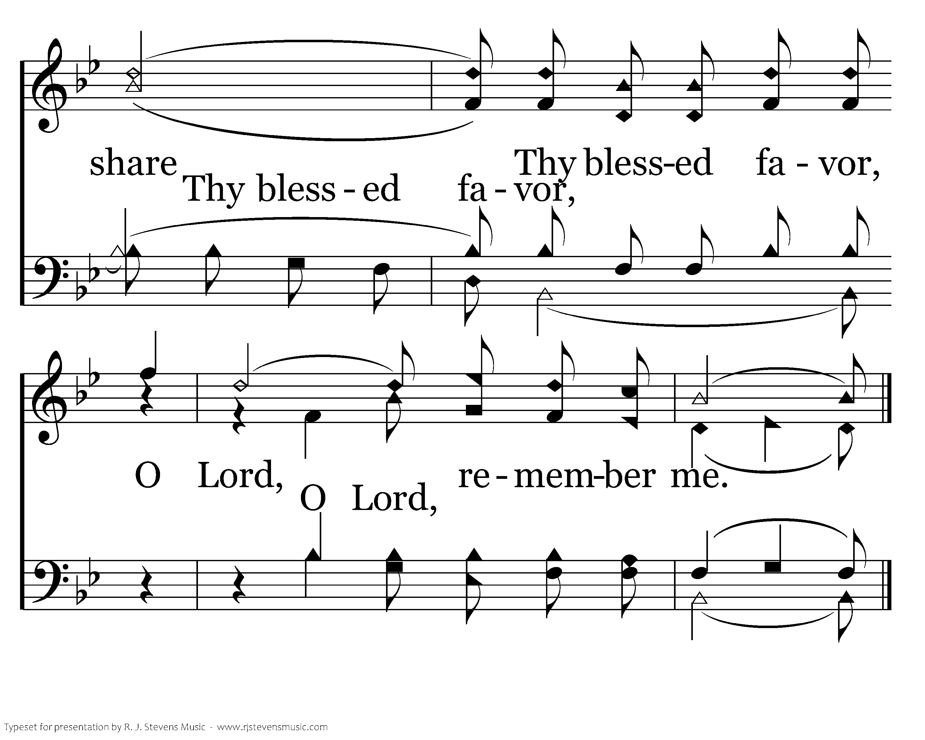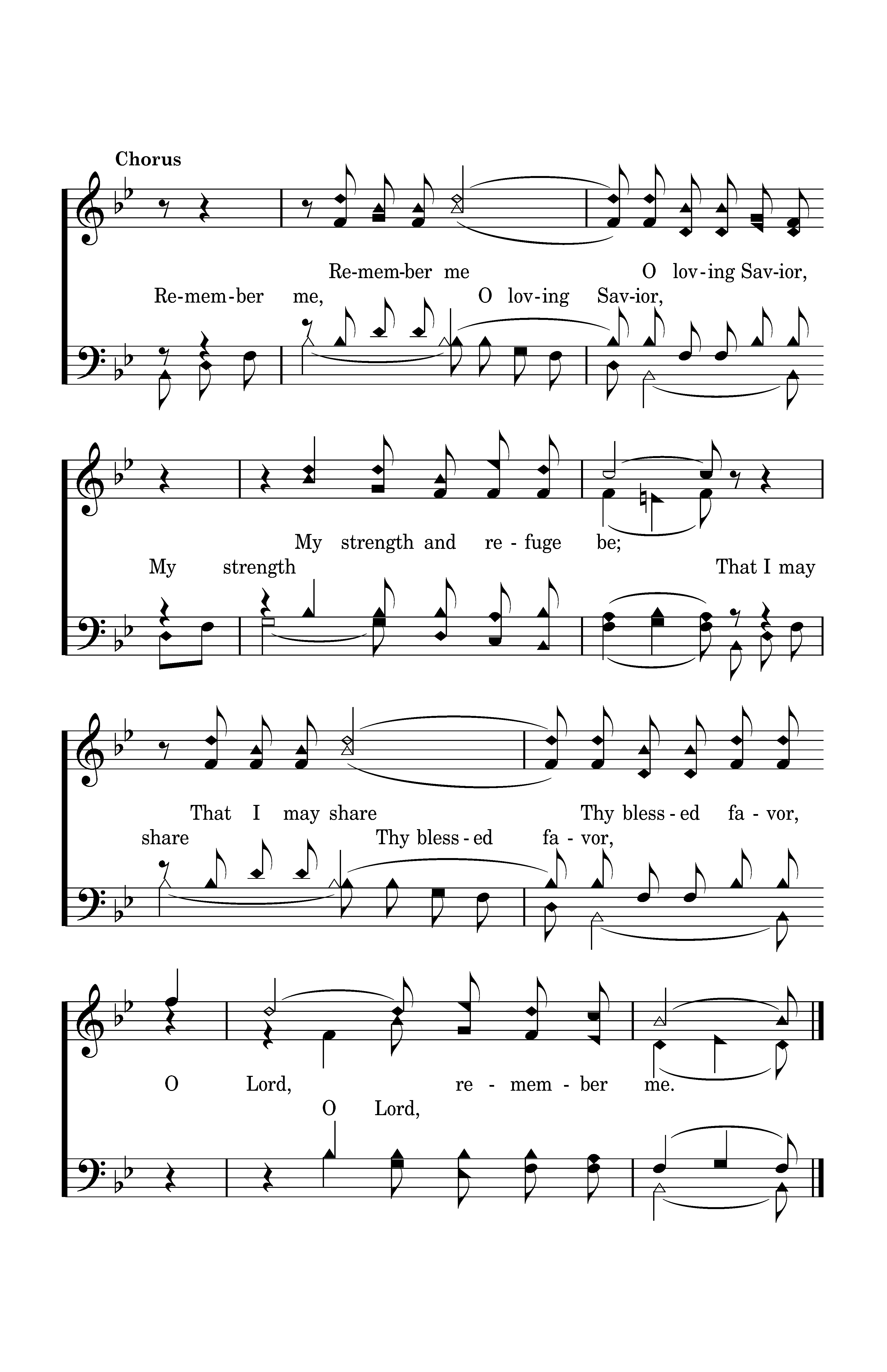 Remember me O loving Savior, My strength and refuge be; That I may share Thy blessed favor, O Lord, remember me.