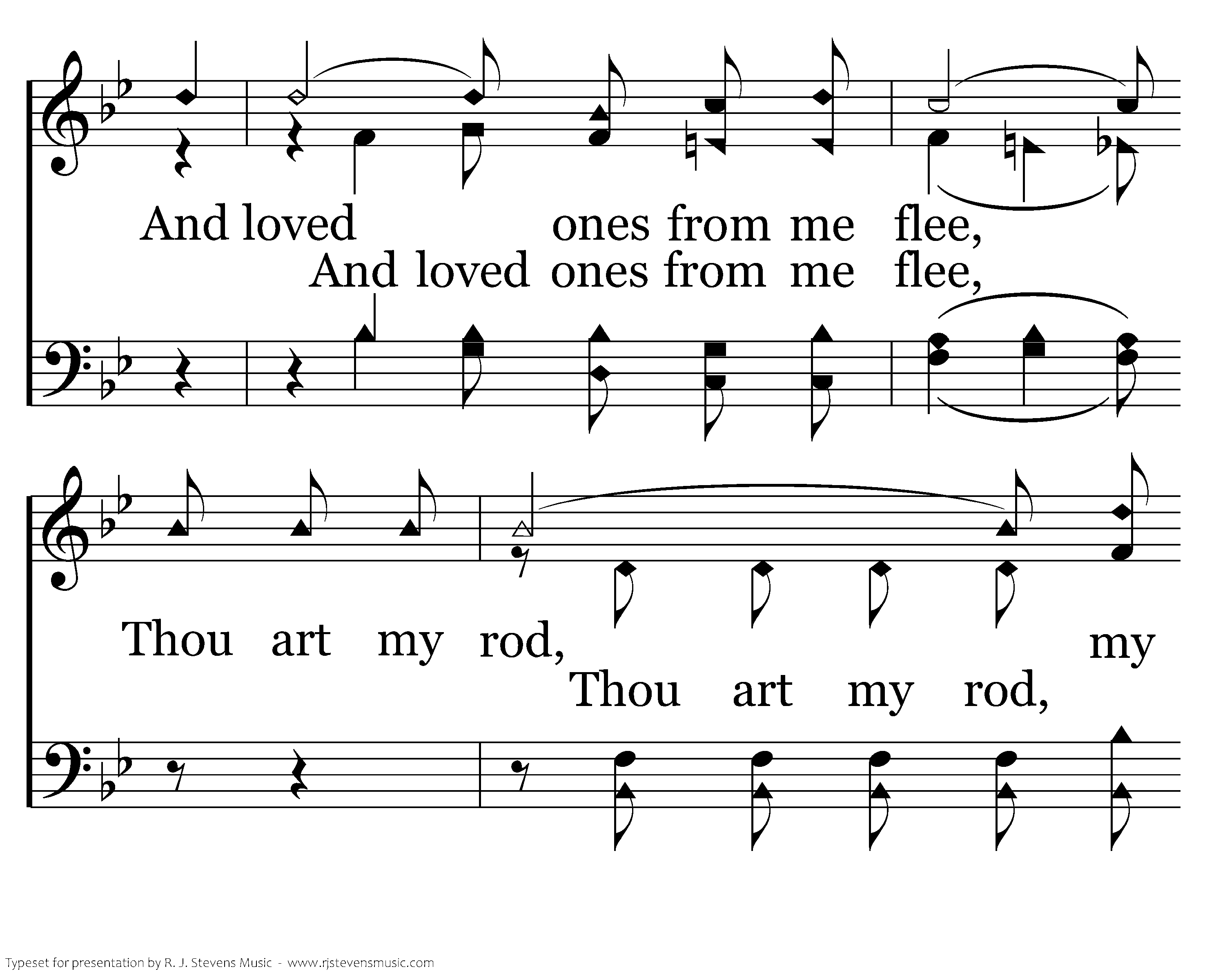 When cherished friends of earth forsake me, And loved ones from me flee, Thou art my rod, my staff, my comfort,