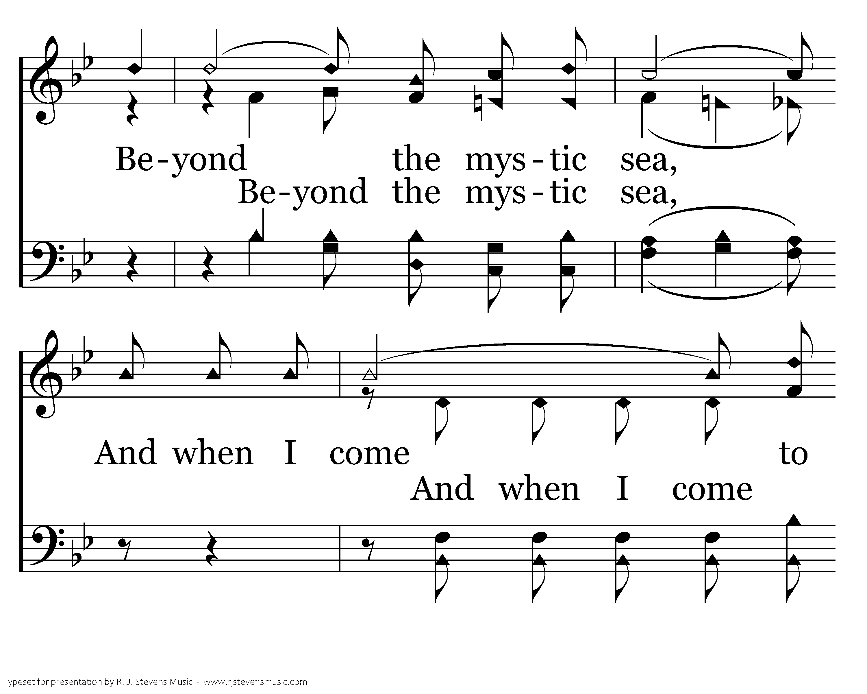 I know that I will soon be going Beyond the mystic sea, And when I come to make the crossing,