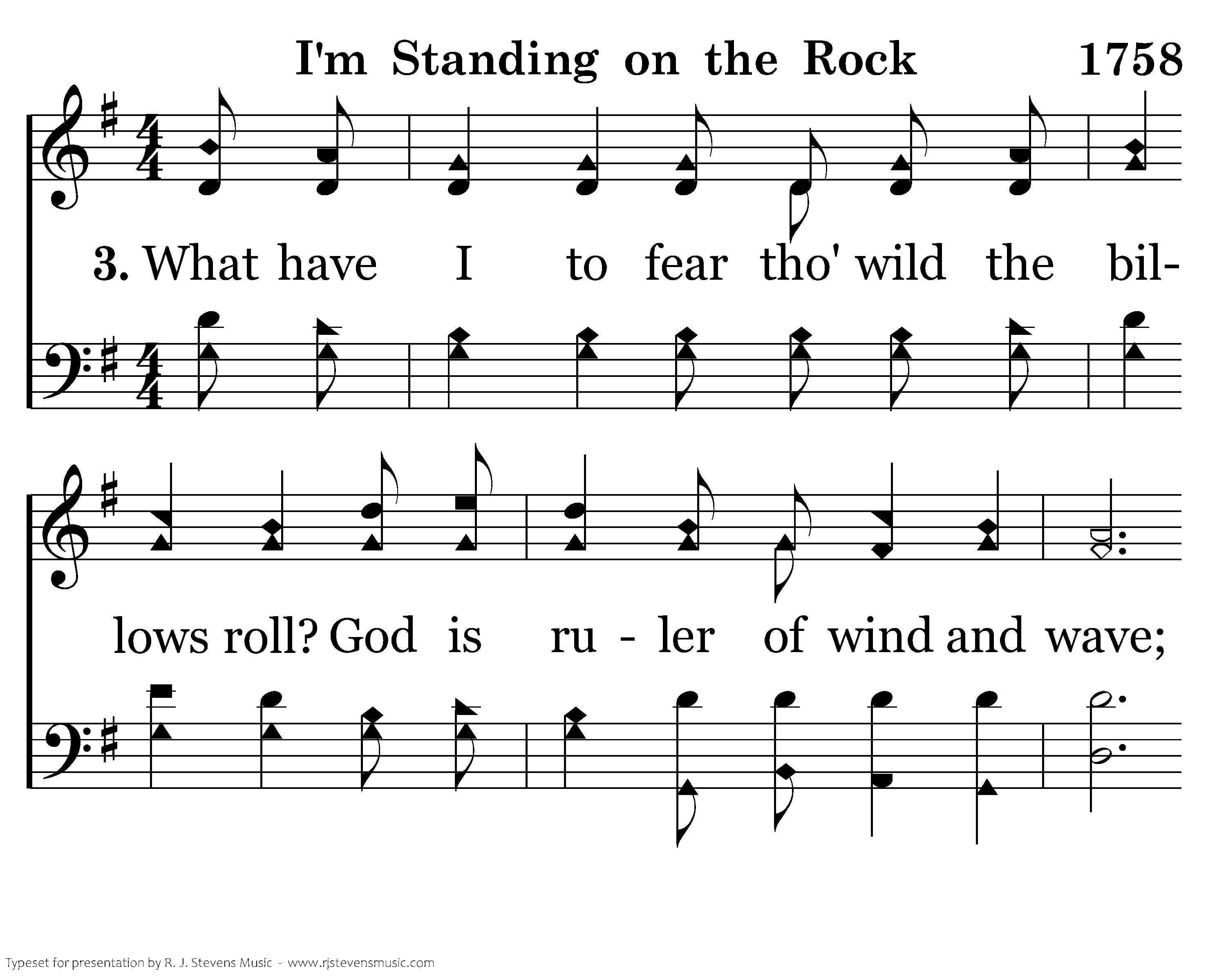 What have I to fear tho wild the billows roll? God is ruler of wind and wave; While my feet are planted on the Solid Rock, Ev'ry threat'ning peril I can brave.