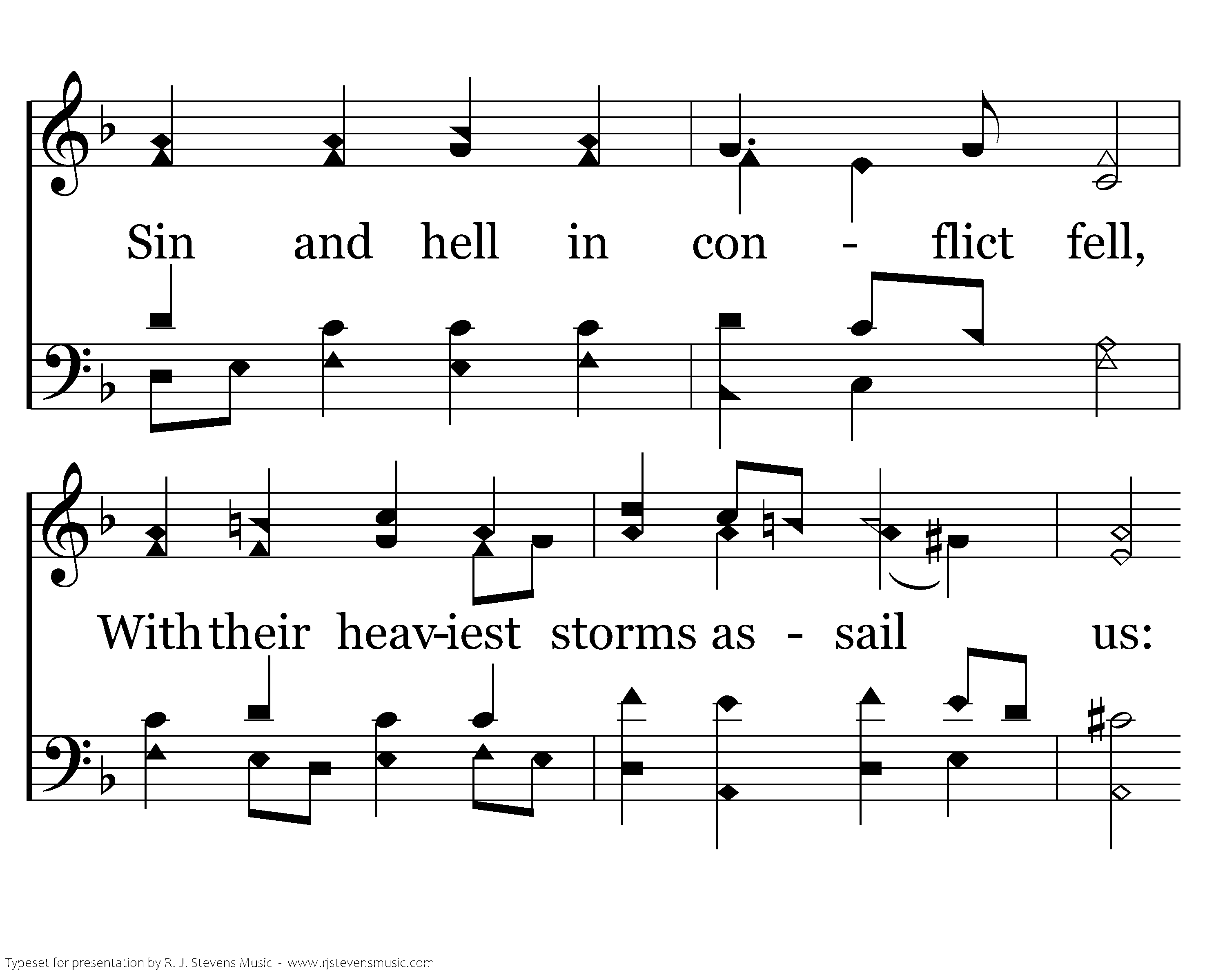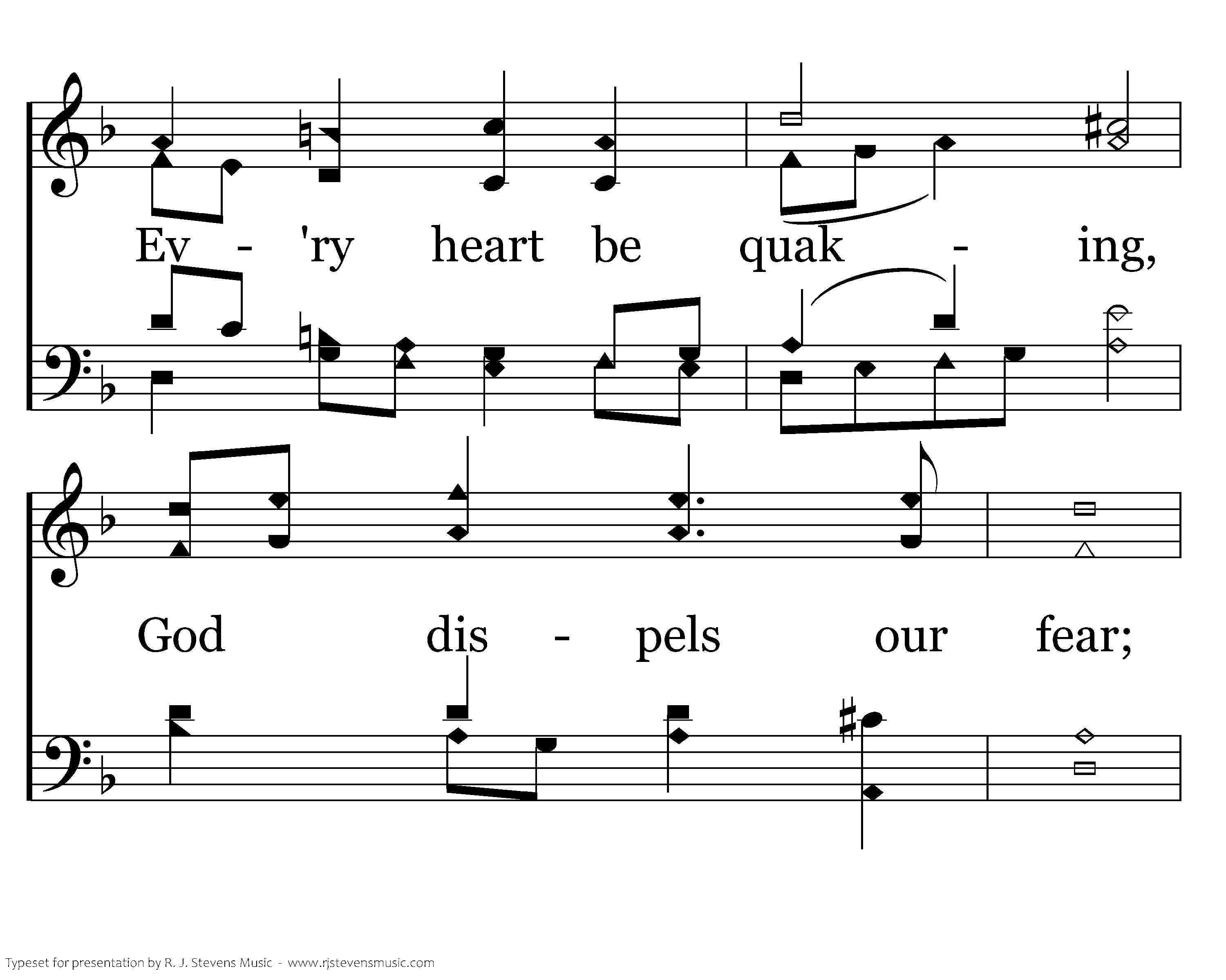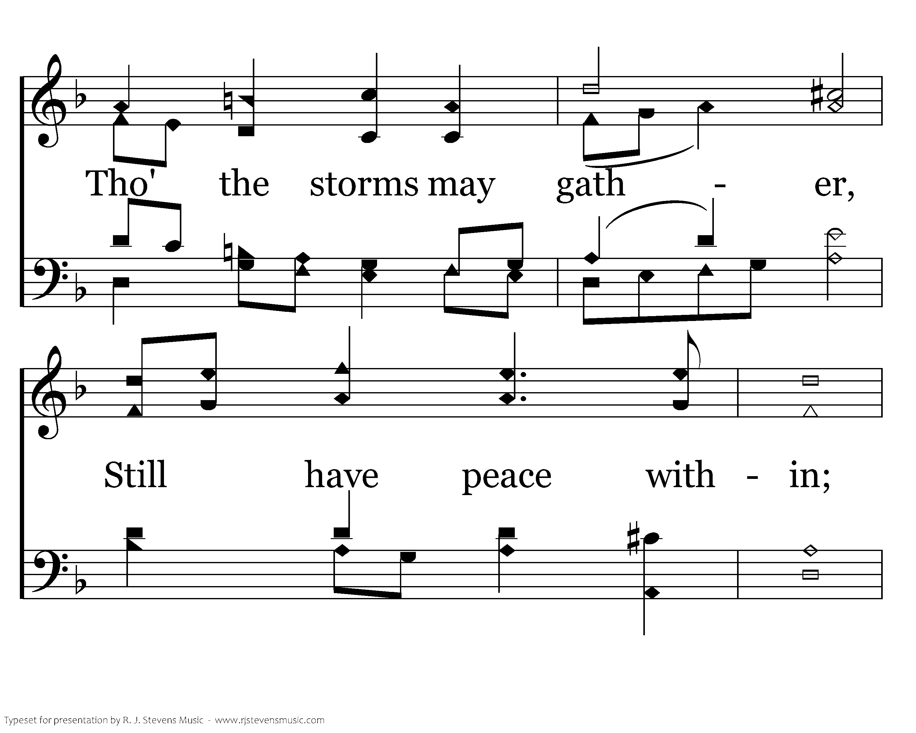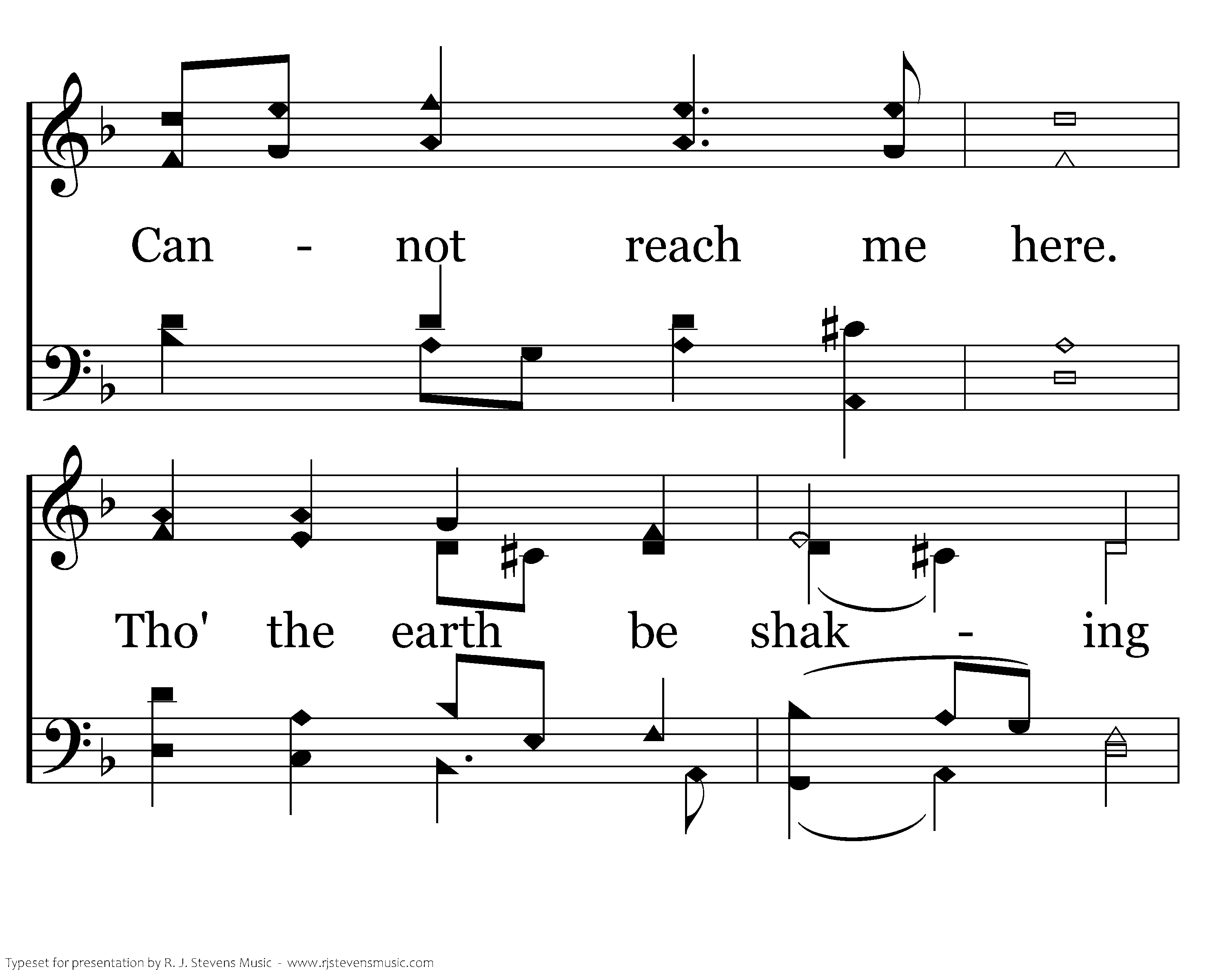 In Thine arm I rest me; Foes who would molest me Cannot reach me here. Tho' the earth be shaking Ev'ry heart be quaking, God dispels our fear; Sin and hell in conflict fell, With their heaviest storms assail us: Jesus will not fail us.