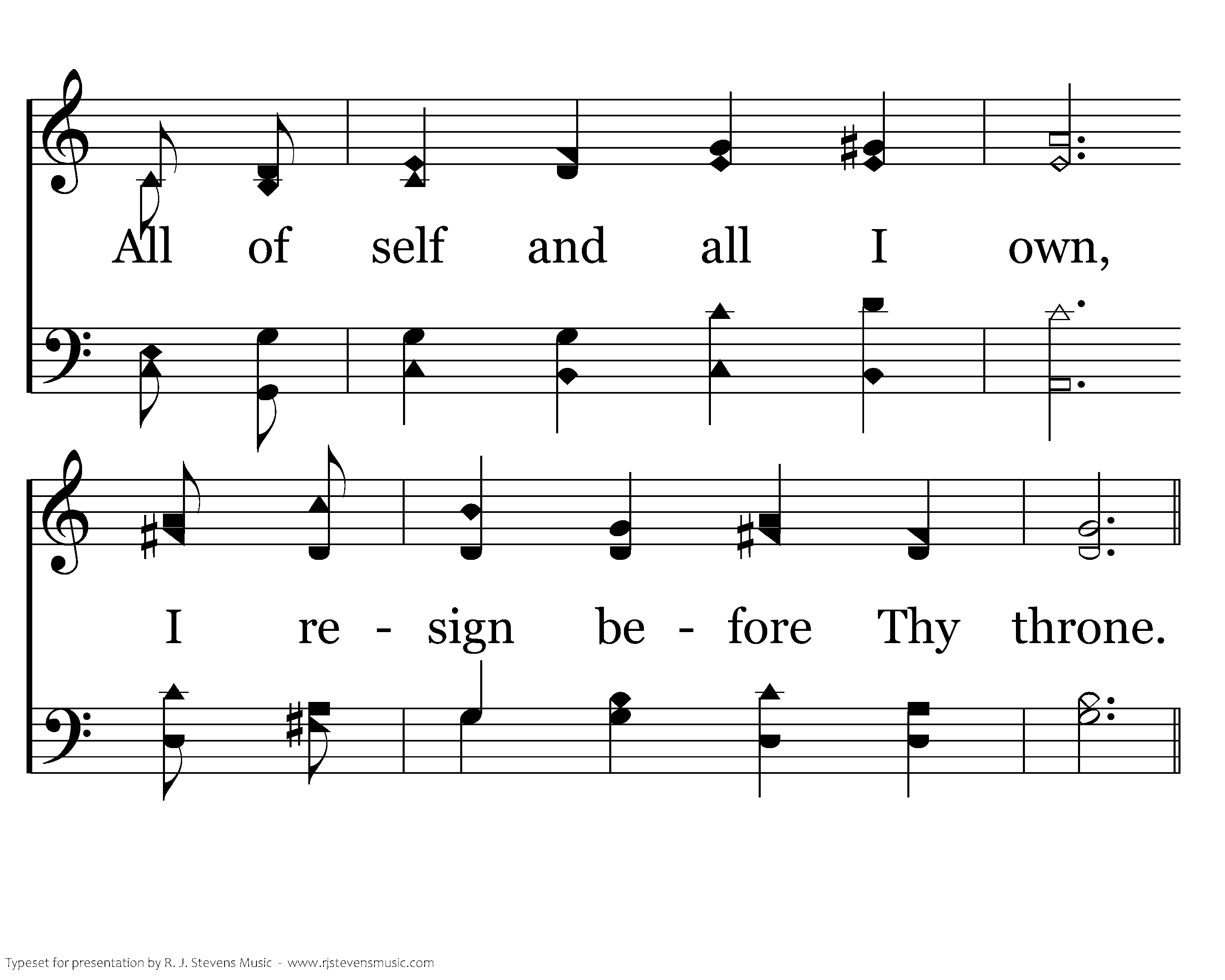 I would be completely Thine, Lord and King of love divine; All of self and all I own, I resign before Thy throne.