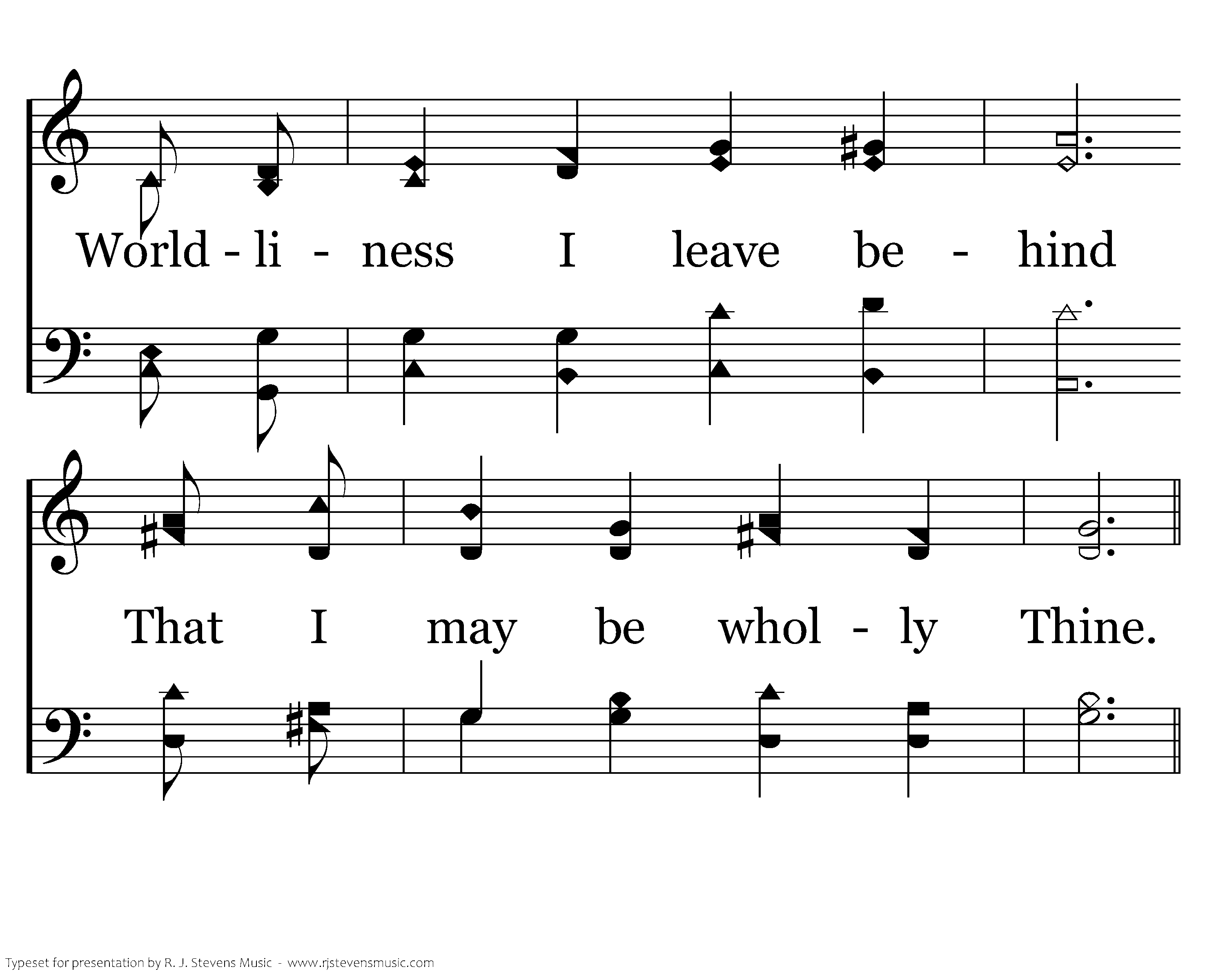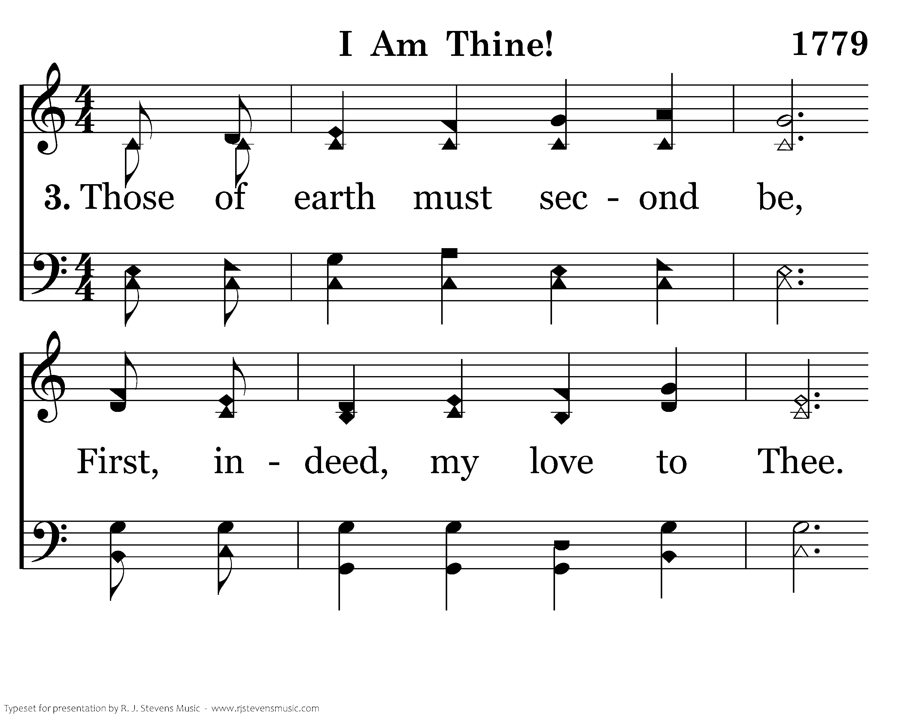 Those of earth must second be, First, indeed, my love to Thee. Worldliness I leave behind That I may be wholly Thine.
