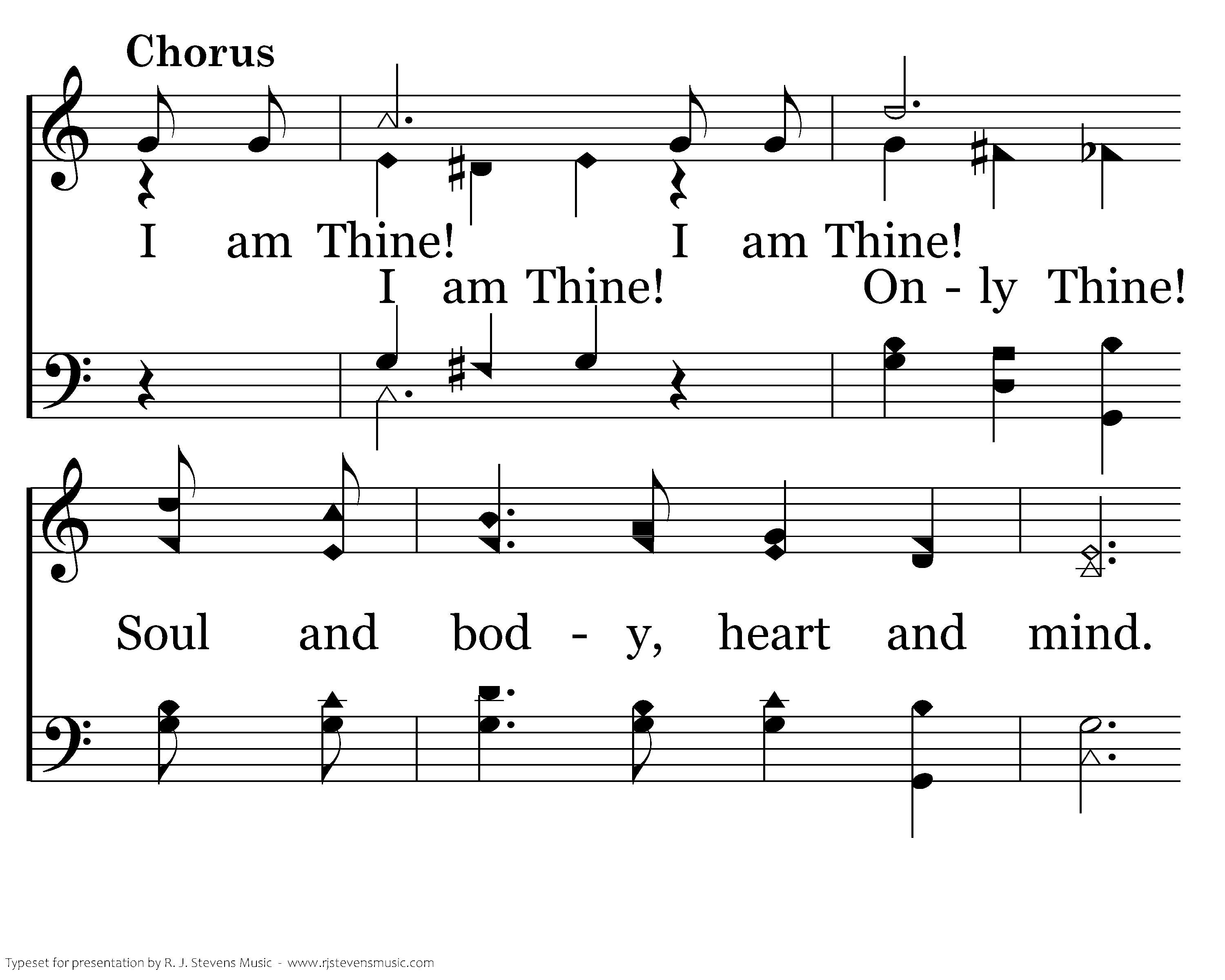 I am Thine! I am Thine! Soul and body, heart and mind. I am Thine! I am Thine! I am Thine and Thou art mine!