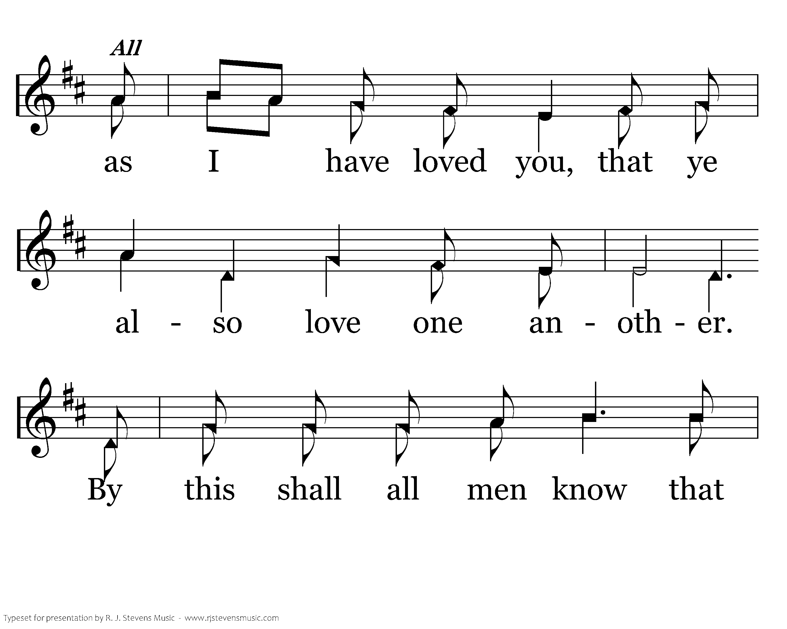 A new commandment I give unto you, that ye love one another, that ye love one another as I have loved you, that ye also love one another. By this shall all men know that ye are my disciples, by this shall all men know that ye are my disciples if ye have love one to another, if ye have love one to another, if ye have love one to another.