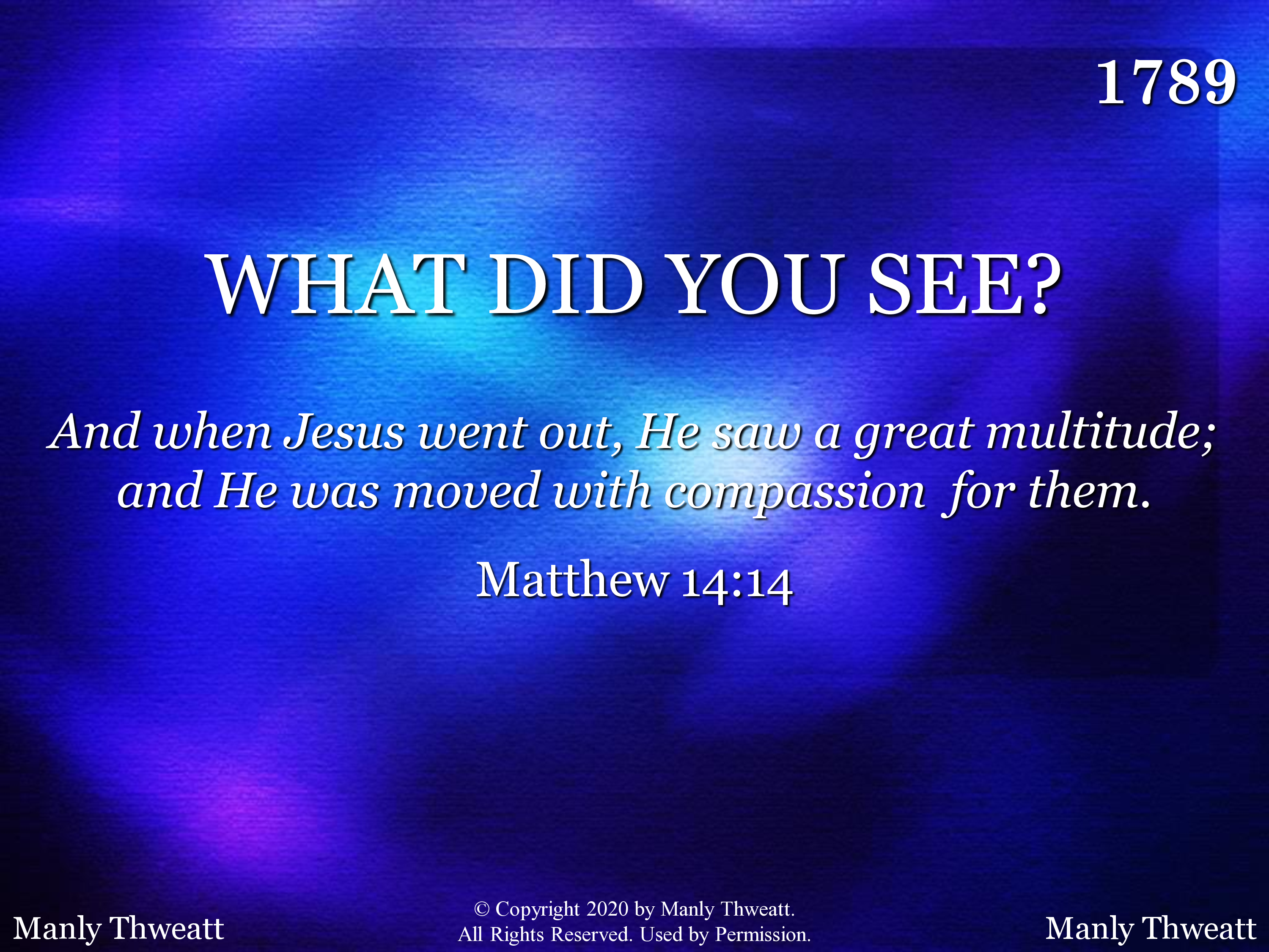 - © Copyright 2020 by Manly Thweatt. All Rights Reserved. Used by Permission.