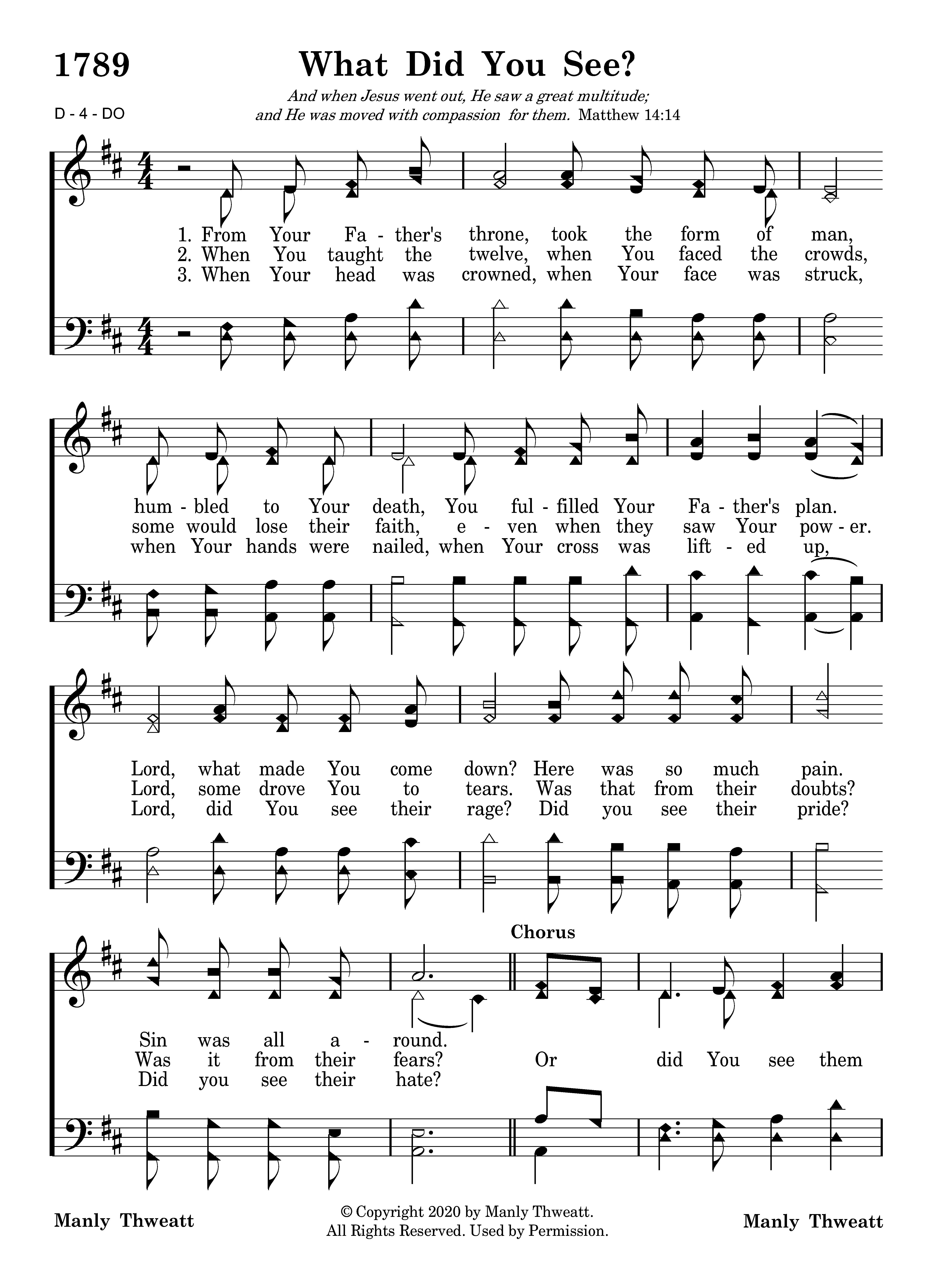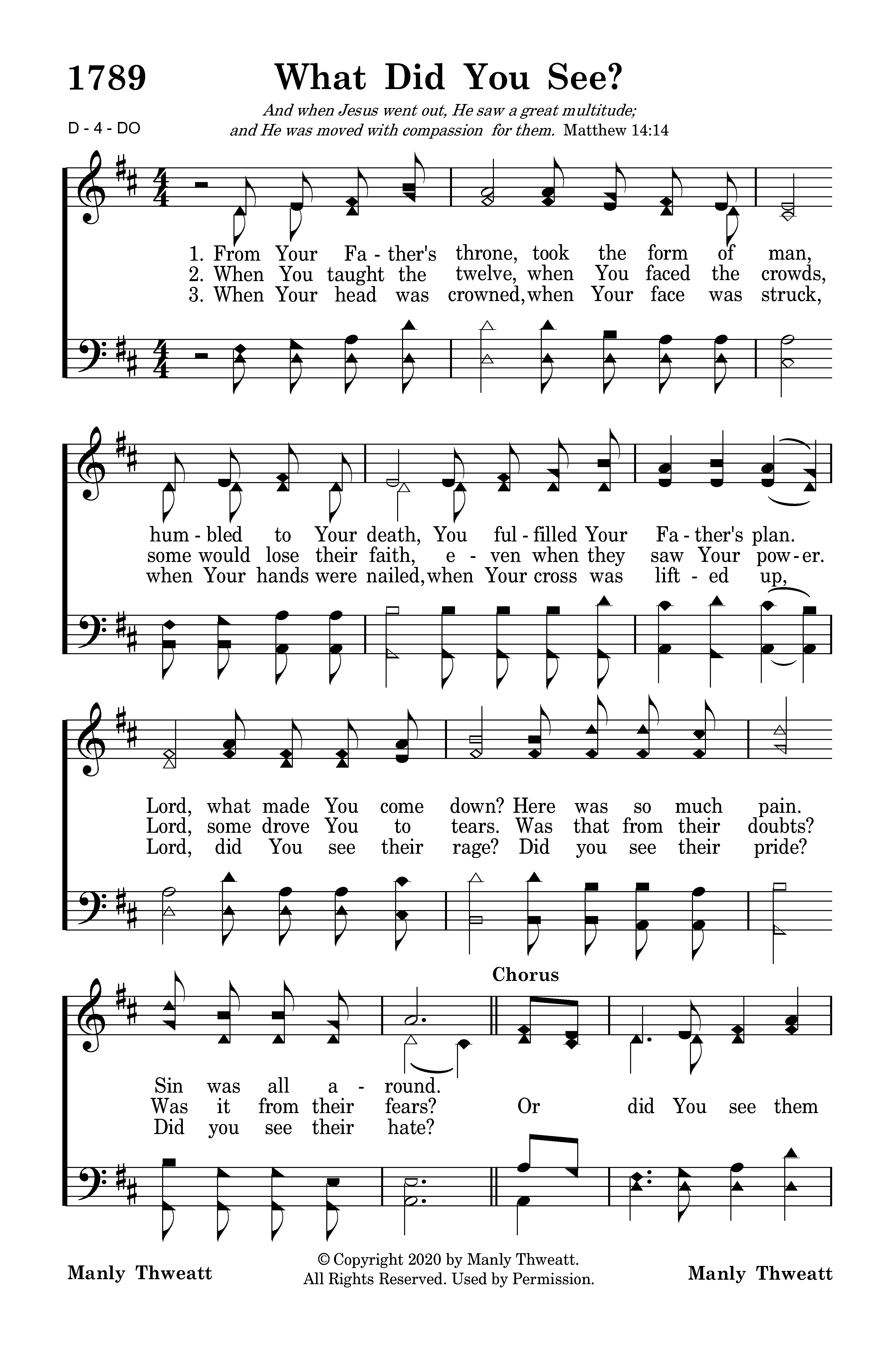 When Your head was crowned, when Your face was struck, when Your hands were nailed, when Your cross was lifted up, Lord, did You see their rage? Did you see their pride? Did you see their hate?