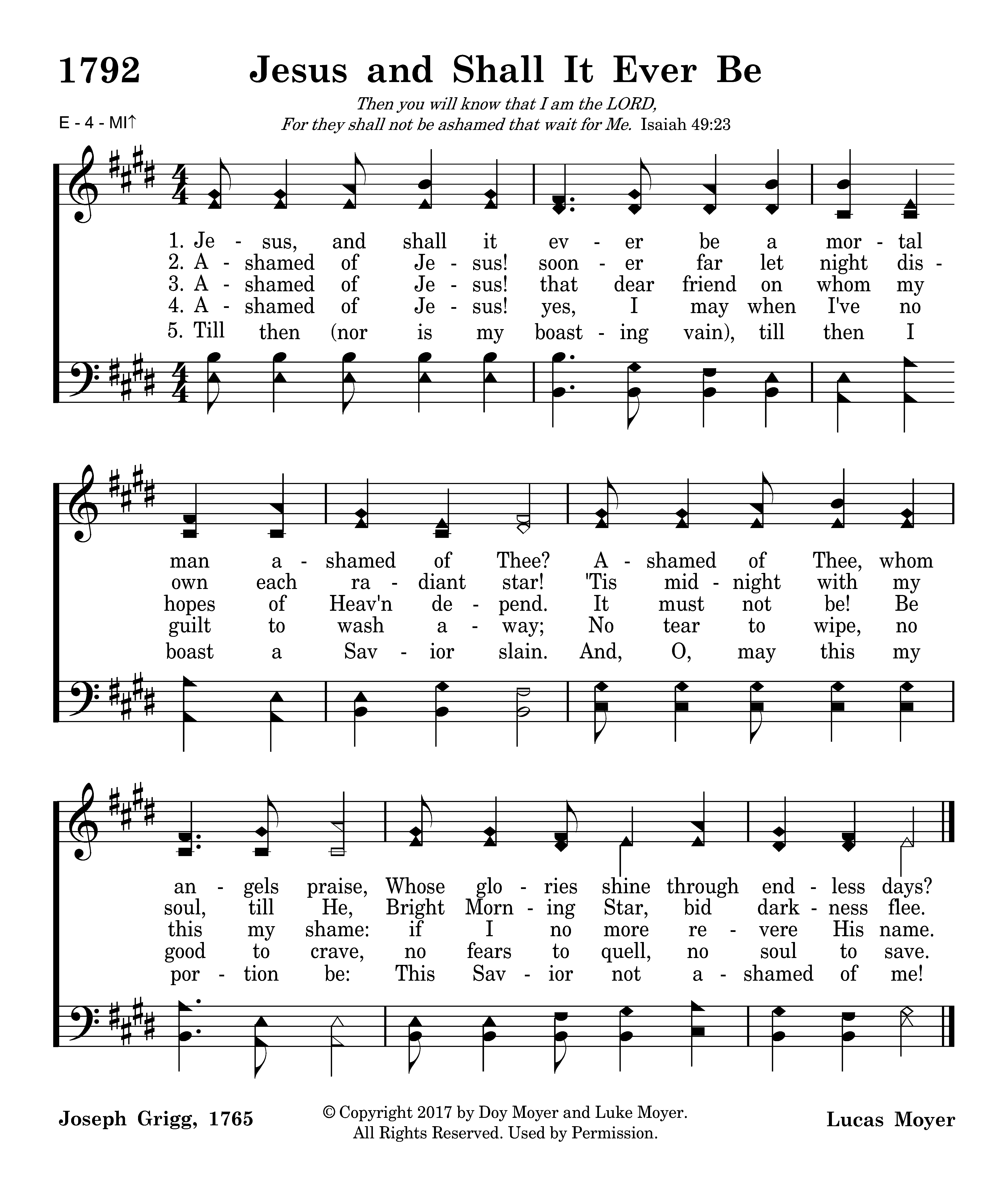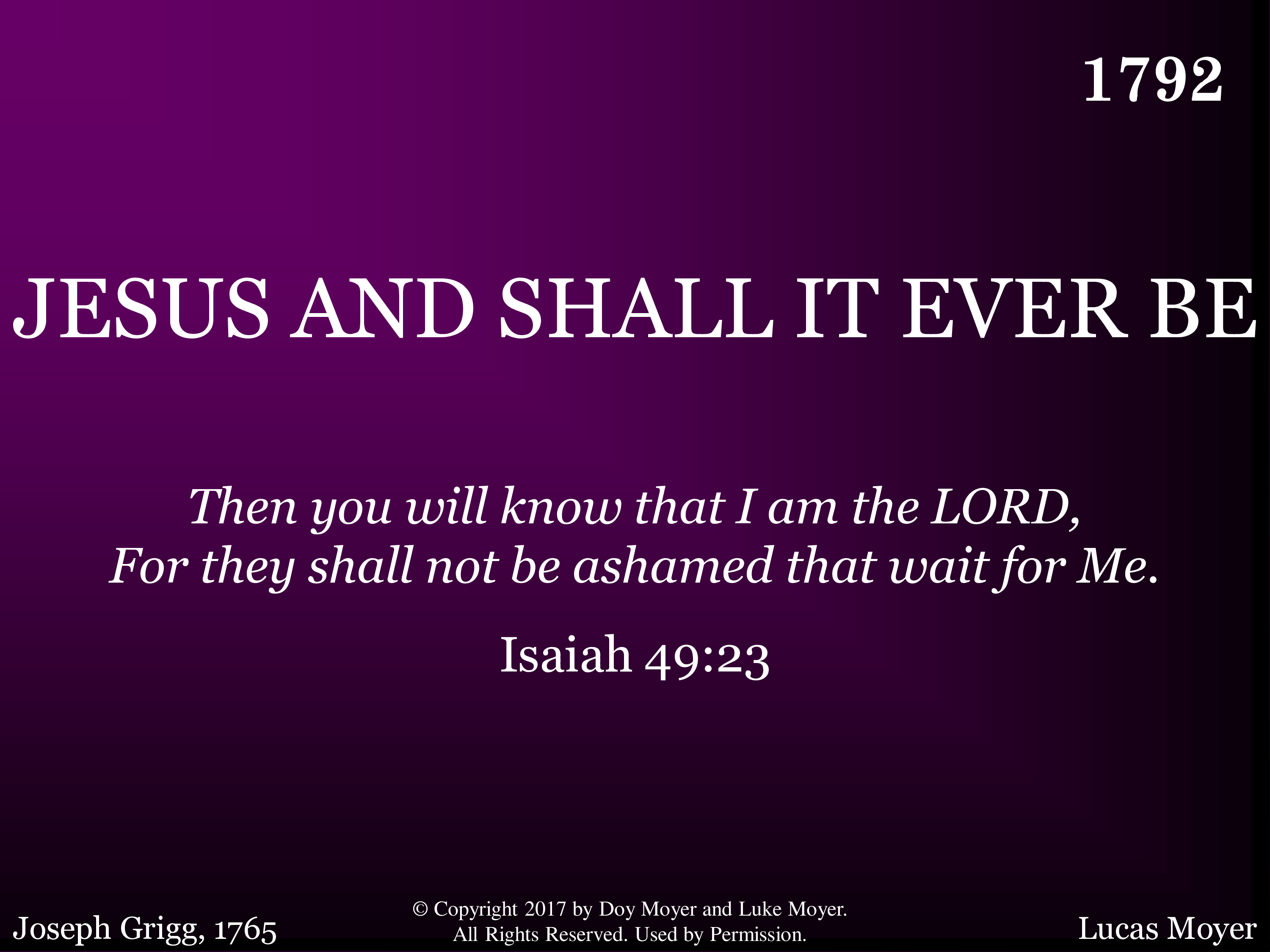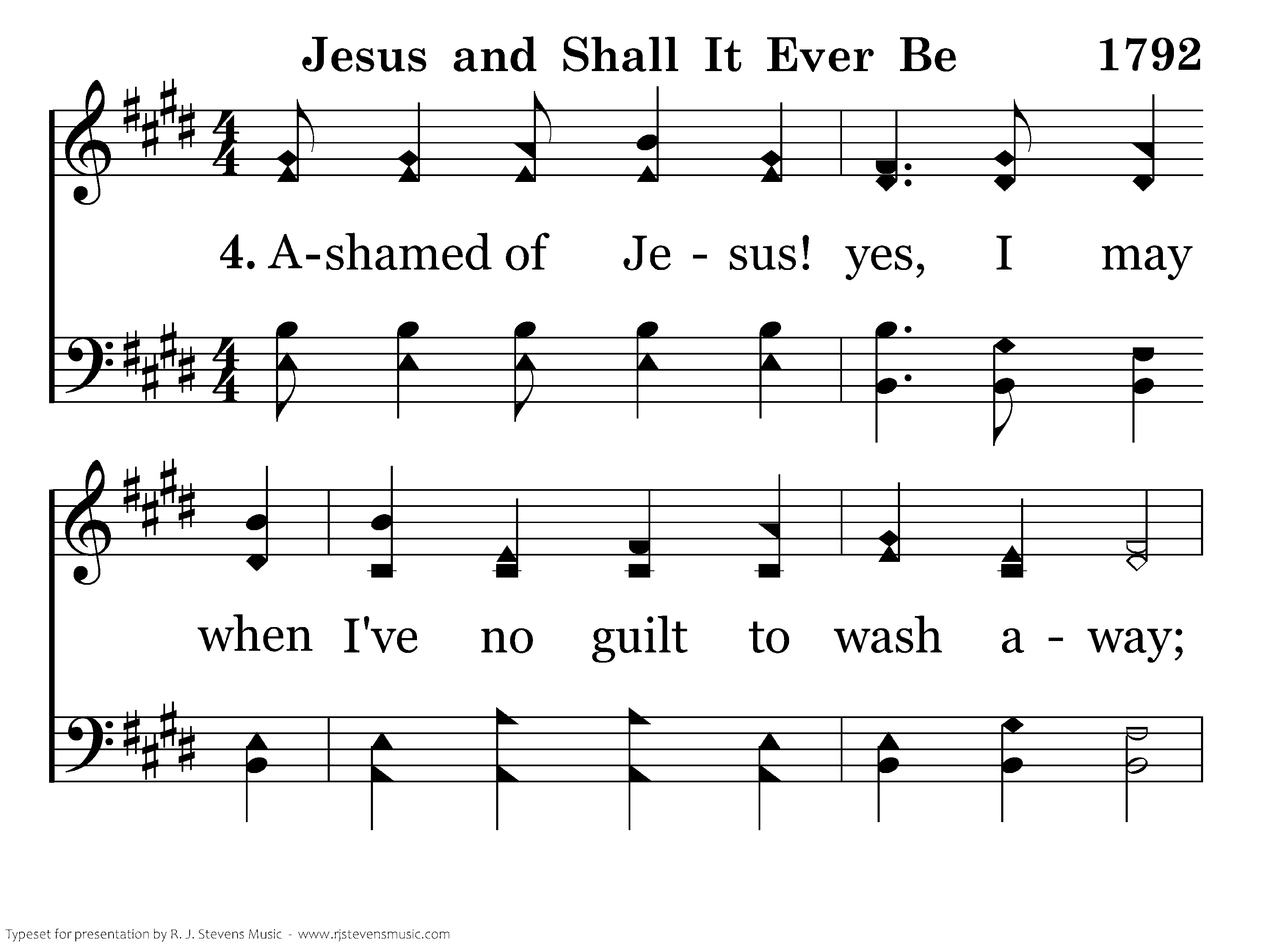 Jesus, and shall it ever be a mortal man ashamed of Thee? Ashamed of Thee, whom angels praise, Whose glories shine through endless days?