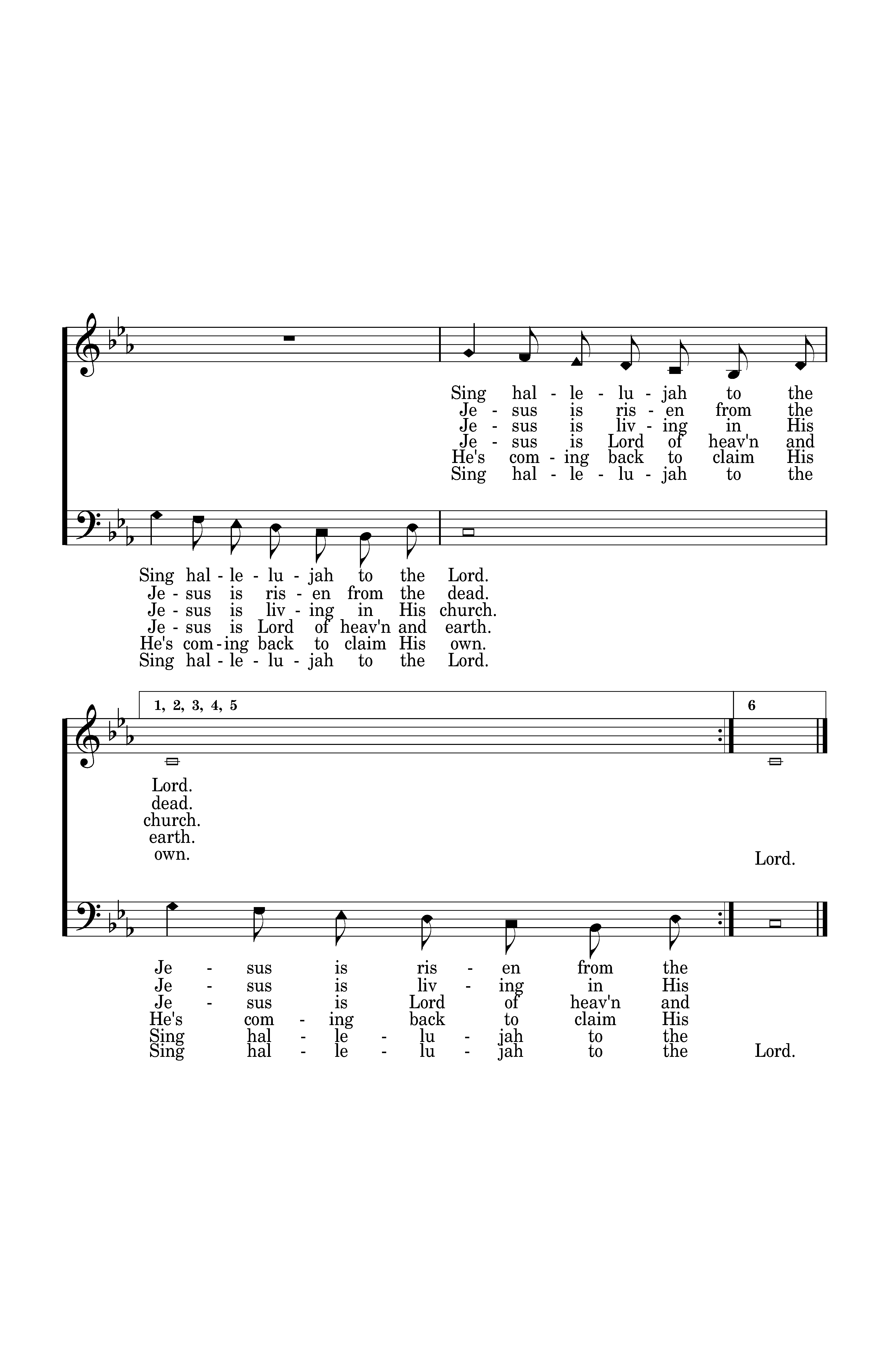 Sing hallelujah to the Lord, Sing hallelujah, Sing hallelujah to the Lord. Sing hallelujah, Sing hallelujah, Sing hallelujah to the Lord. Jesus is risen from the Lord. Lord.