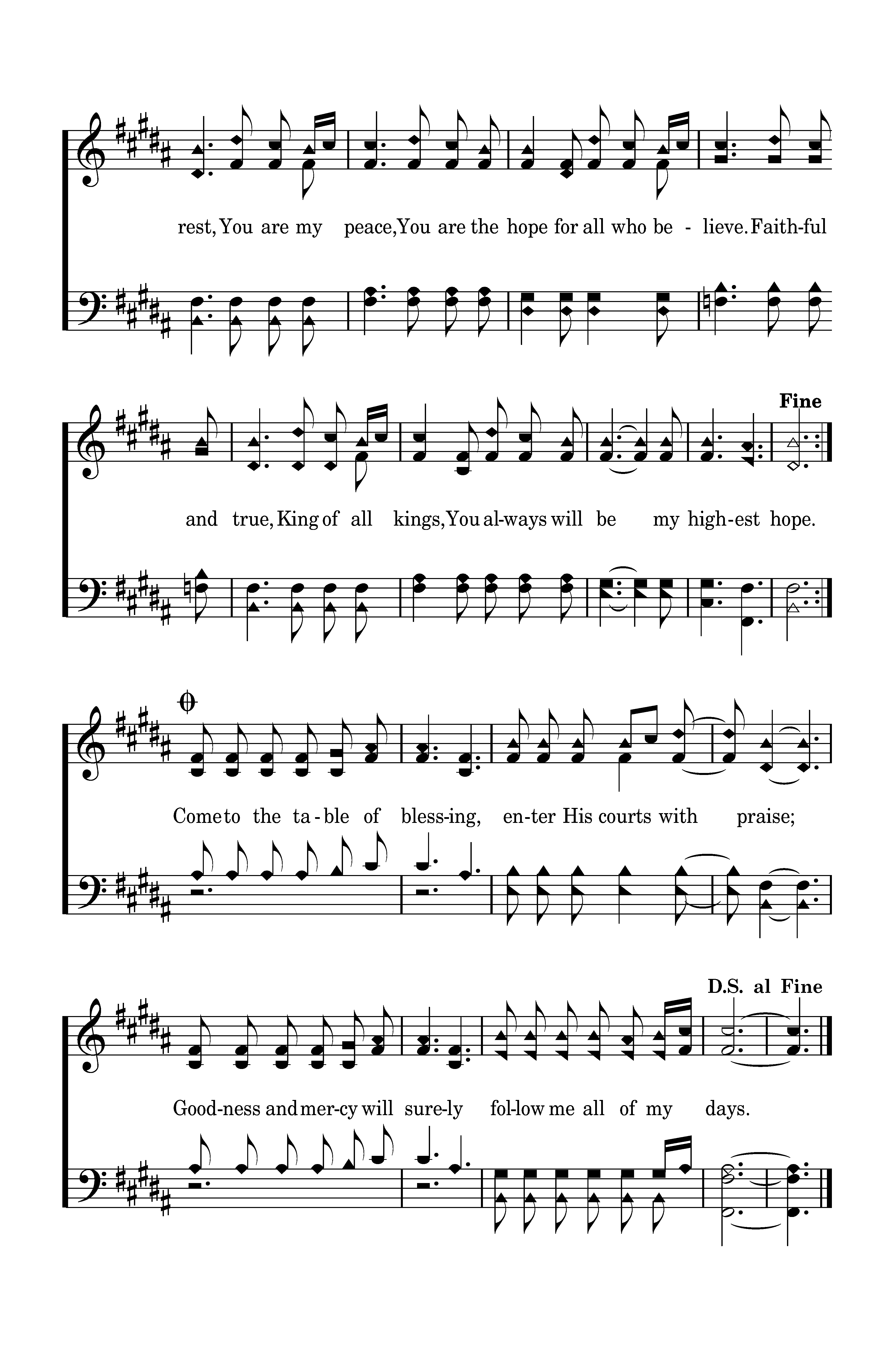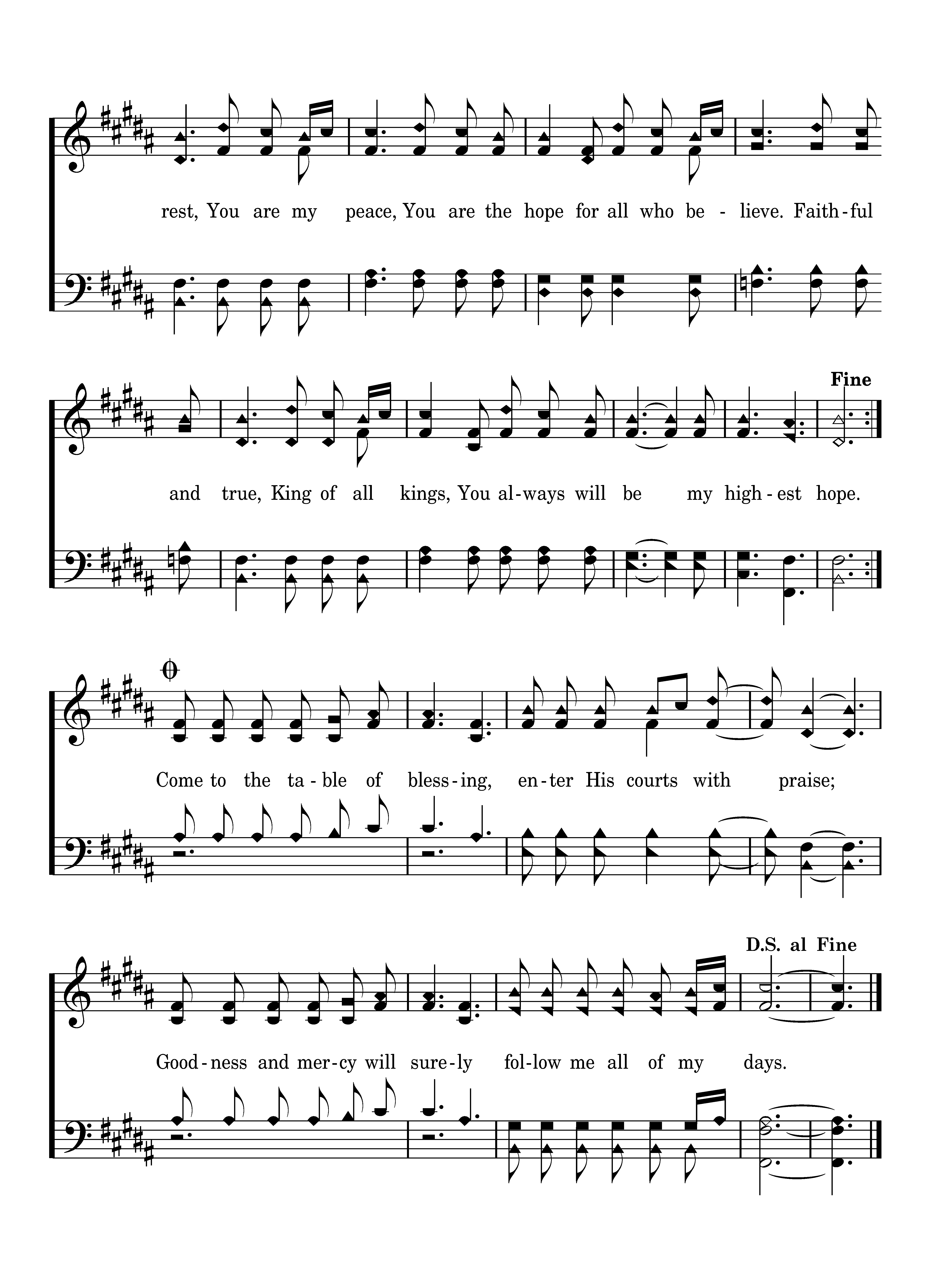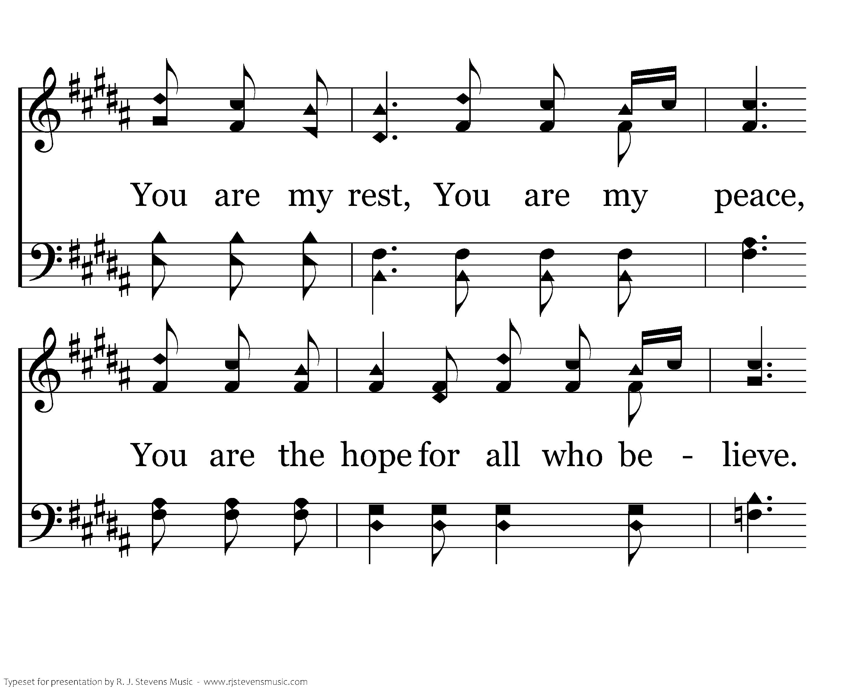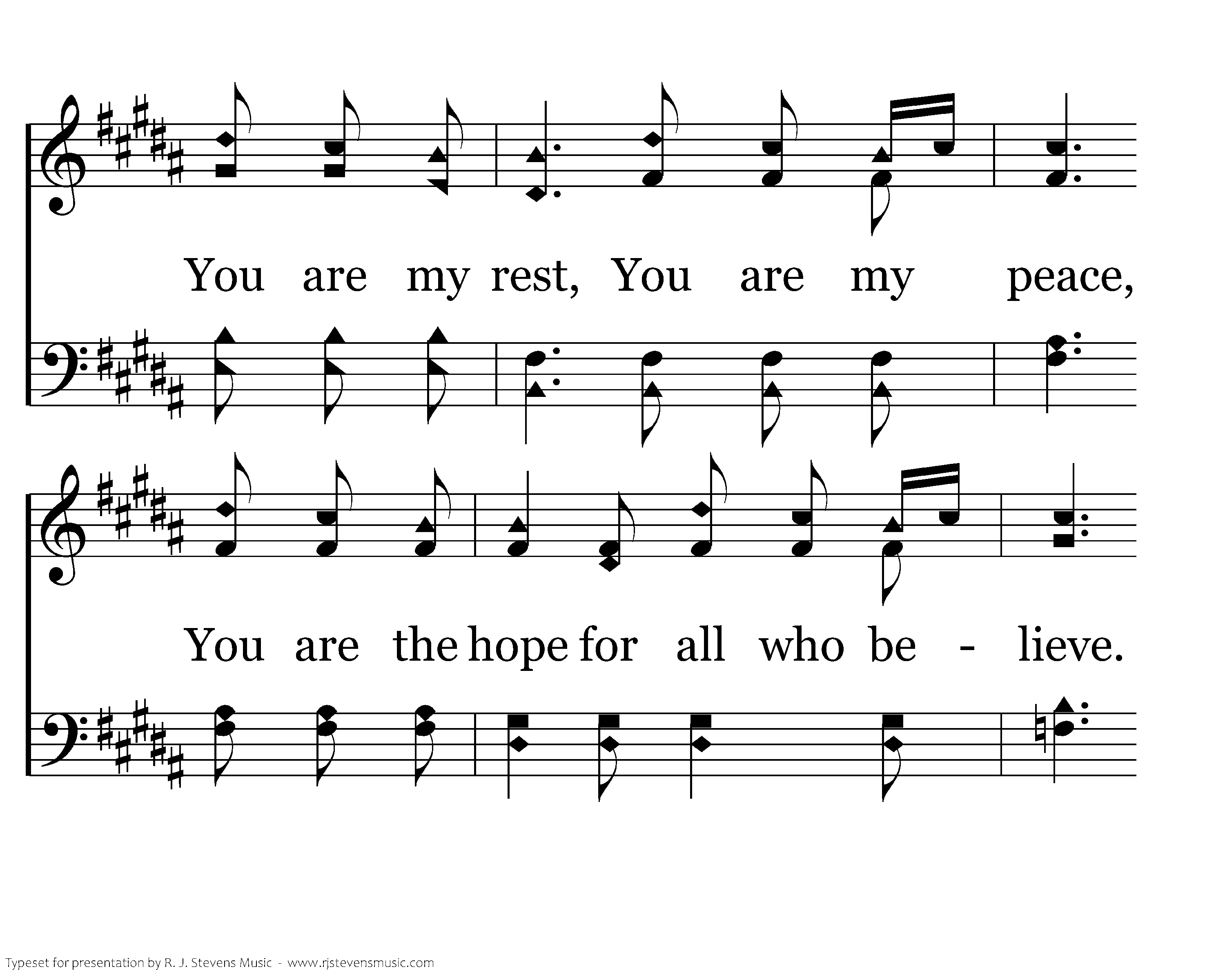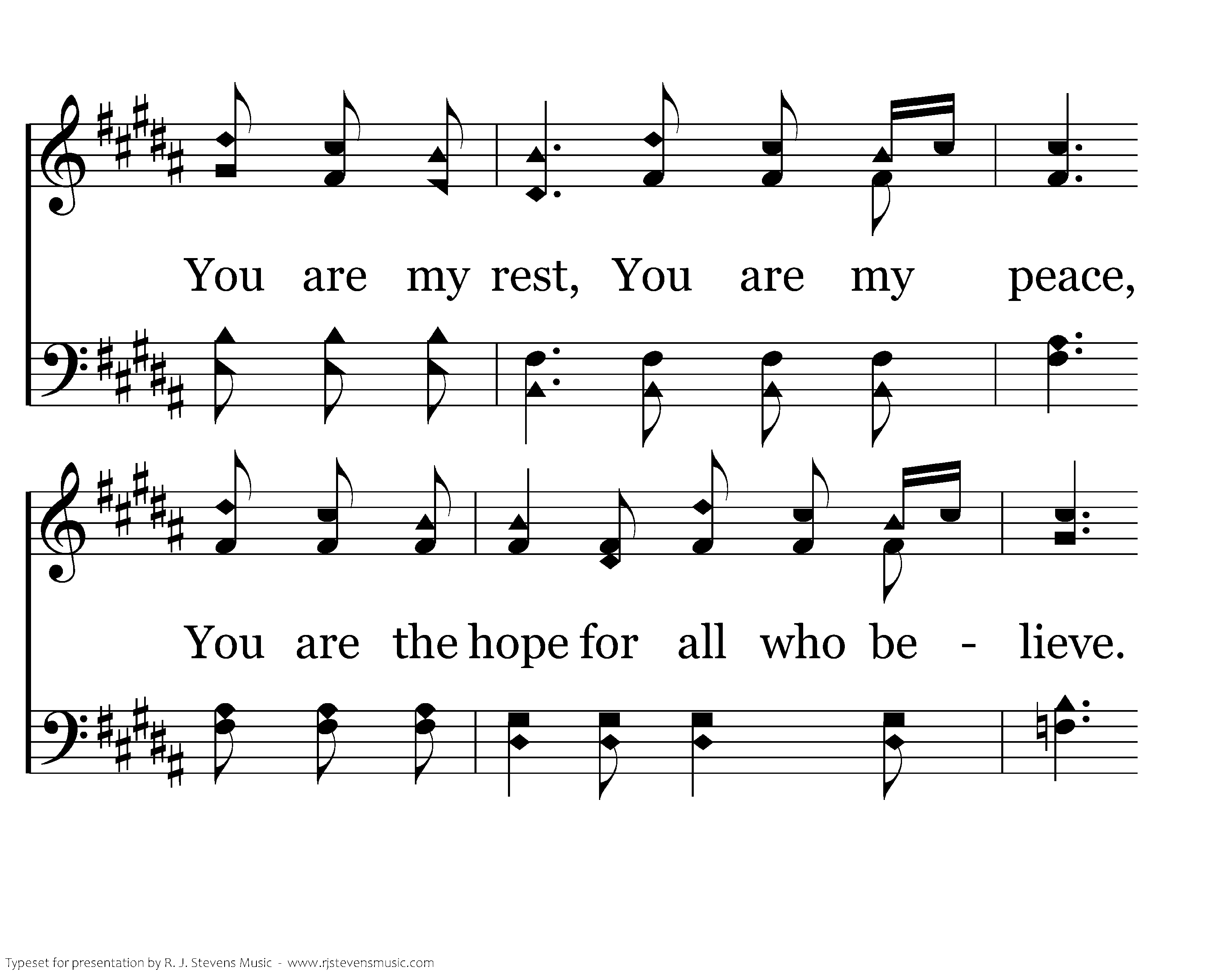 When I forget You are there, I hear Your voice in a quiet moment. You whisper peace to my soul Your promises fill up my days. You are my highest hope, Your glory I love to see; All who are thirsty come, the fountains flowing and free. You are my rest, You are my peace, You are the hope for all who believe. Faithful and true, King of all kings, You always will be my highest hope. Come to the table of blessing, enter His courts with praise; Goodness and mercy will surely follow me all of my days. You are my highest hope, Your glory I love to see; All who are thirsty come, the fountains flowing and free. You are my rest, You are my peace, You are the hope for all who believe. Faithful and true, King of all kings, You always will be my highest hope.