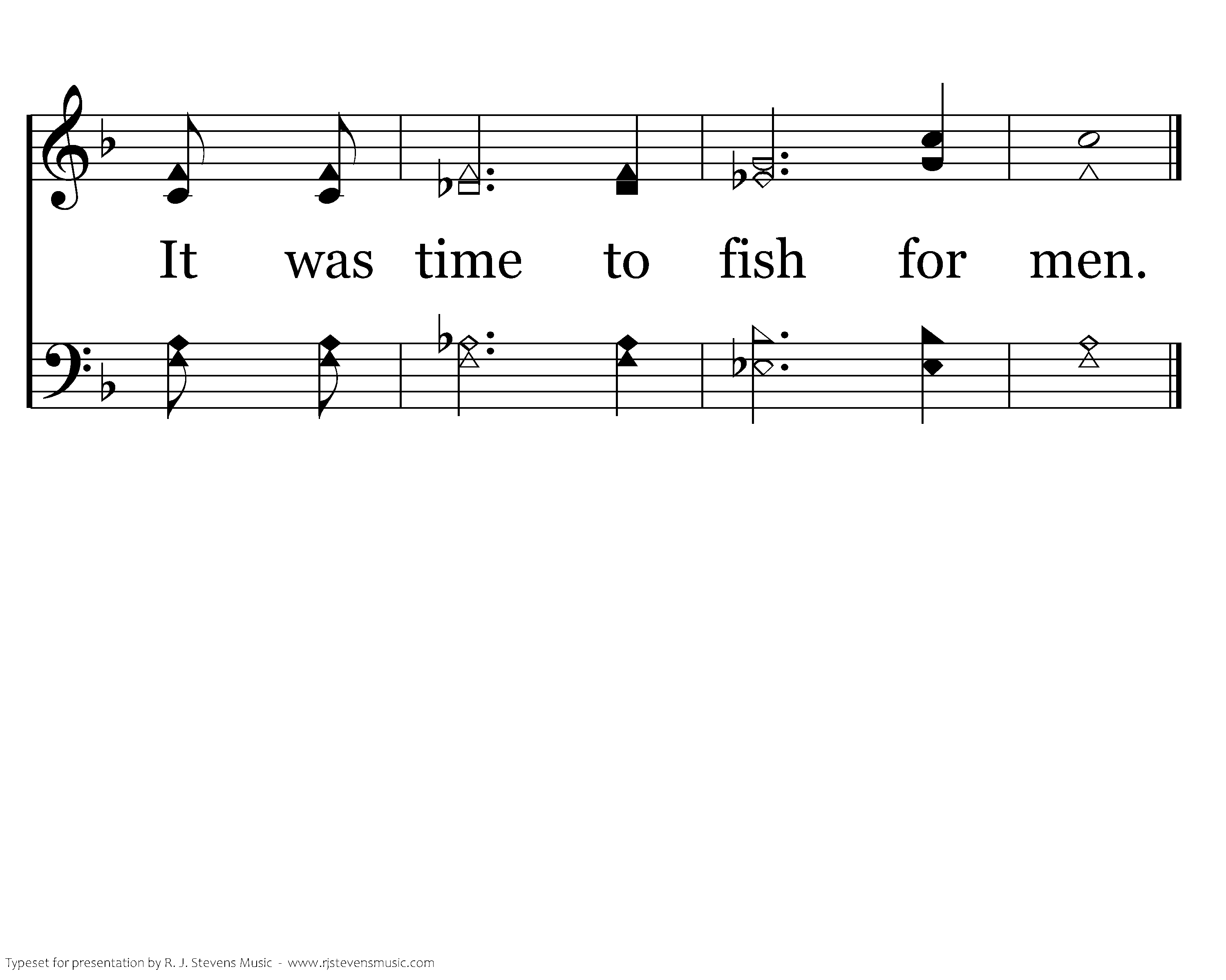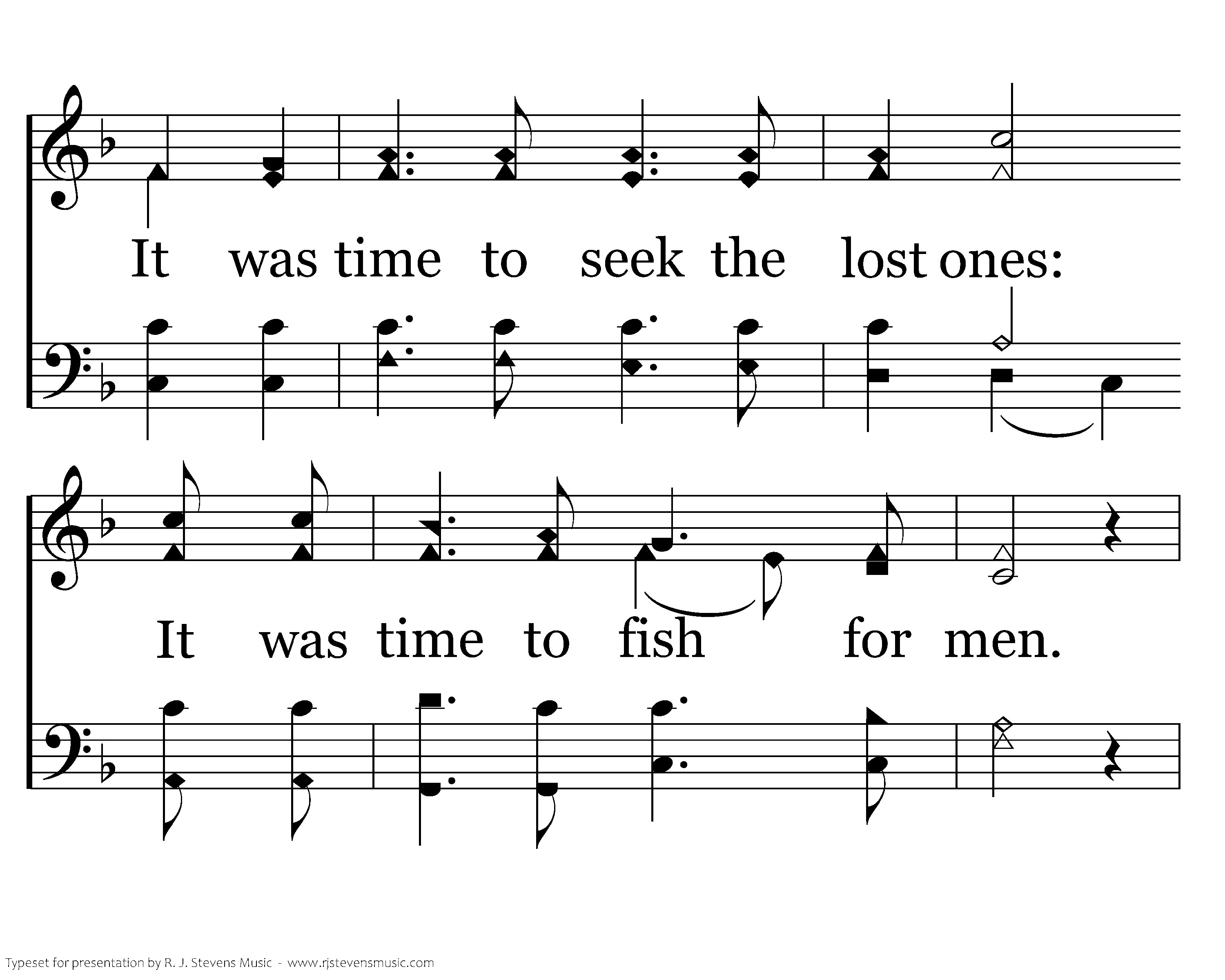 It was time to eat the supper. It was time to pay the price. It was time to stand in judgment. It was time to crucify. It was time to wait for three days. It was time to live again. It was time to seek the lost ones: It was time to fish for men. It was time to fish for men.