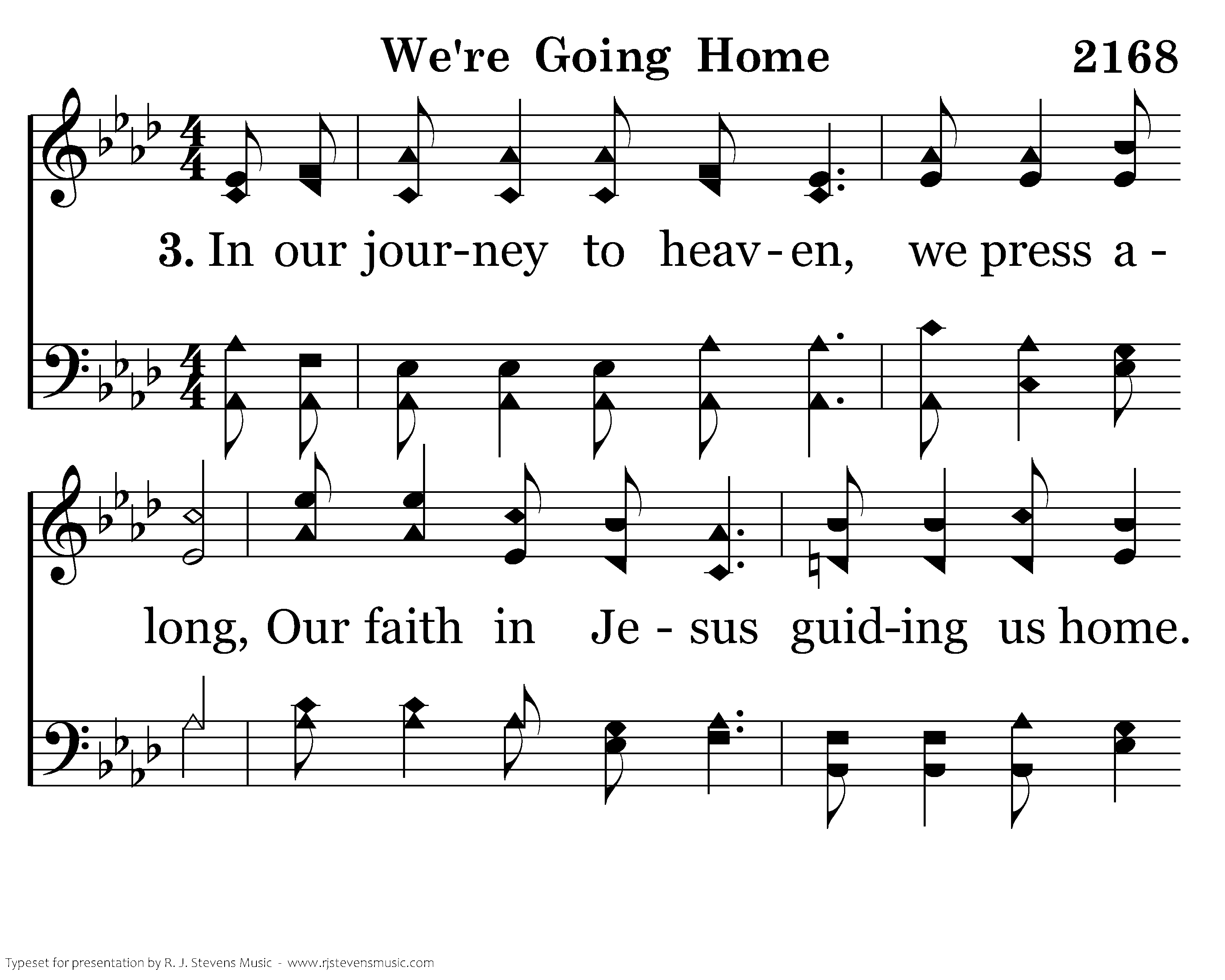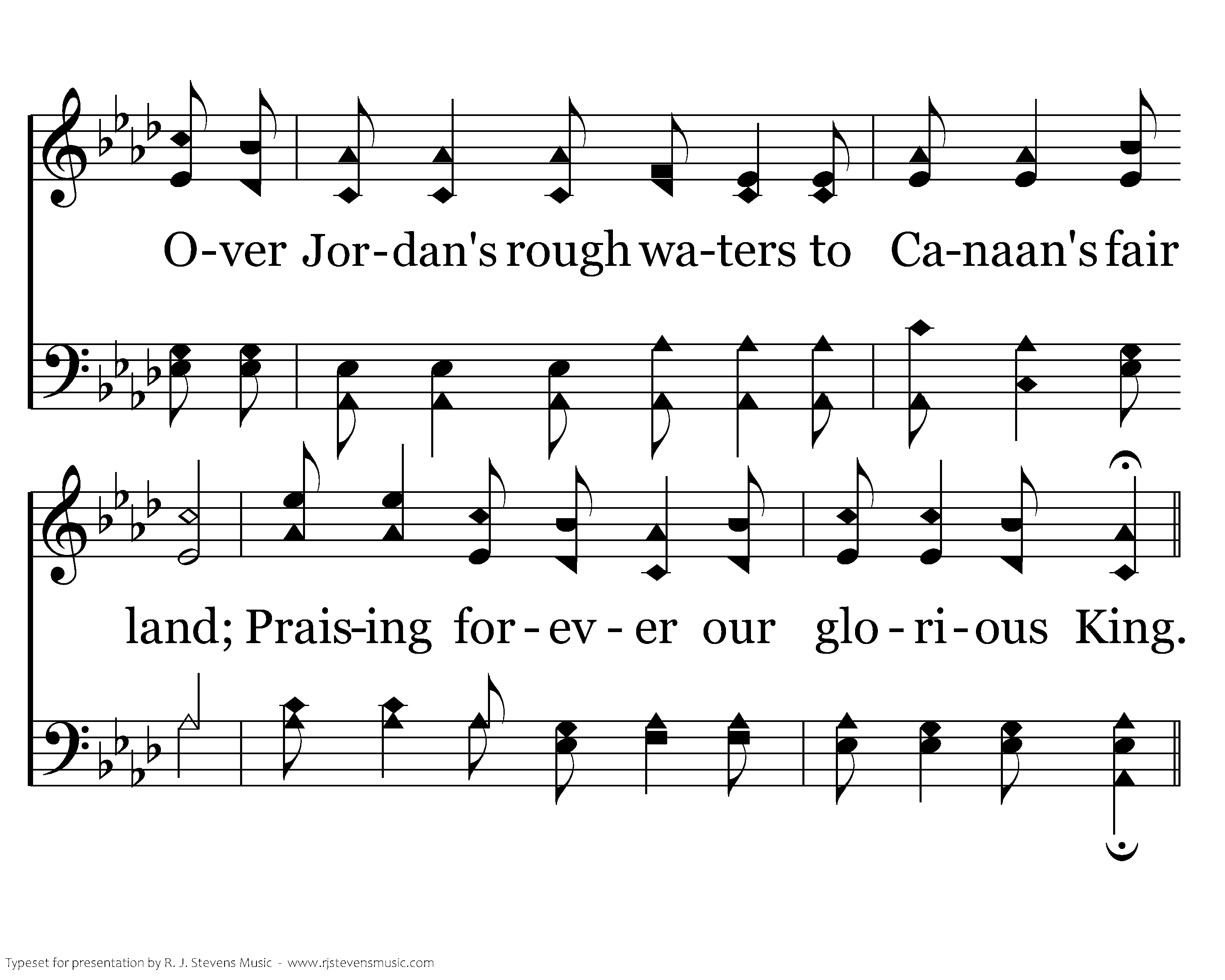 In our journey to heaven, we press along, Our faith in Jesus guiding us home. Over Jordan's rough waters to Canaan's fair land; Praising forever our glorious King.