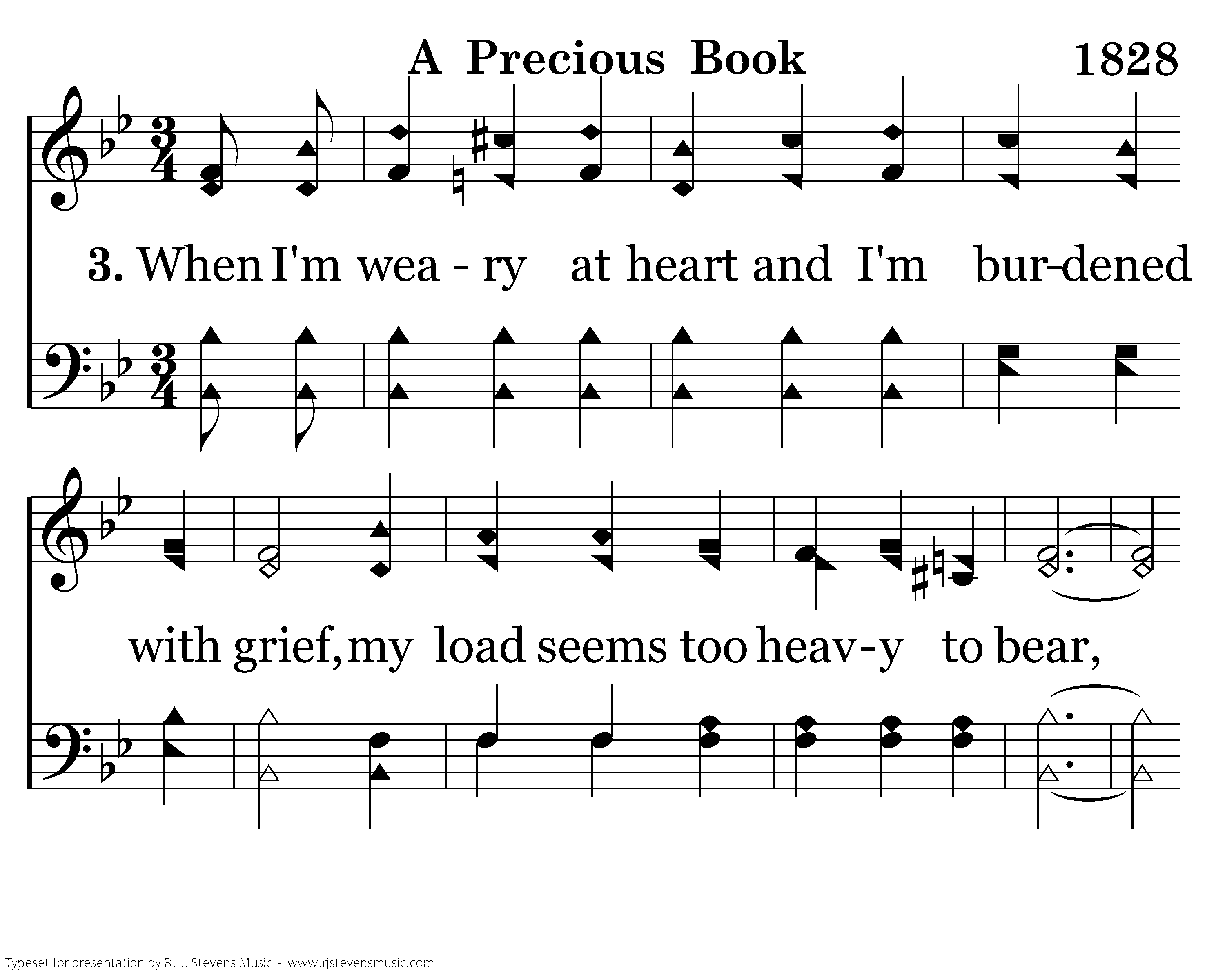 When I'm weary at heart and I'm burdened with grief, my load seems too heavy to bear, I turn to the Book where I find sweet relief for Jesus awaits for me there; When life here has ended and death draweth near and I am in need of a friend, I'll cling to the Book that has always been dear as Jesus takes hold of my hand.
