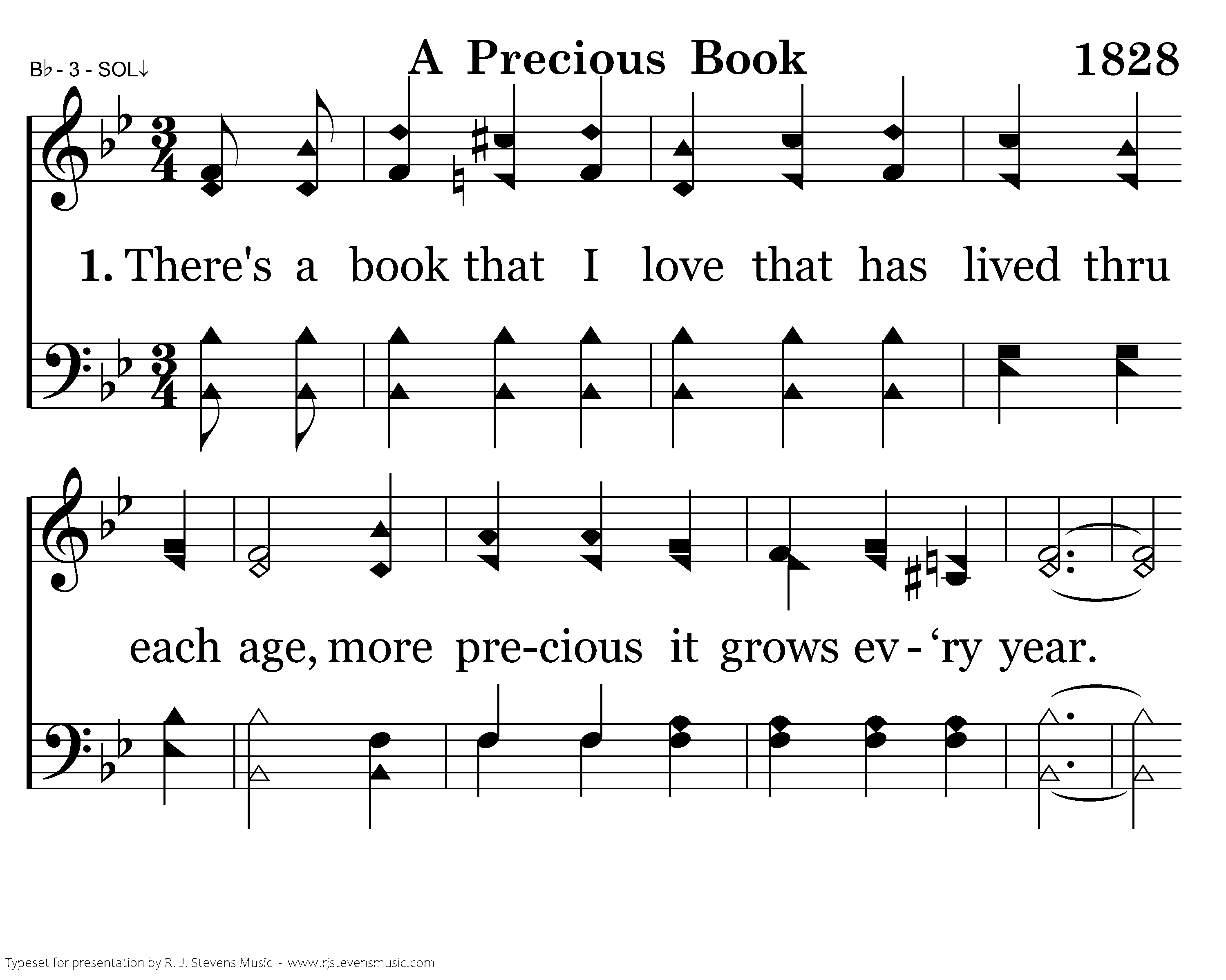 There's a book that I love that has lived thru each age, more precious it grows ev‘ry year. The message recorded on page after page brings comfort and vanishes fear; It tells how the Savior, in Gethsemane, had sweat there in grief and with dread, And how He had suffered on dark Calvary for sinners His blood He had shed.