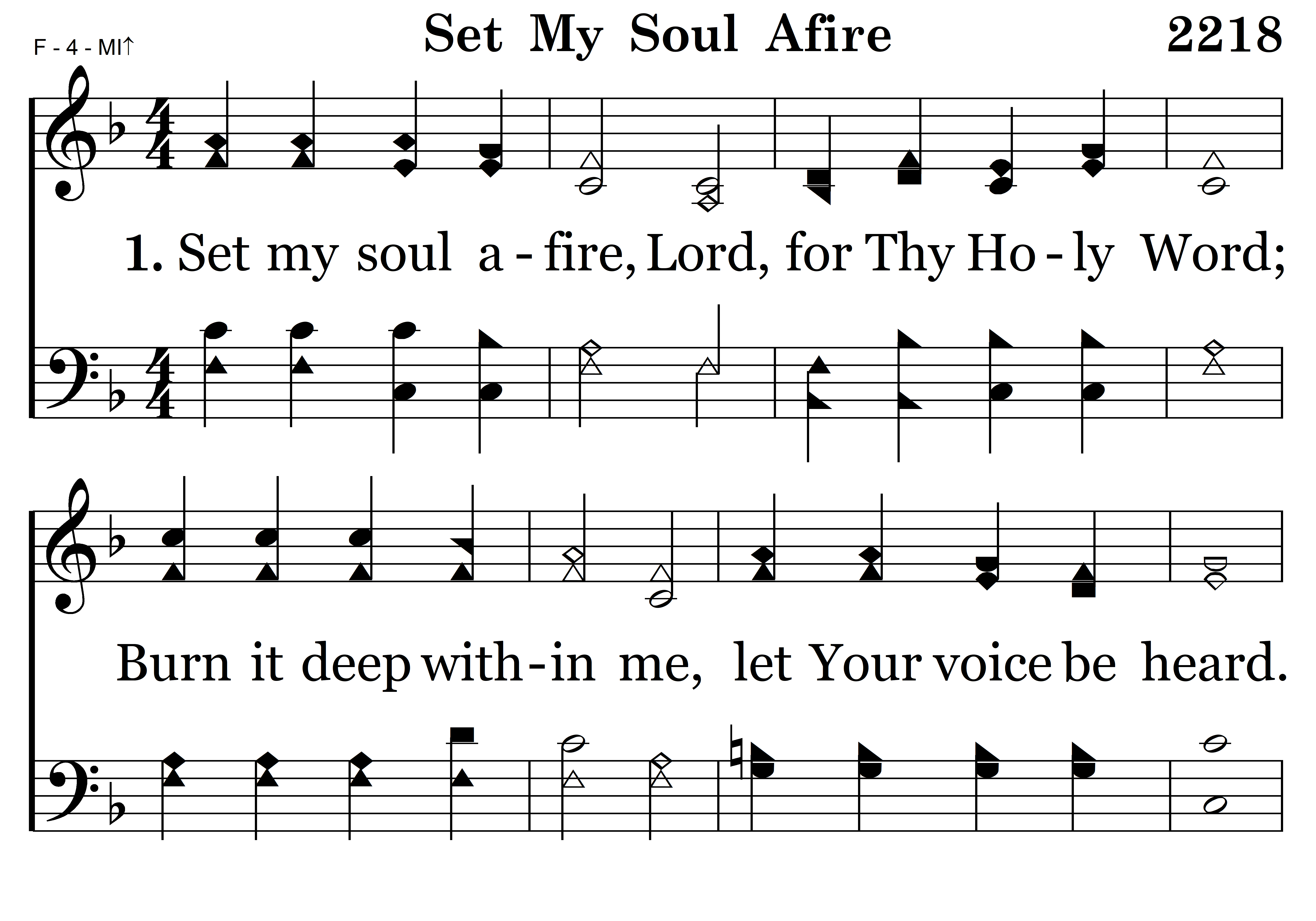Set my soul afire, Lord, for Thy Holy Word; Burn it deep within me, let Your voice be heard. Millions grope in darkness in this day and hour; I will be Your witness, fill me with Thy pow’r.