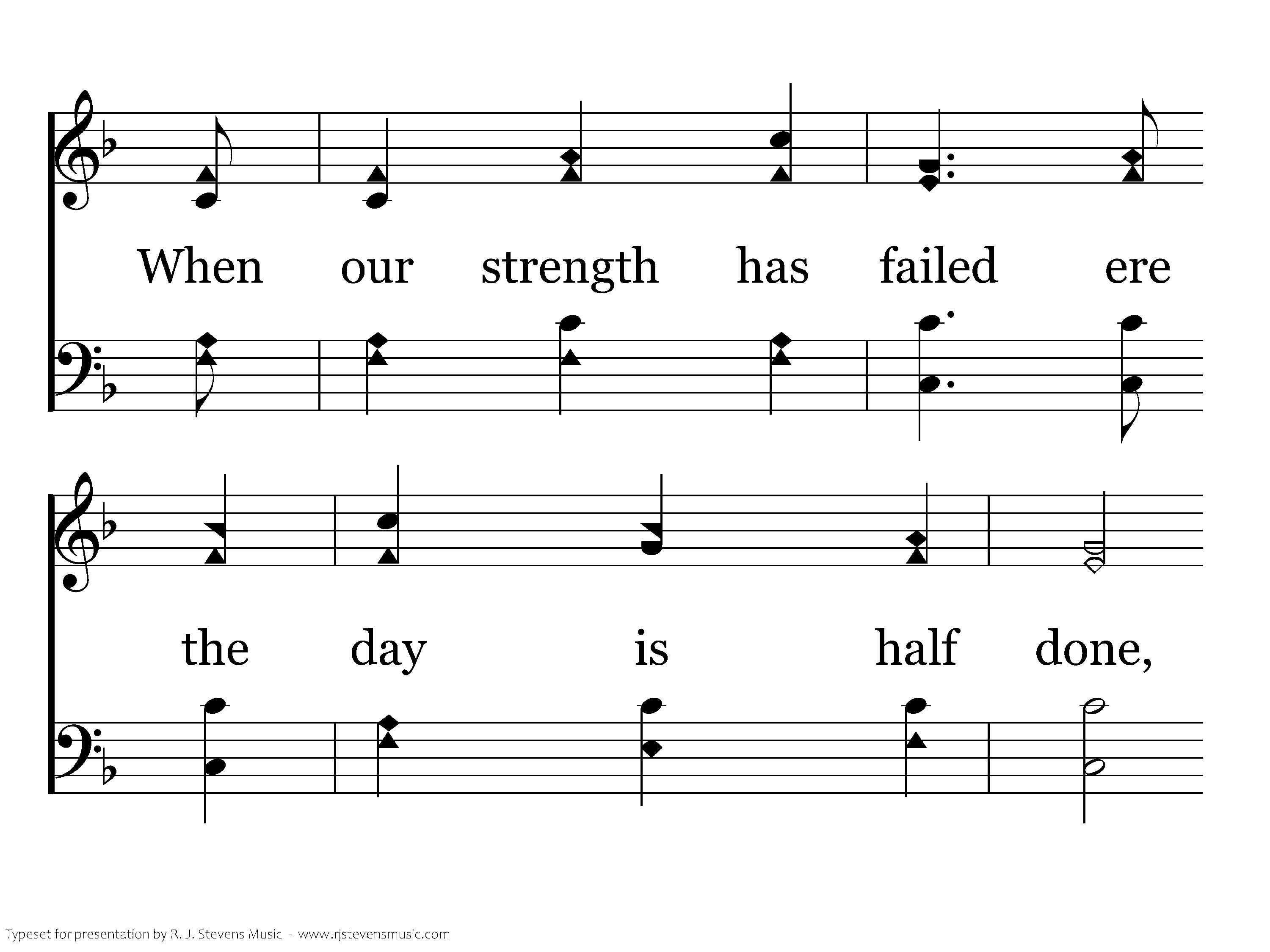 When we have exhausted our store of endurance, When our strength has failed ere the day is half done, When we reach the end of our hoarded resources Our Father’s full giving has only begun.