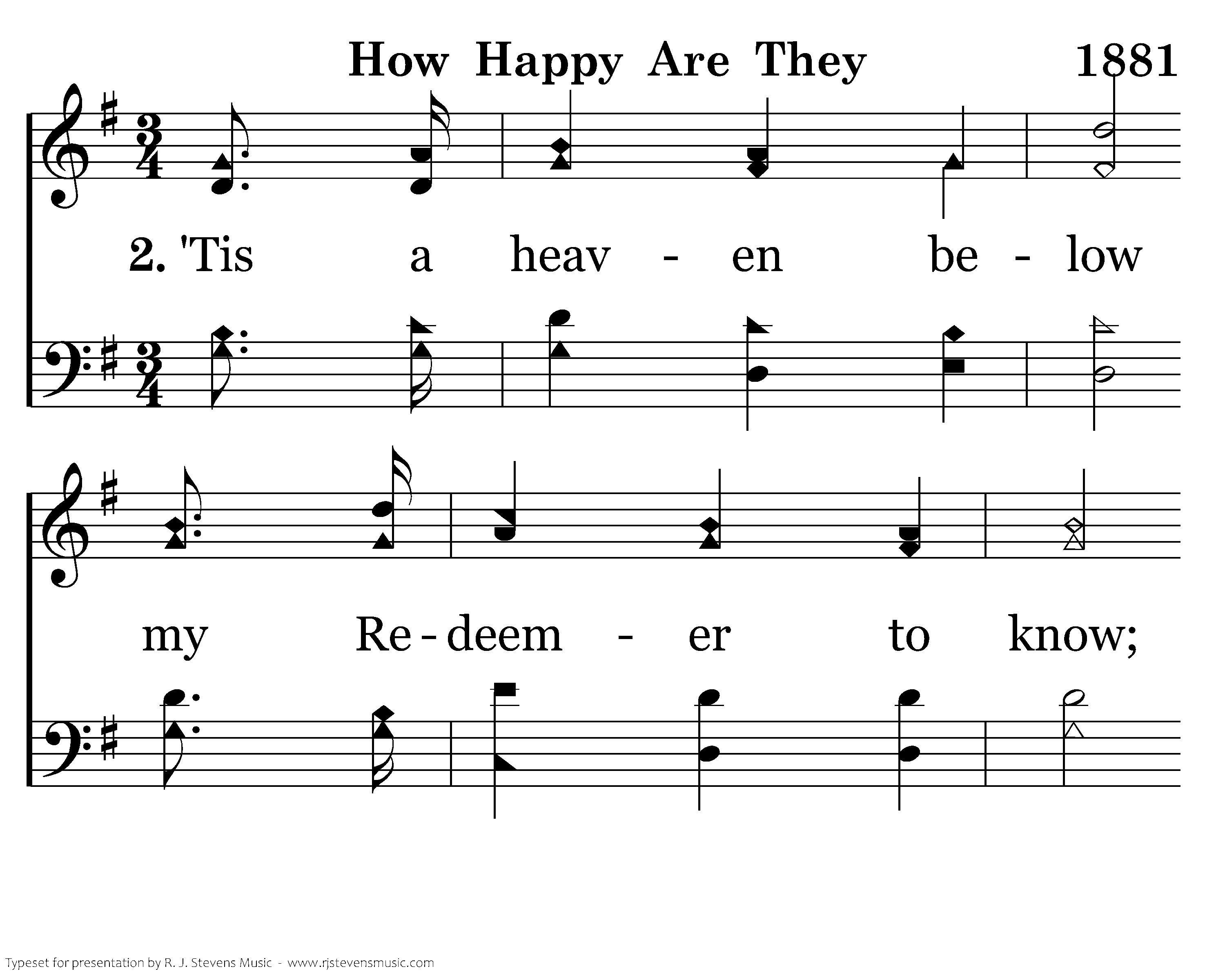 How happy are they who their Savior obey, And have laid up their treasures above! Tongue cannot express the sweet comfort and peace Of a soul in its earliest love, Of a soul in its earliest love.