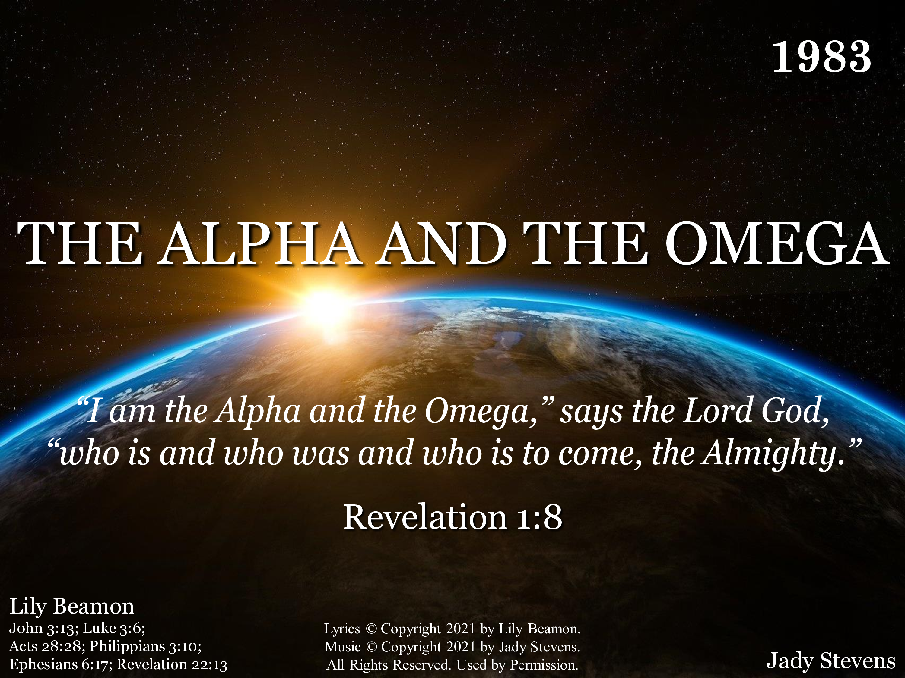 - Lyrics © Copyright 2021 by Lily Beamon. Music © Copyright 2021 by Jady Stevens. All Rights Reserved. Used by Permission.
