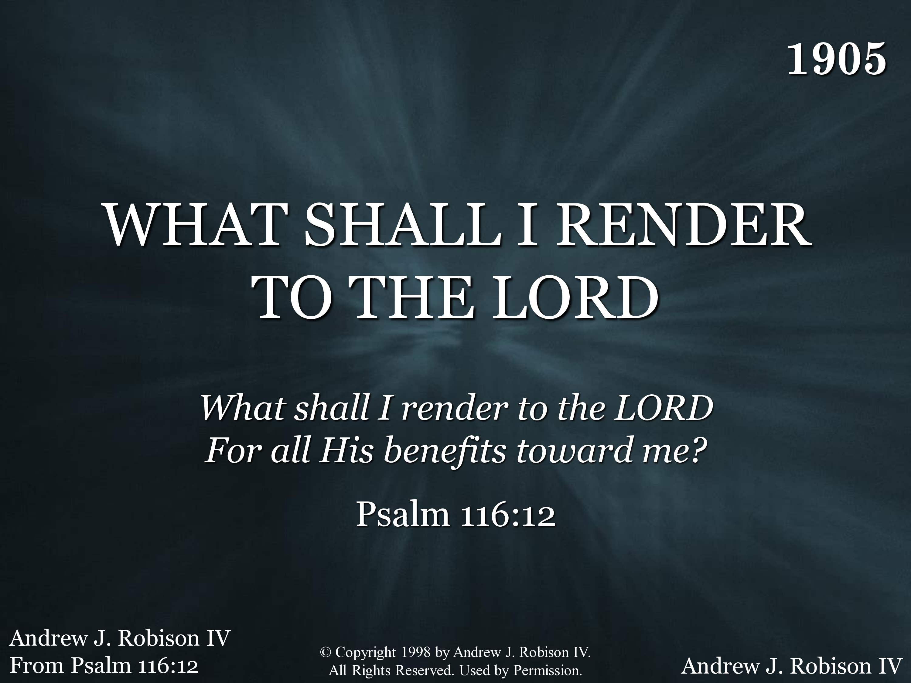 | Title | WHAT SHALL I RENDER TO THE LORD |