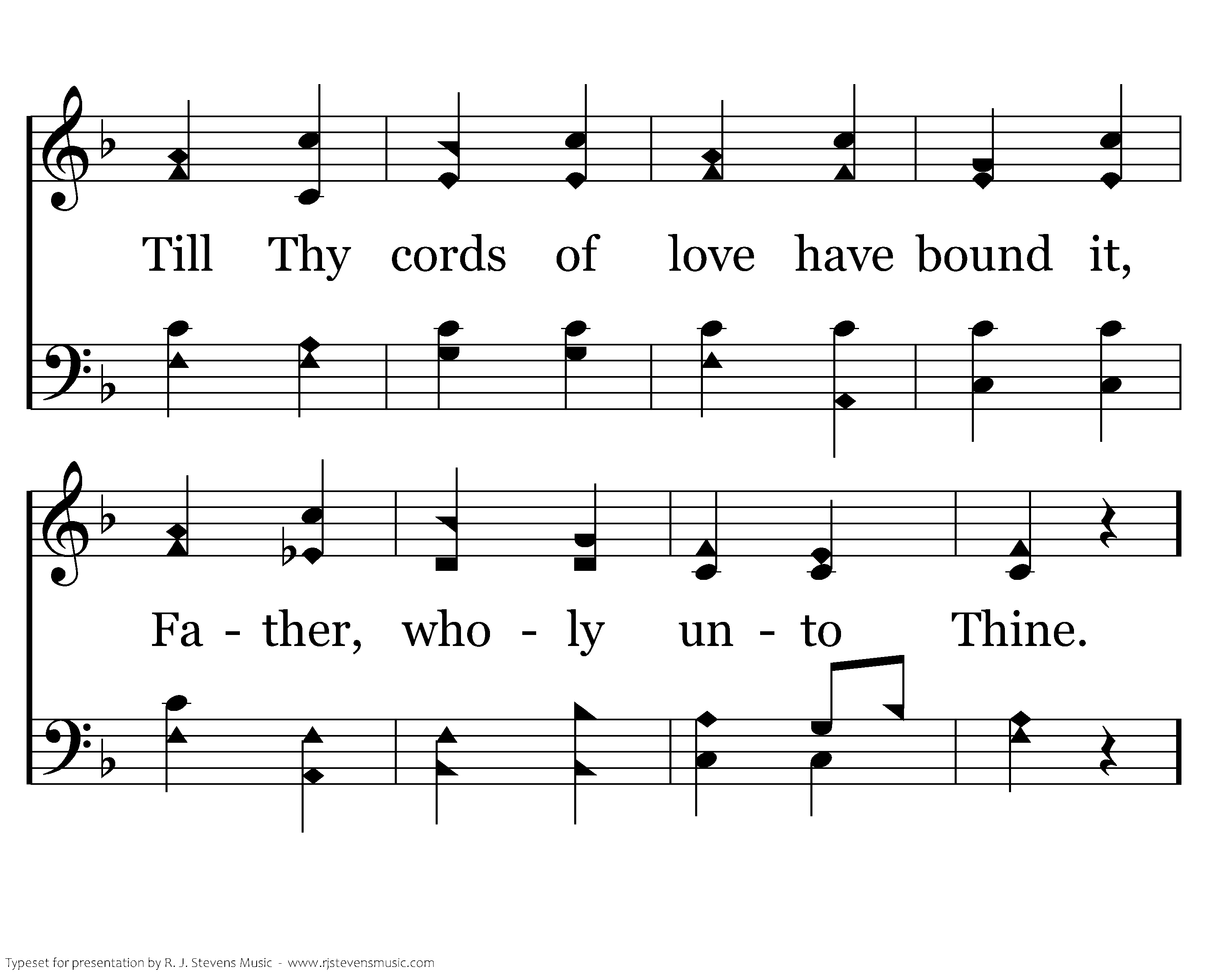 Ever let Thy might surround it; Strengthen it with po’r divine Till Thy cords of love have bound it, Father, wholy unto Thine.