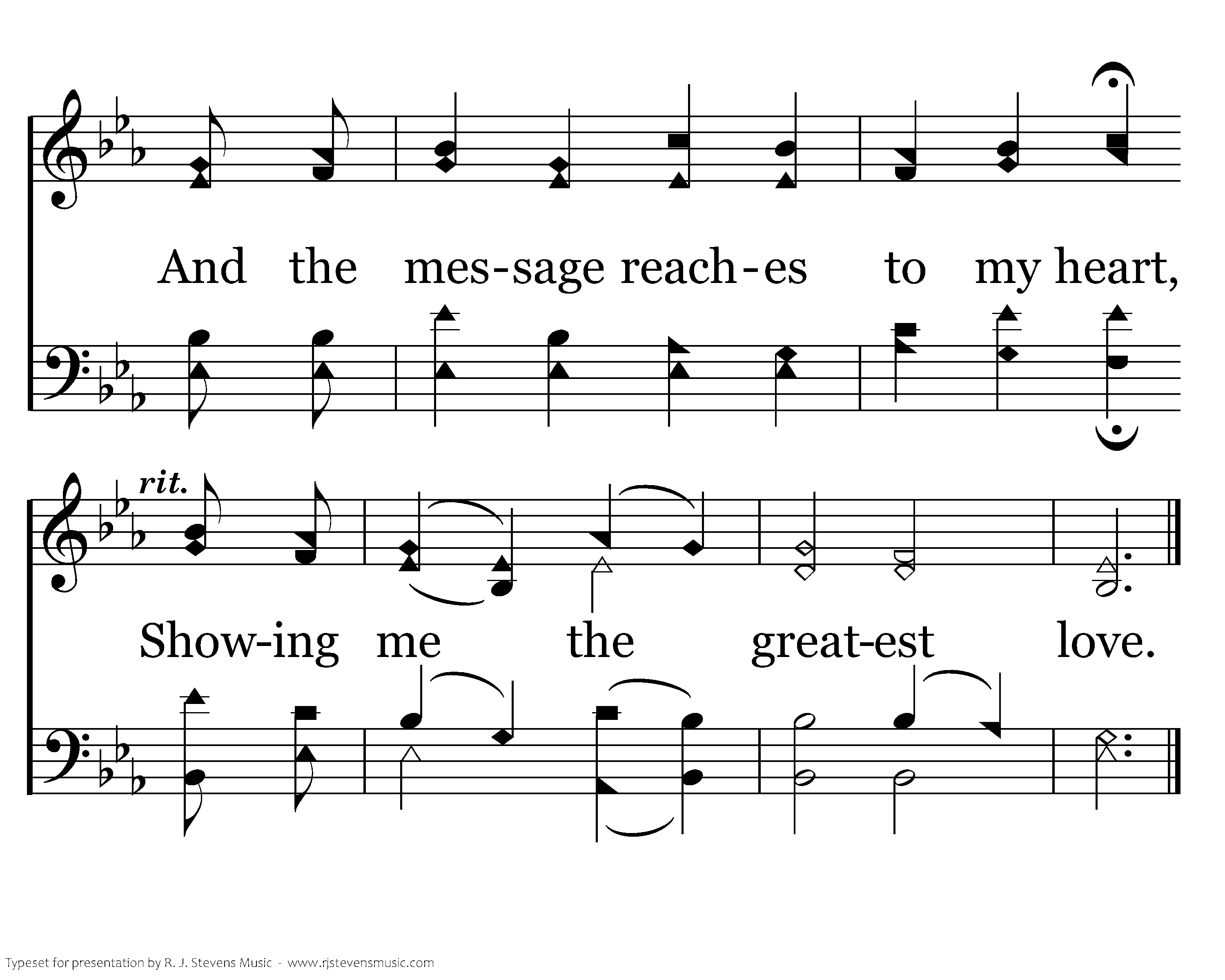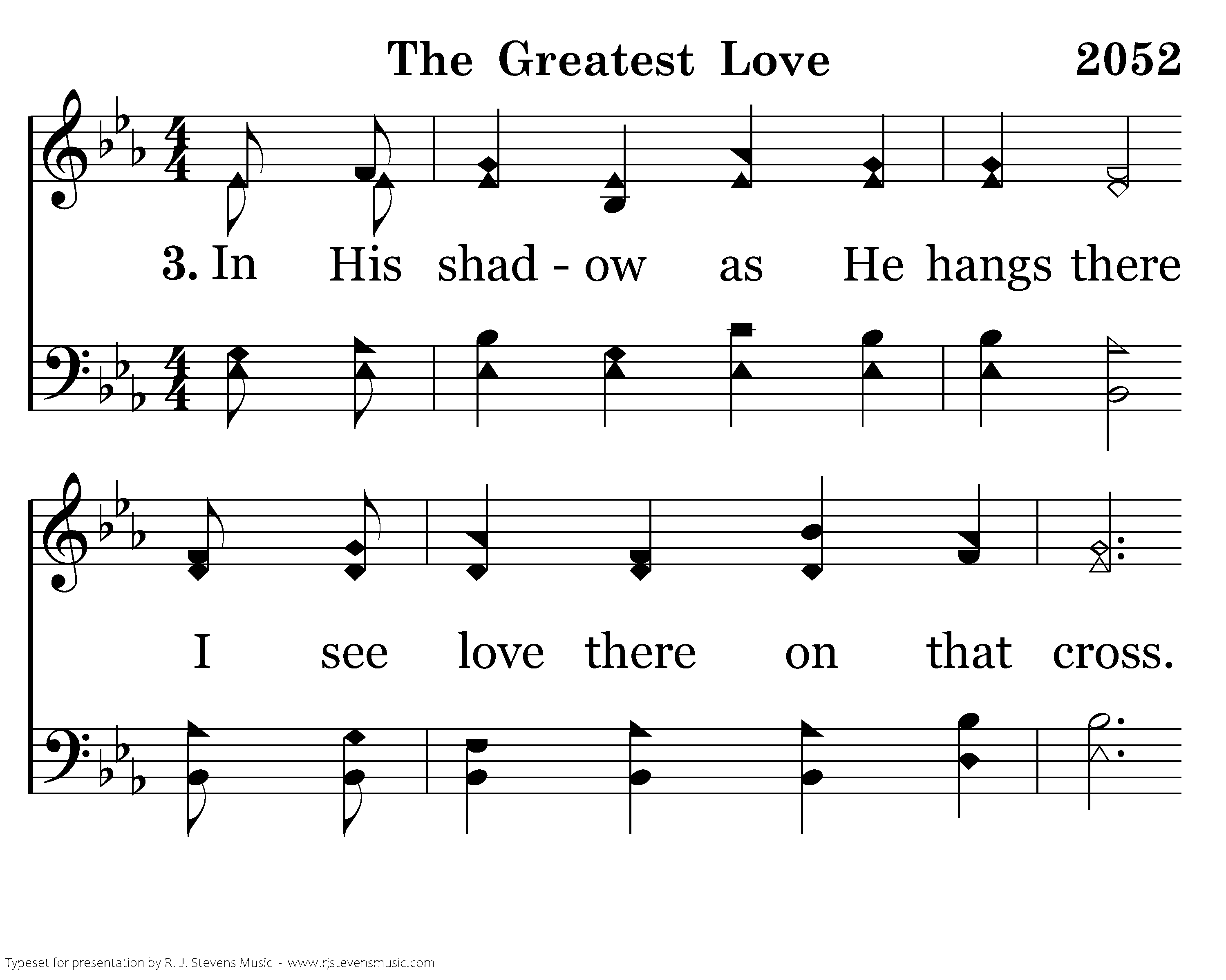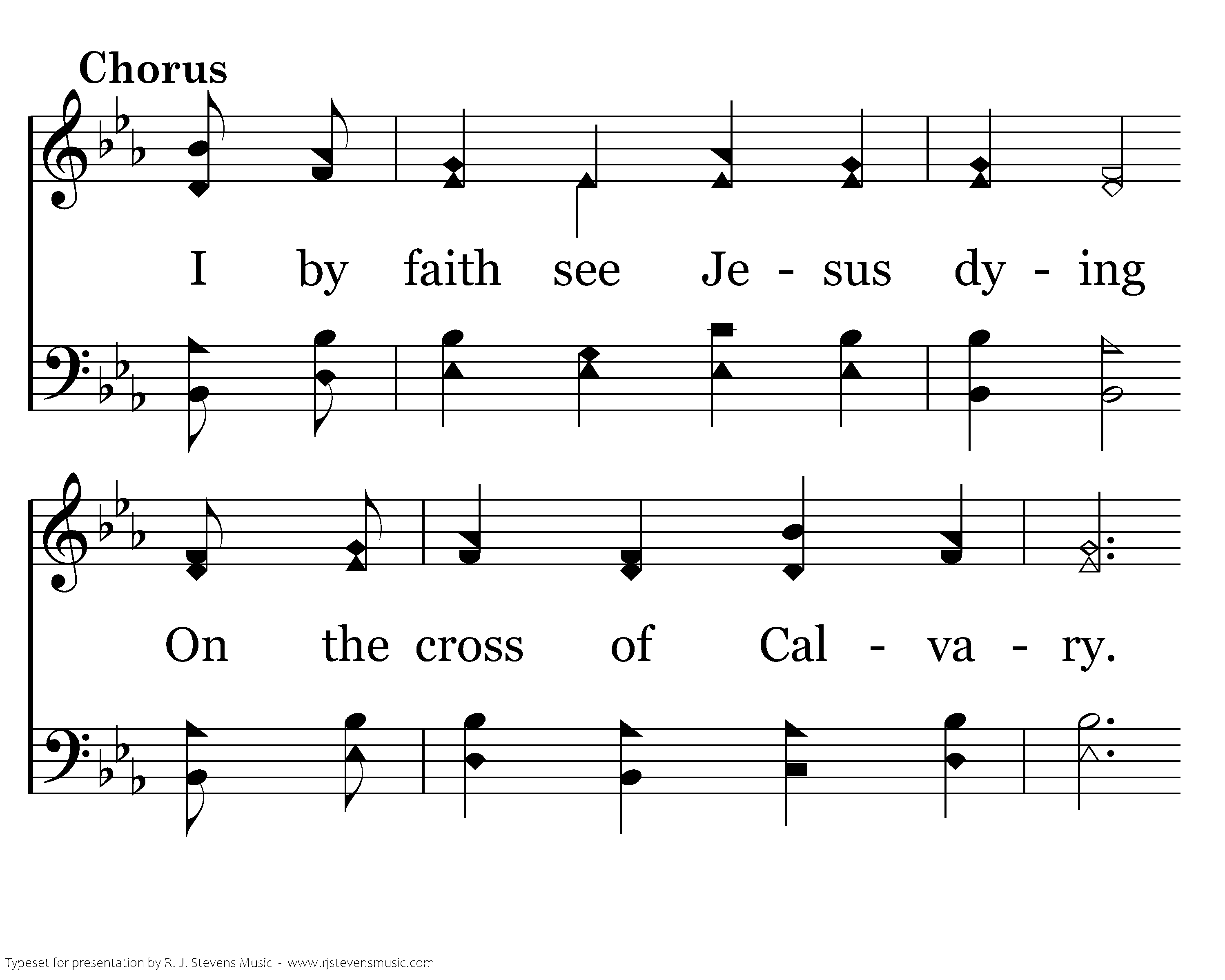I by faith see Jesus dying On the cross of Calvary. And the message reaches to my heart, Showing me the greatest greatest love.