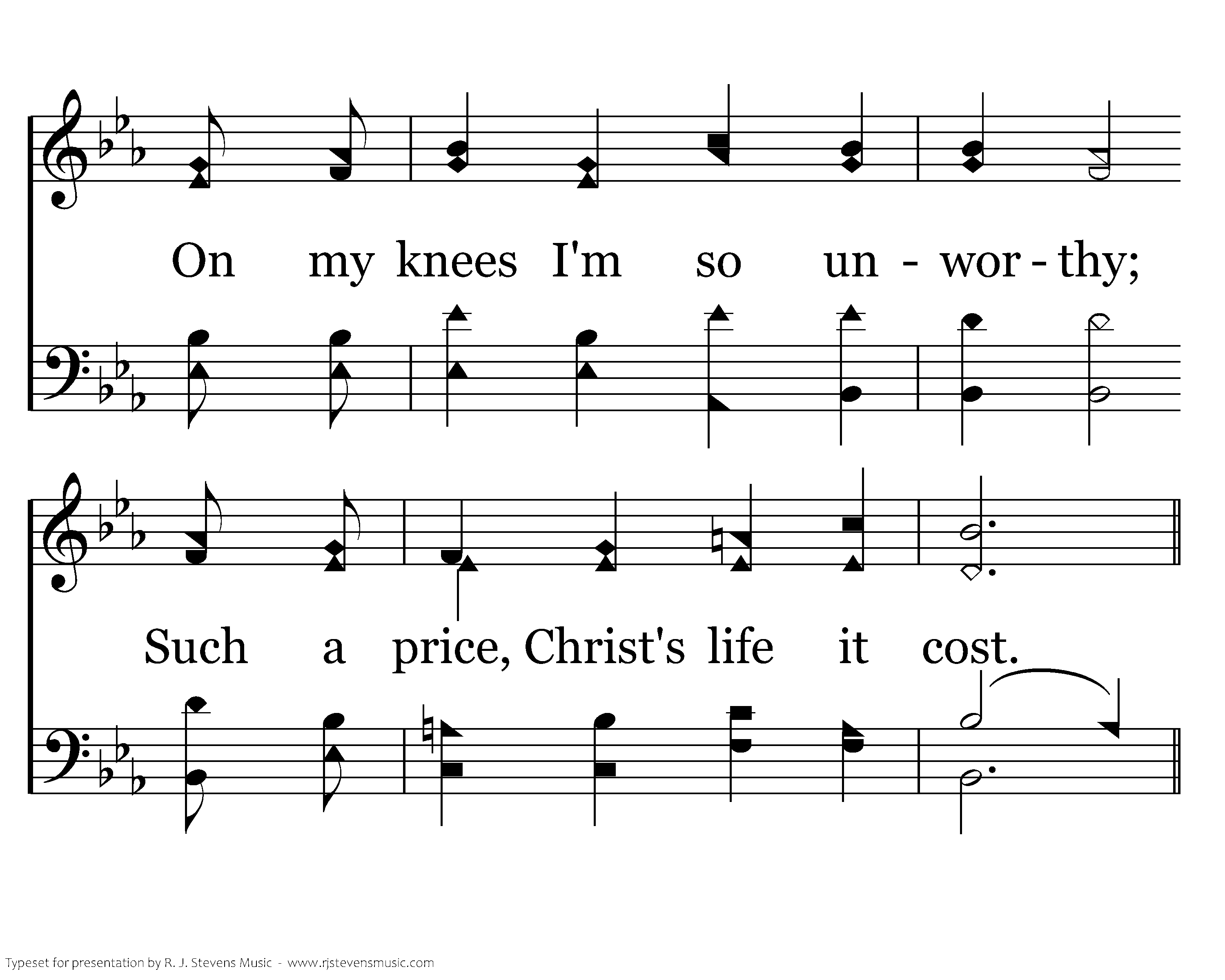 In His shadow as He hangs there I see love there on that cross. On my knees I'm so unworthy; Such a price, Christ's life it cost.