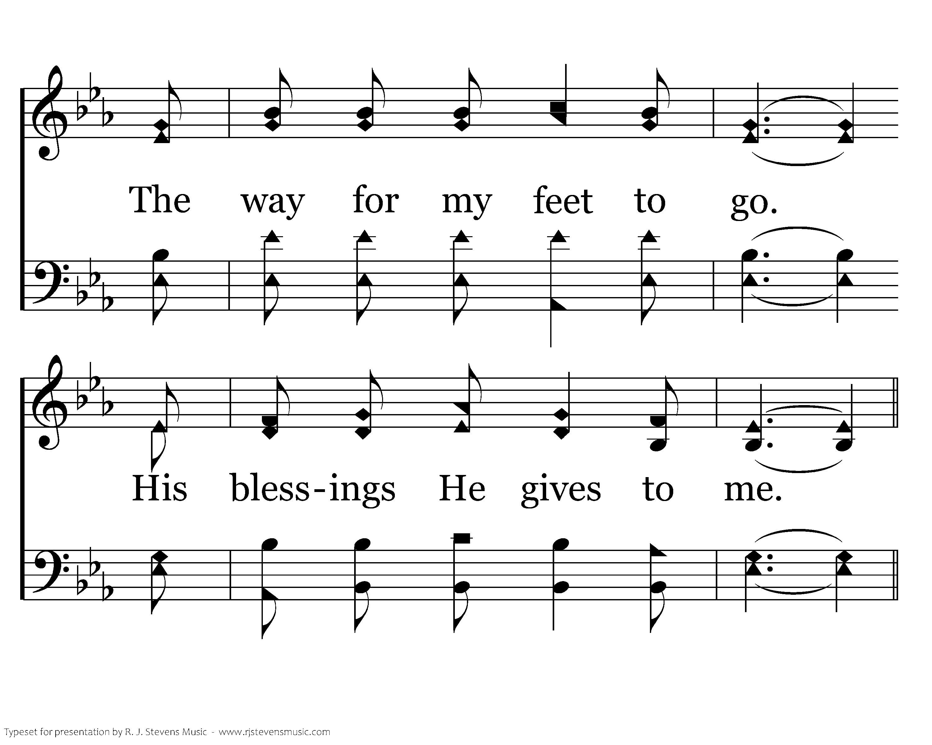 The Lord is my guide each day, To lead me lest I should stray. The way for my feet to go. His blessings He gives to me.