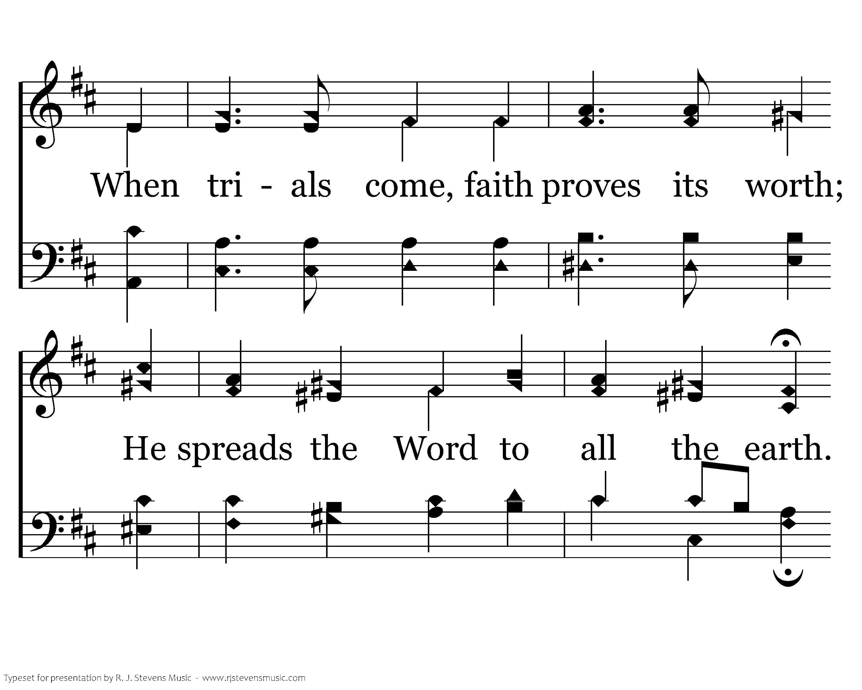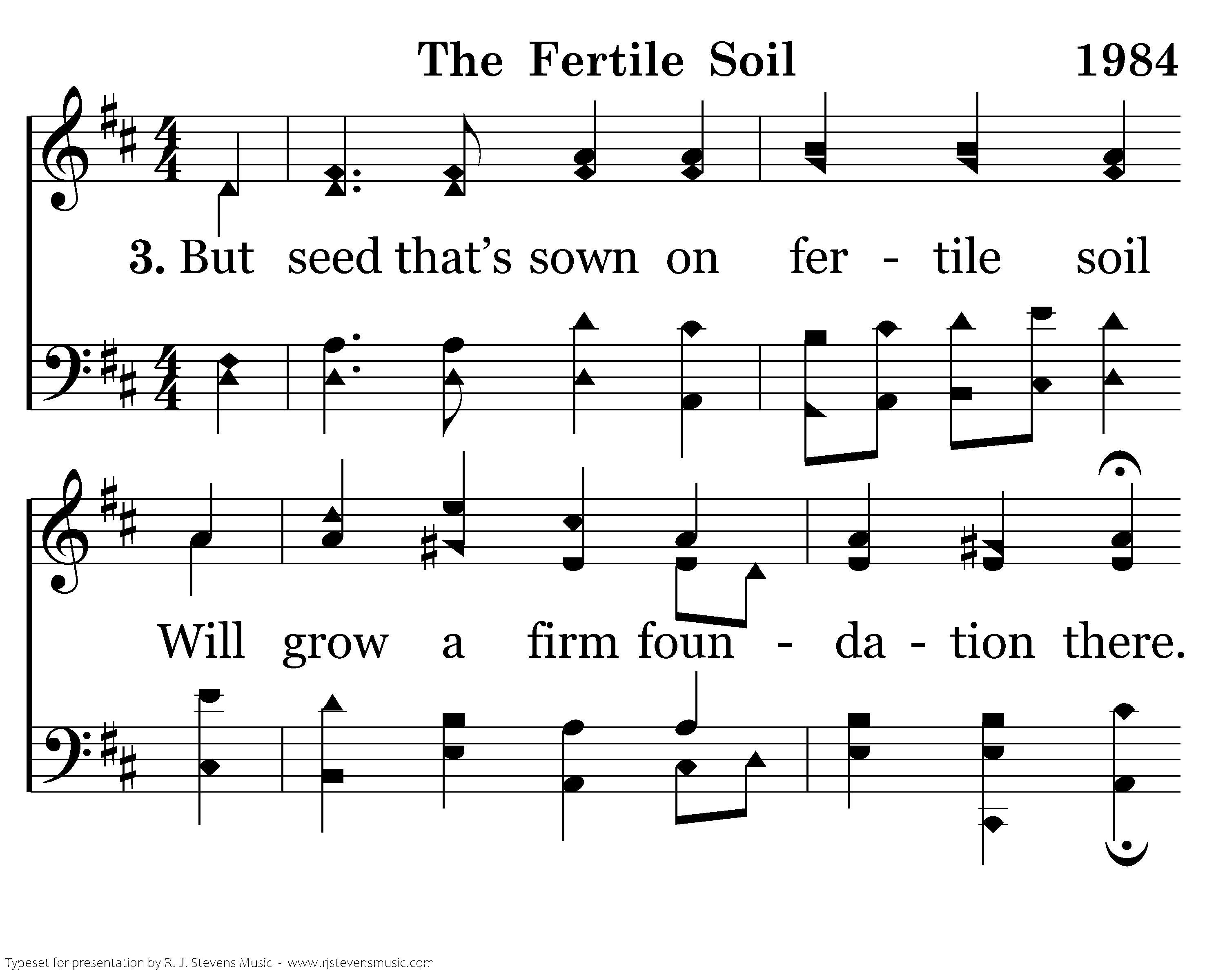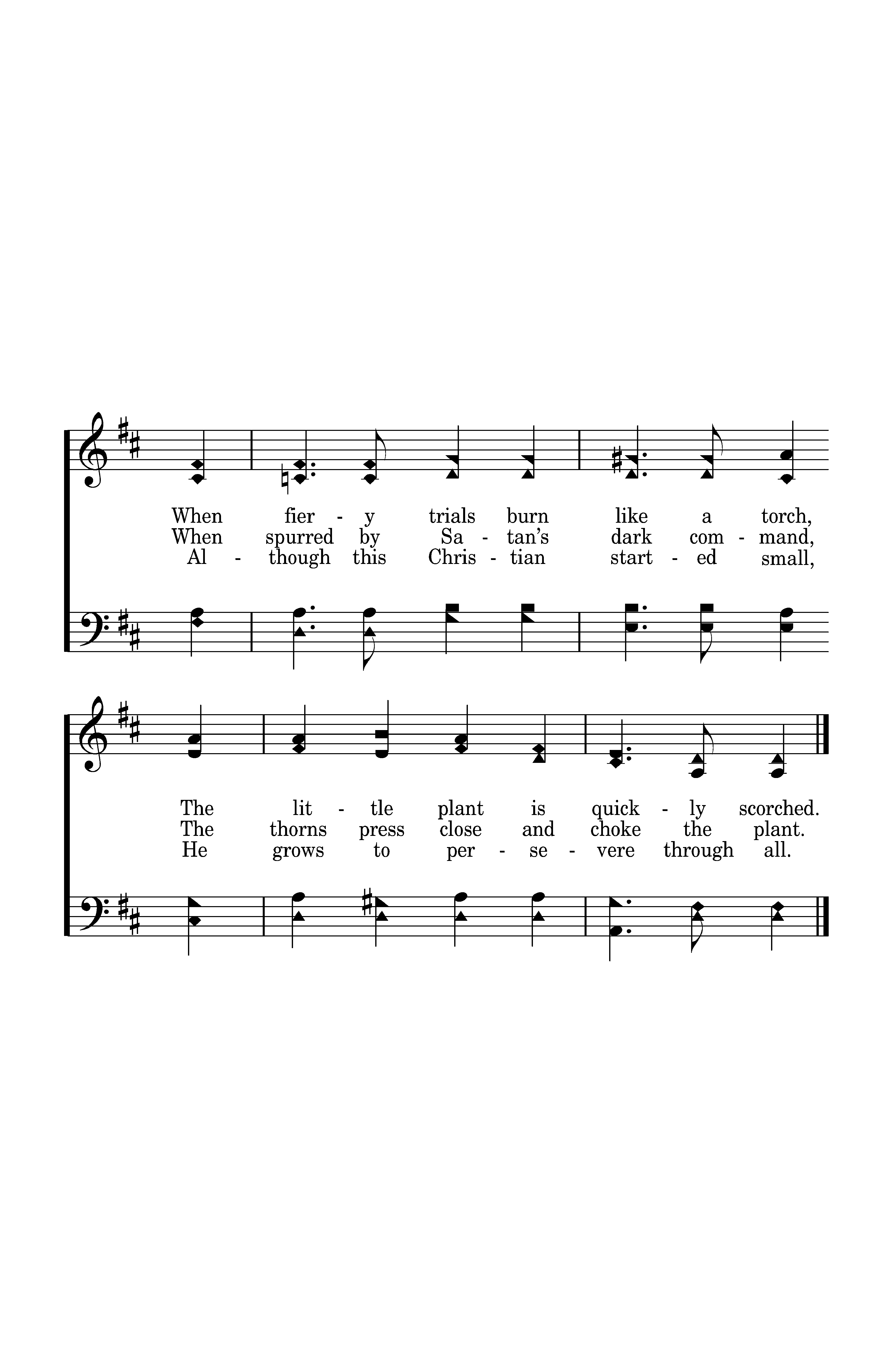 But seed that’s sown on fertile soil Will grow a firm foundation there. When trials come, faith proves its worth; He spreads the Word to all the earth. Although this Christian started small, He grows to persevere through all.