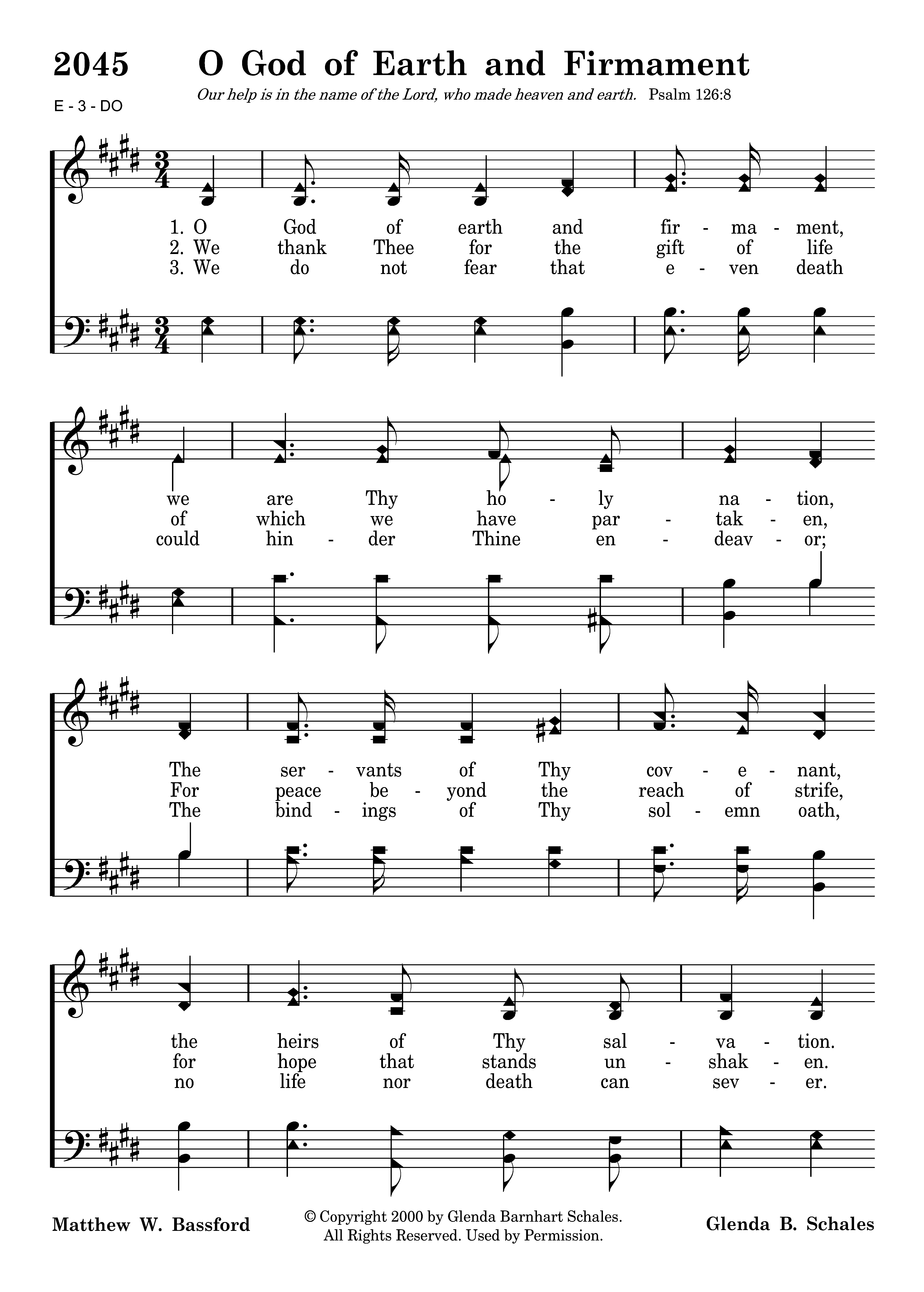 O God of earth and firmament, we are Thy holy nation, The servants of Thy covenant, the heirs of Thy salvation. Released from bonds of sin, and free, Reborn and dead to enmity, A sacrifice we bring to Thee: This hymn of exultation.