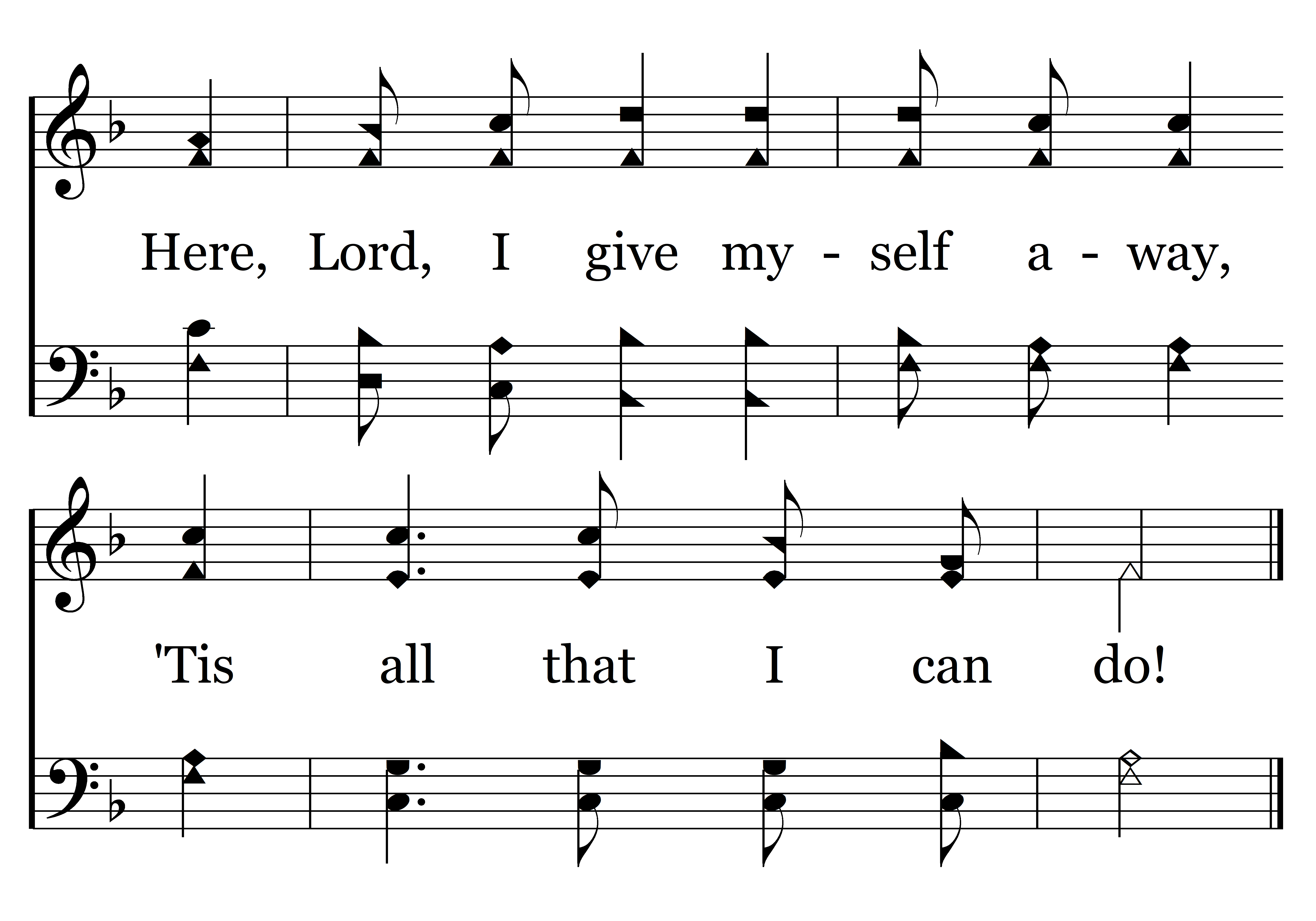 But drops of grief can ne'er re-pay The debt of love I owe; Here, Lord, I give myself away, 'Tis all that I can do!
