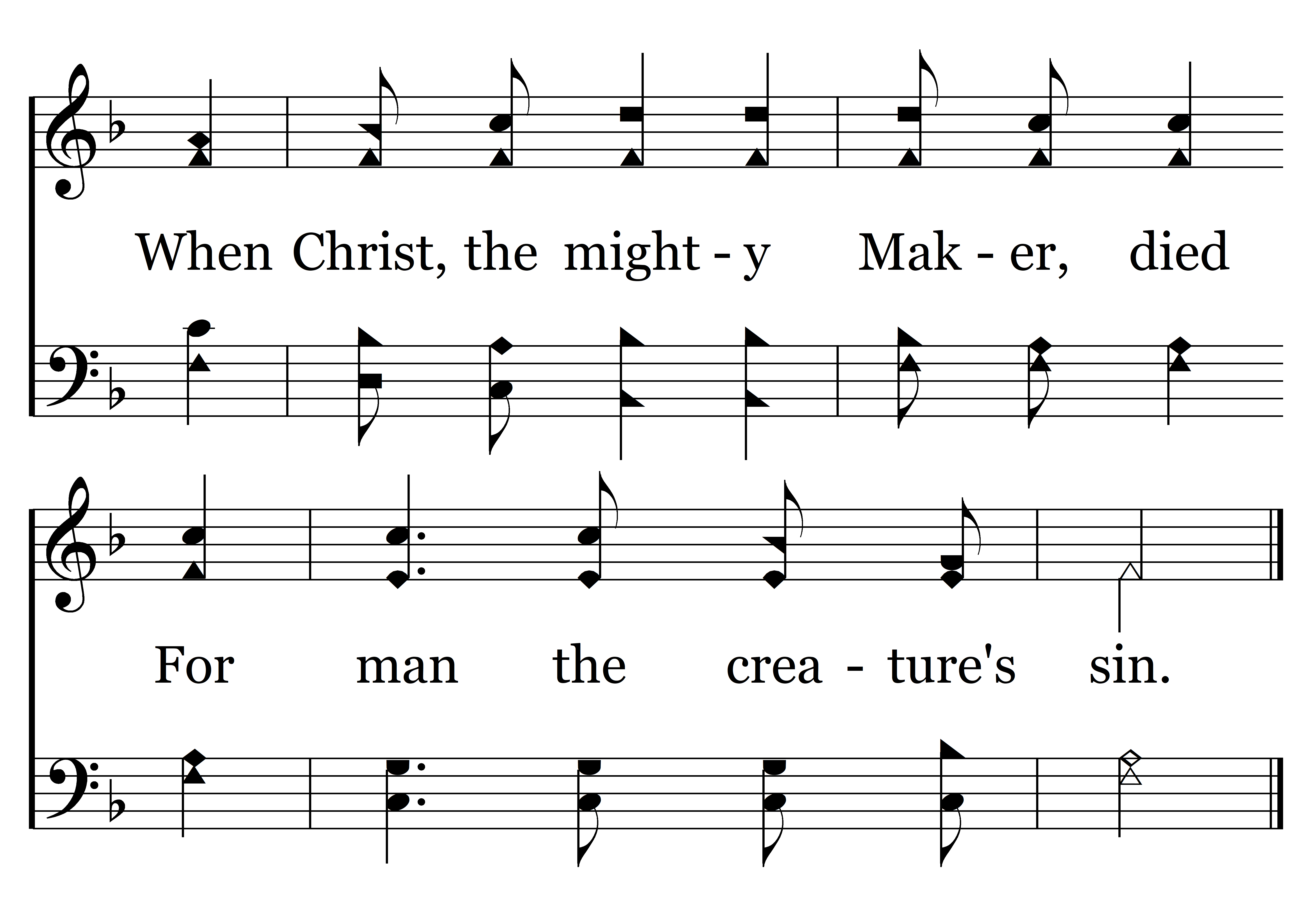 Well might the sun in darkness hide, And shut His glories in, When Christ, the mighty Maker, died For man the creature's sin.