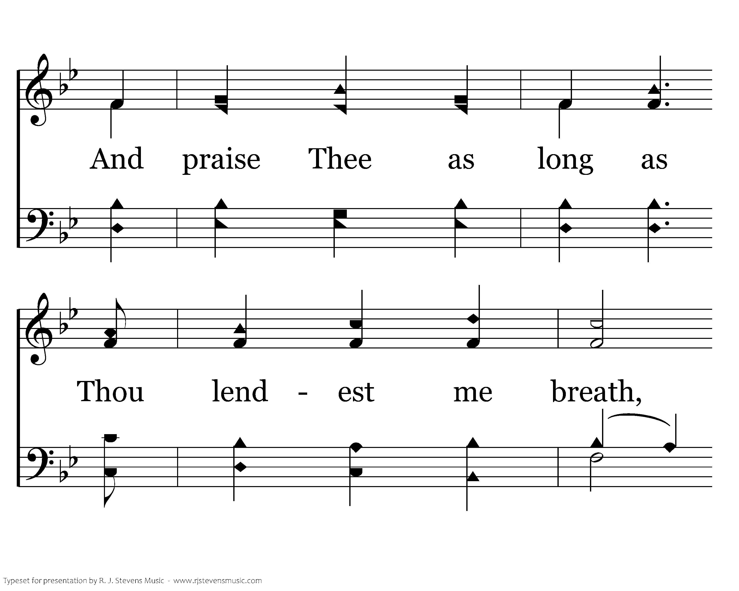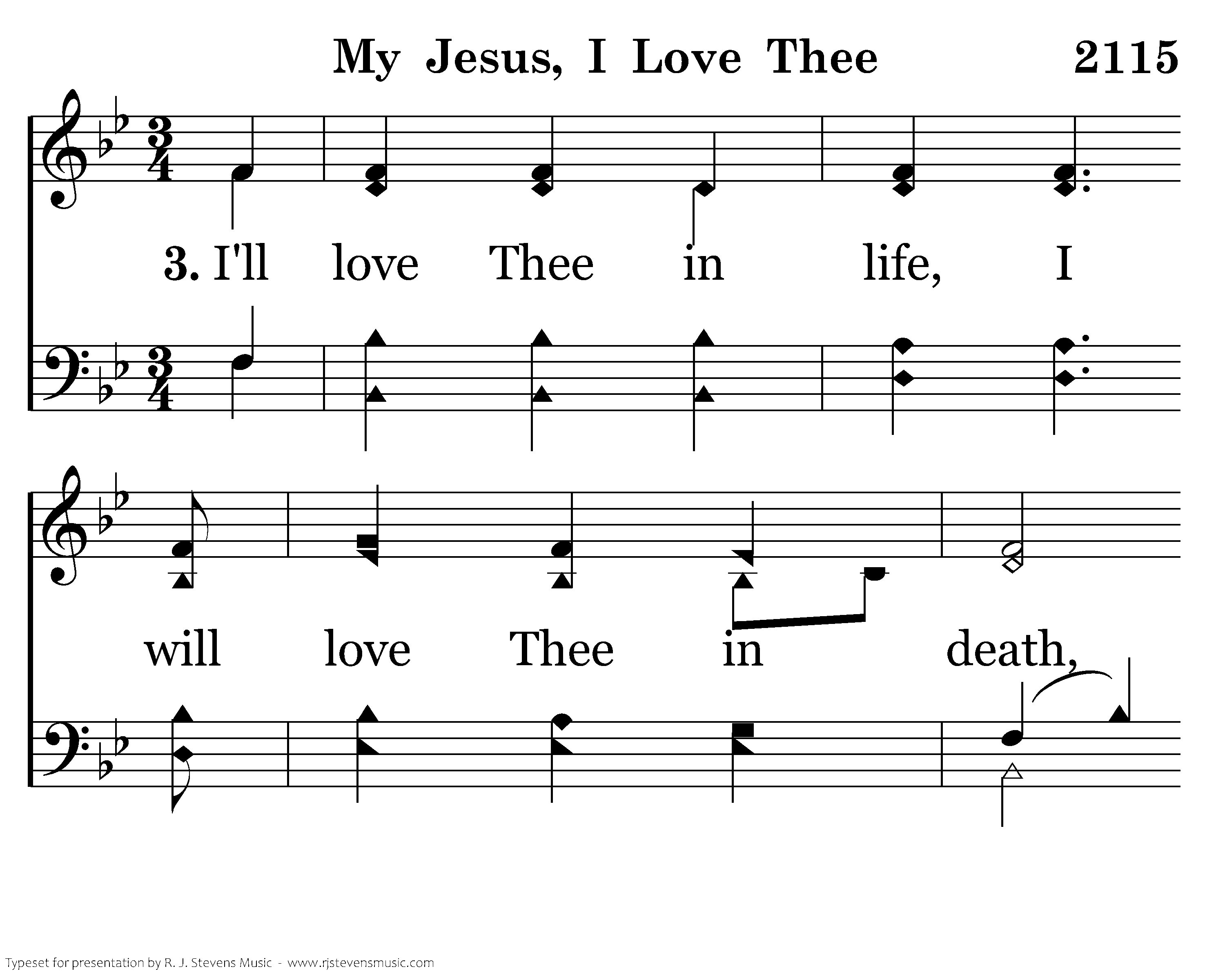 I'll love Thee in life, I will love Thee in death, And praise Thee as long as Thou lendest me breath, And say when the death-dew lies cold on my brow: If ever I loved Thee, my Jesus, 'tis now.