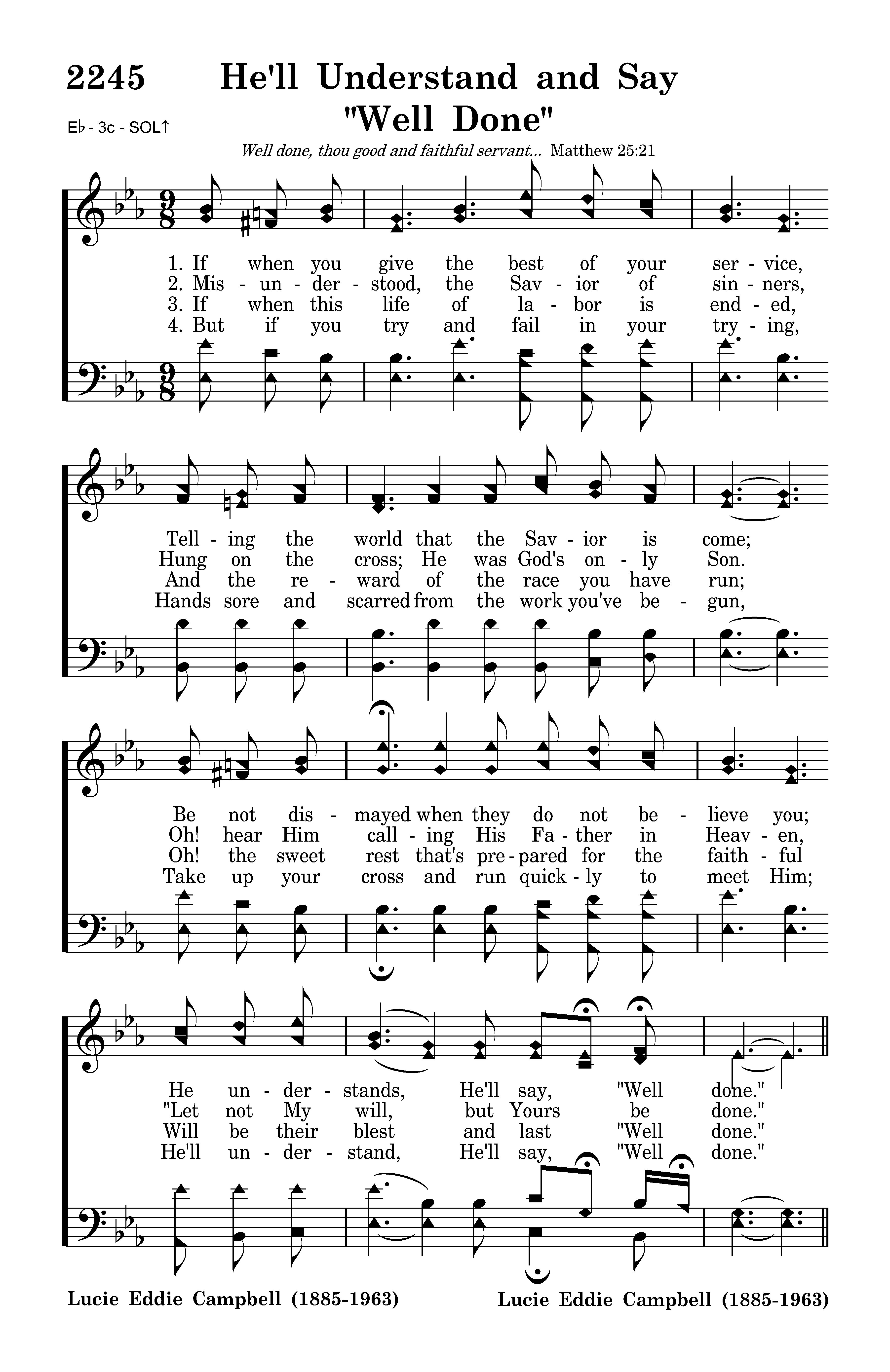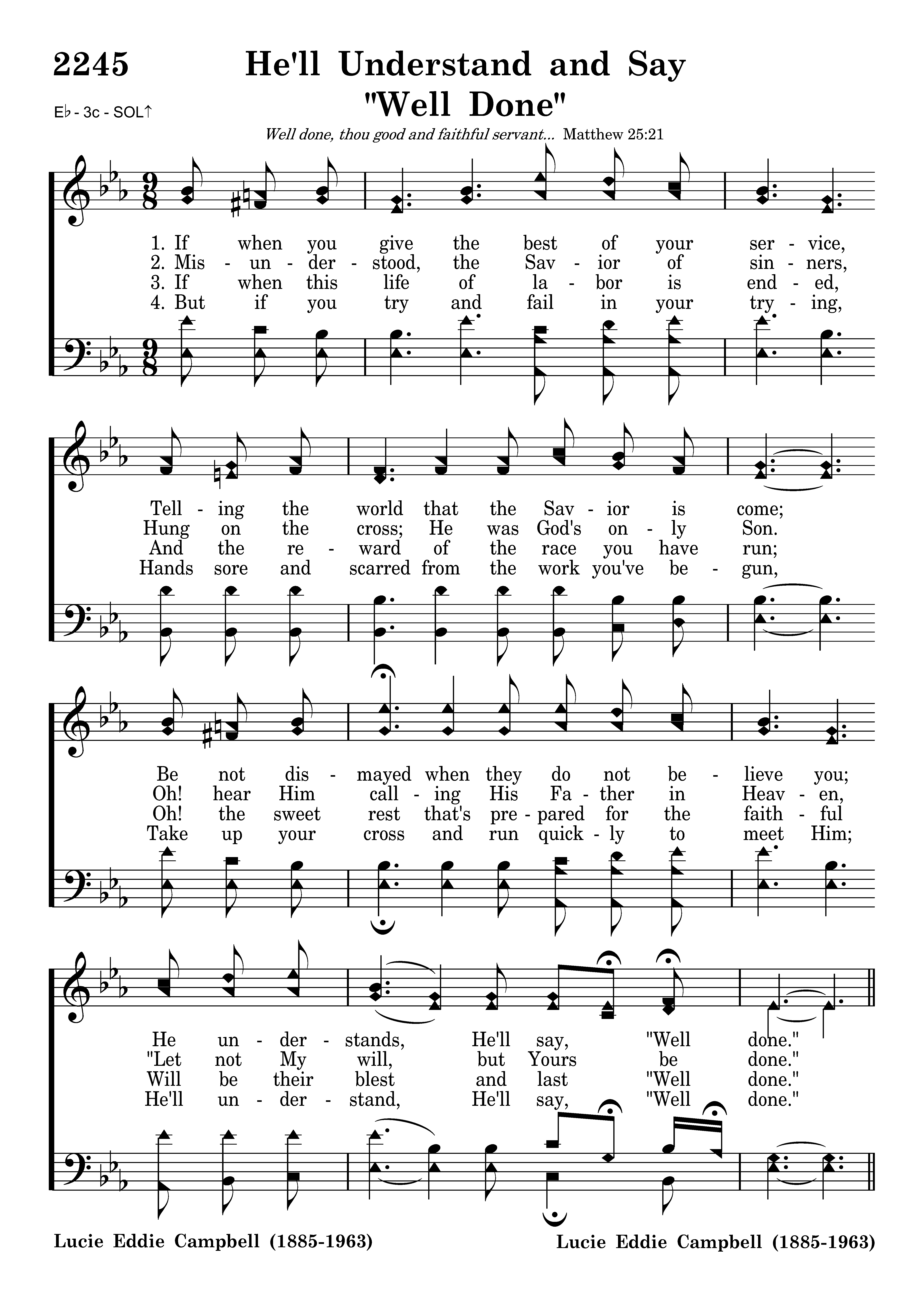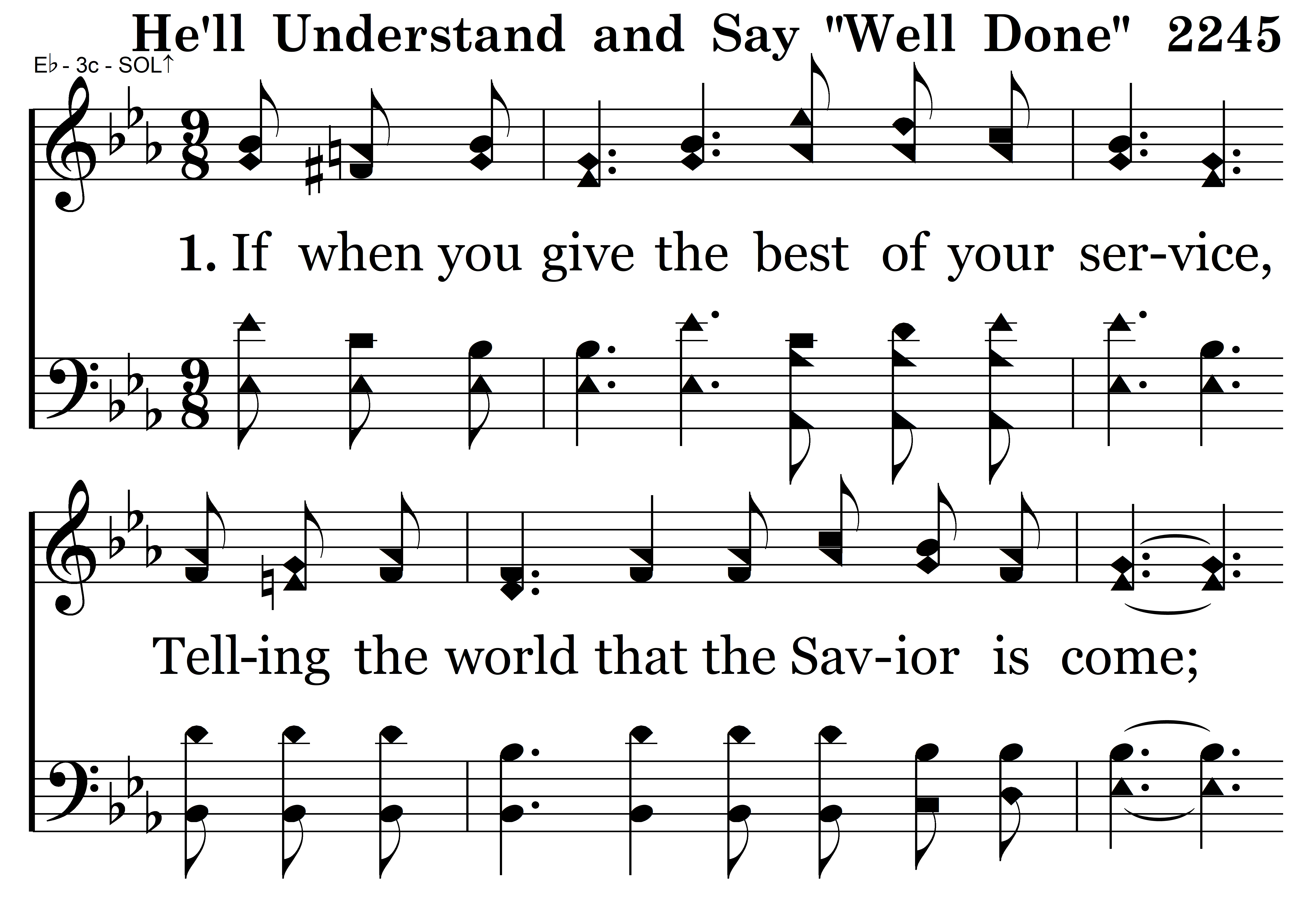 If when you give the best of your service, Telling the world that the Savior is come; Be not dismayed when they do not believe you; He understands, He'll say, "Well done."