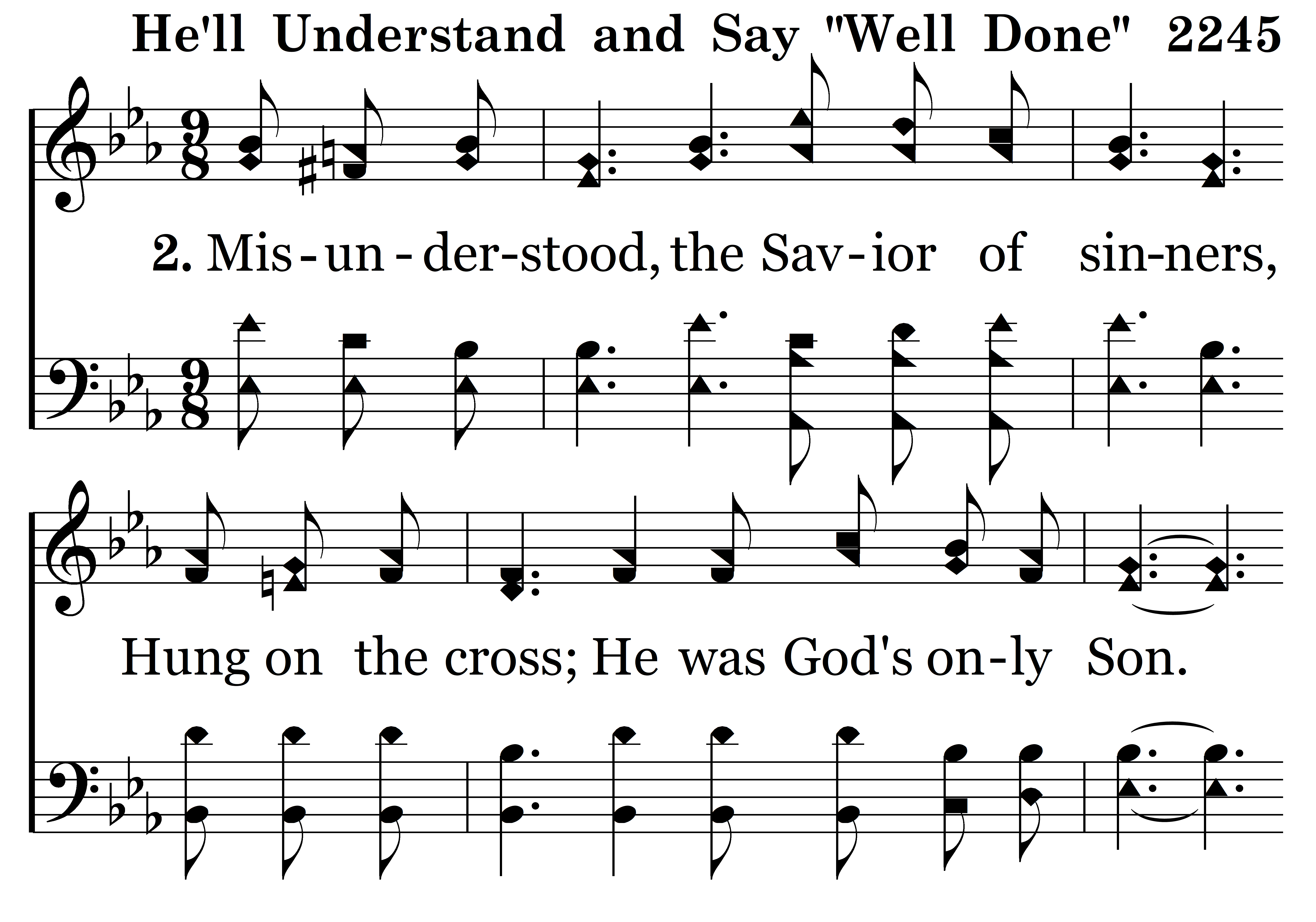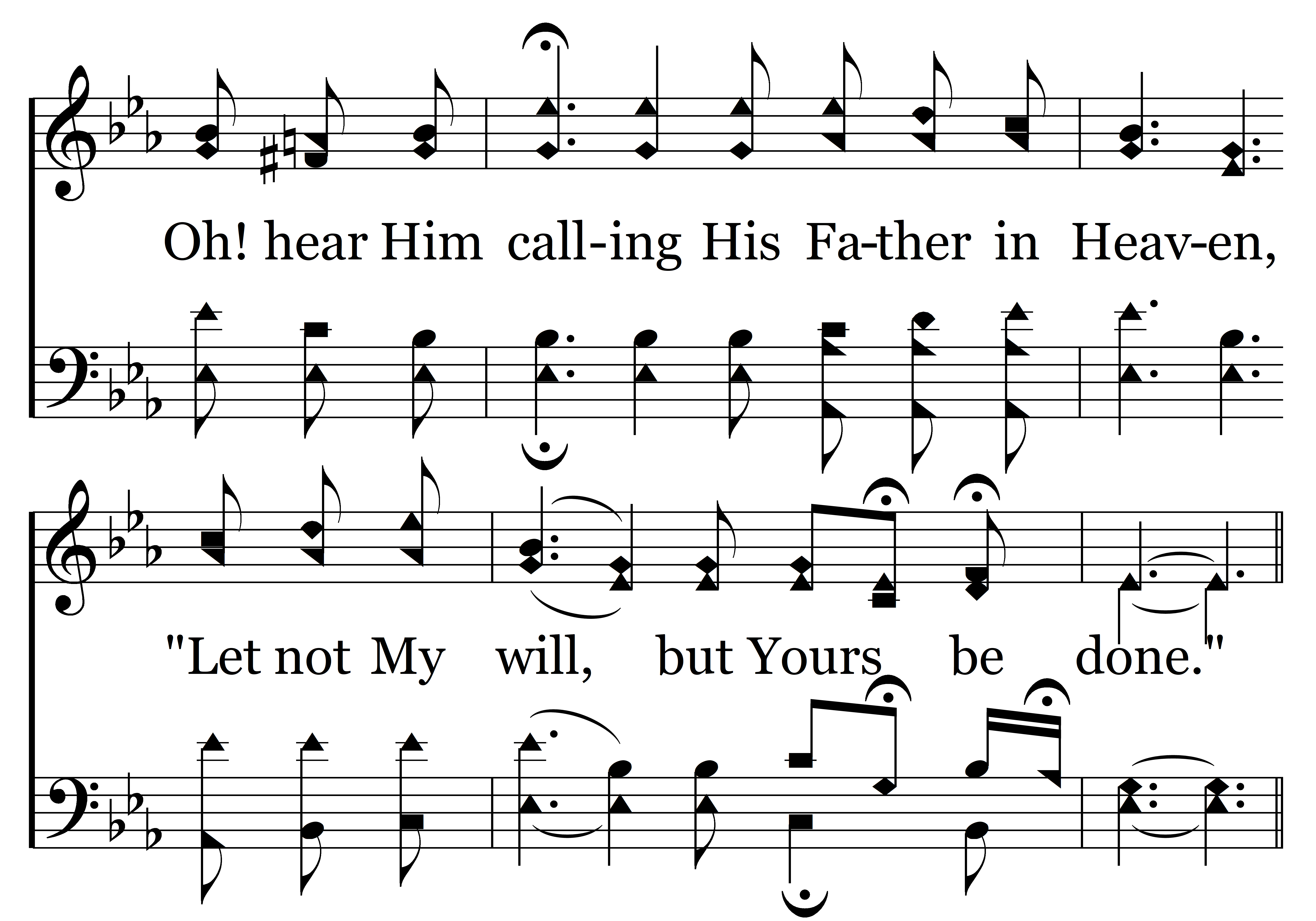 Misunderstood, the Savior of sinners, Hung on the cross; He was God's only Son. Oh! hear Him calling His Father in Heaven, "Let not My will, but Yours be done."