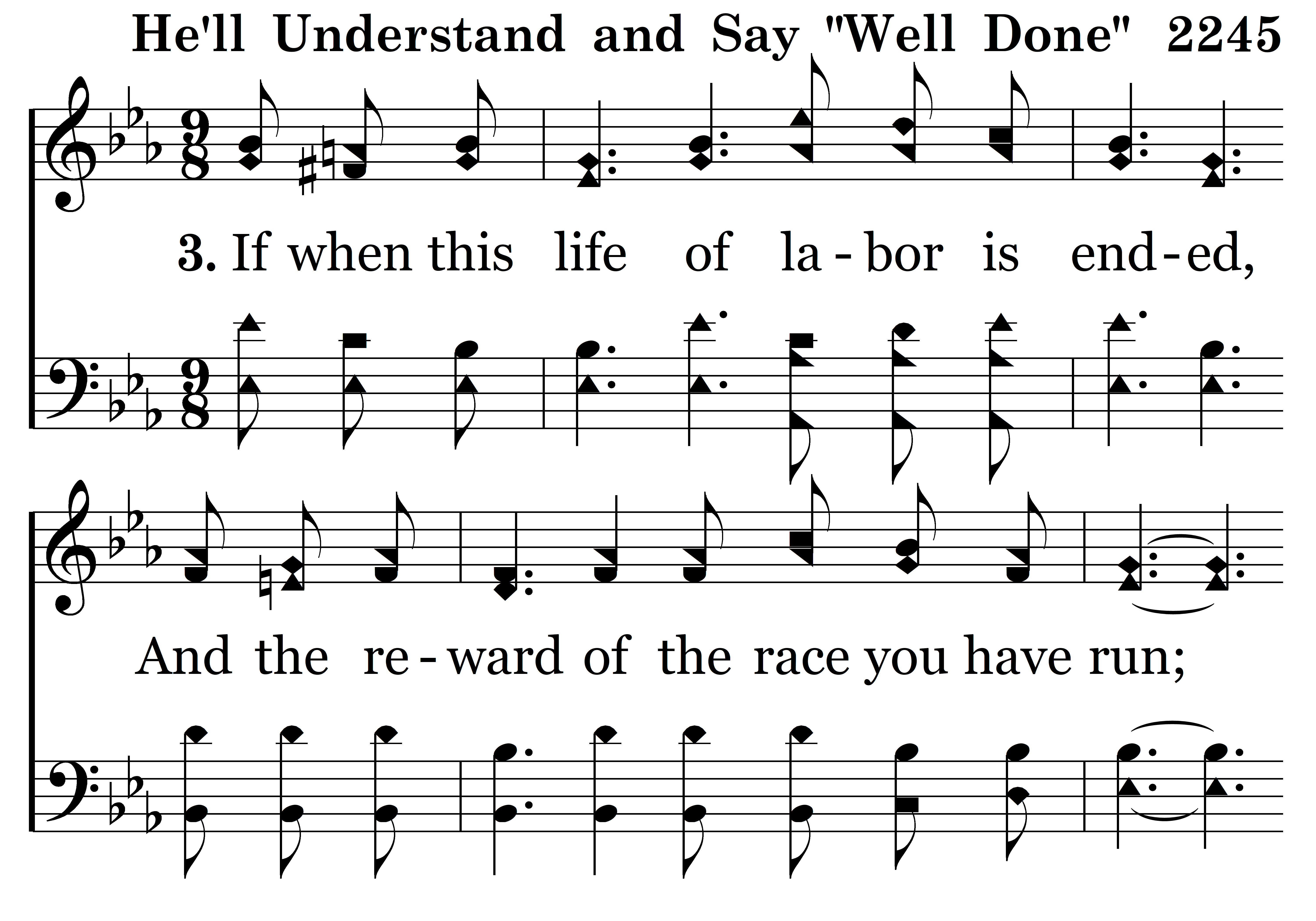 If when this life of labor is ended, And the reward of the race you have run; Oh! the sweet rest that's prepared for the faithful Will be their blest and last "Well done."