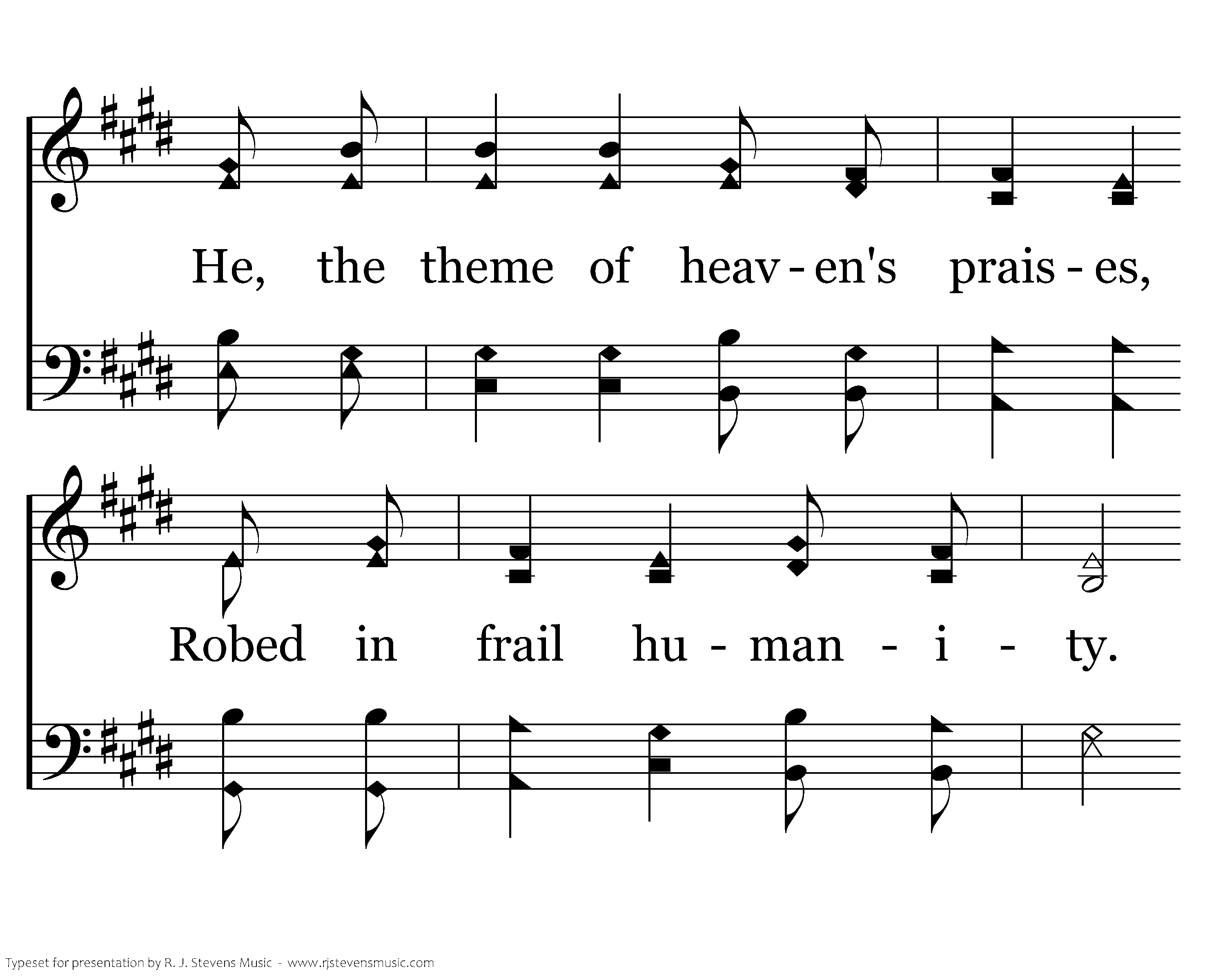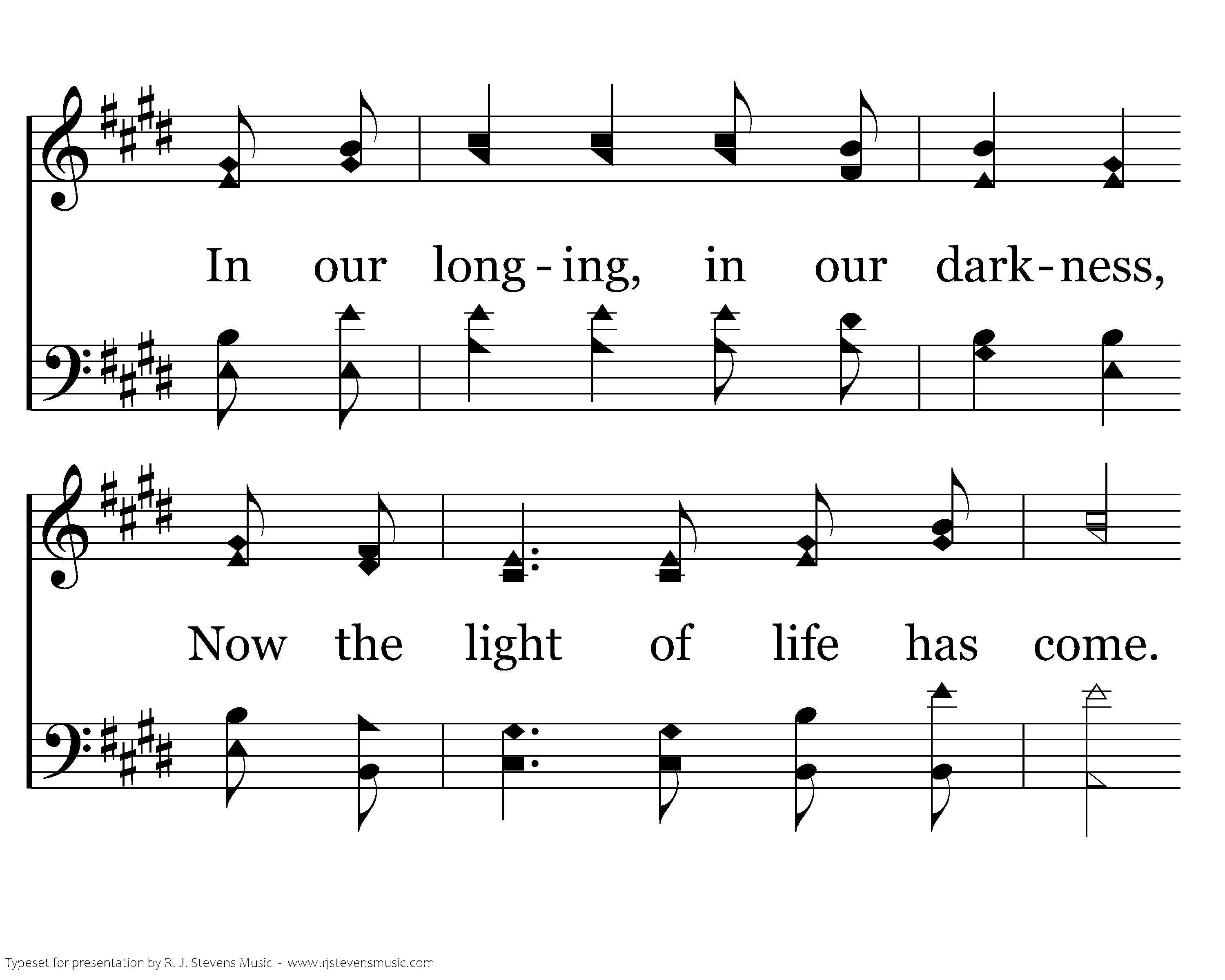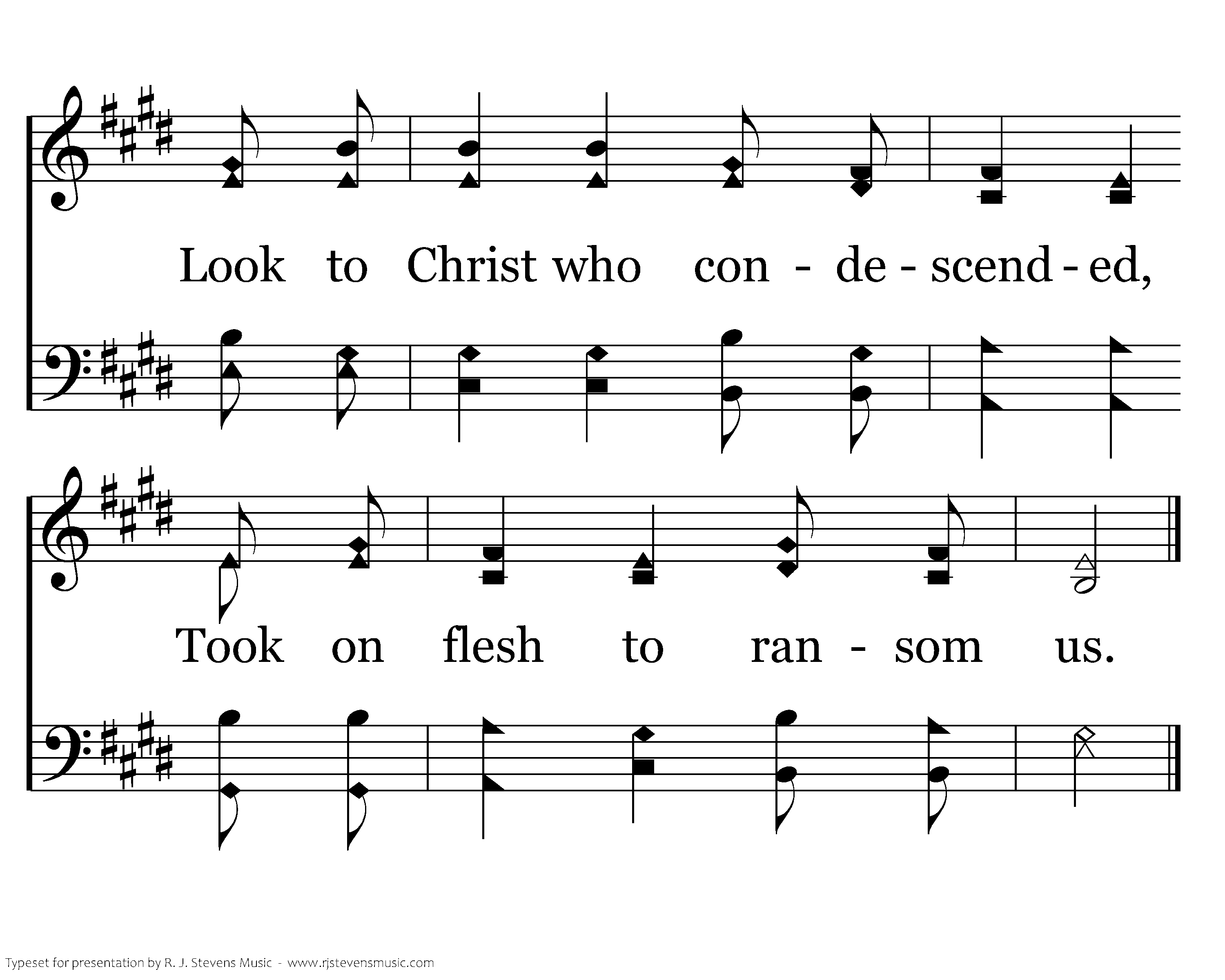 Come, behold the wondrous myst'ry In the dawning of the King: He, the theme of heaven's praises, Robed in frail humanity. In our longing, in our darkness, Now the light of life has come. Look to Christ who condescended, Took on flesh to ransom us.