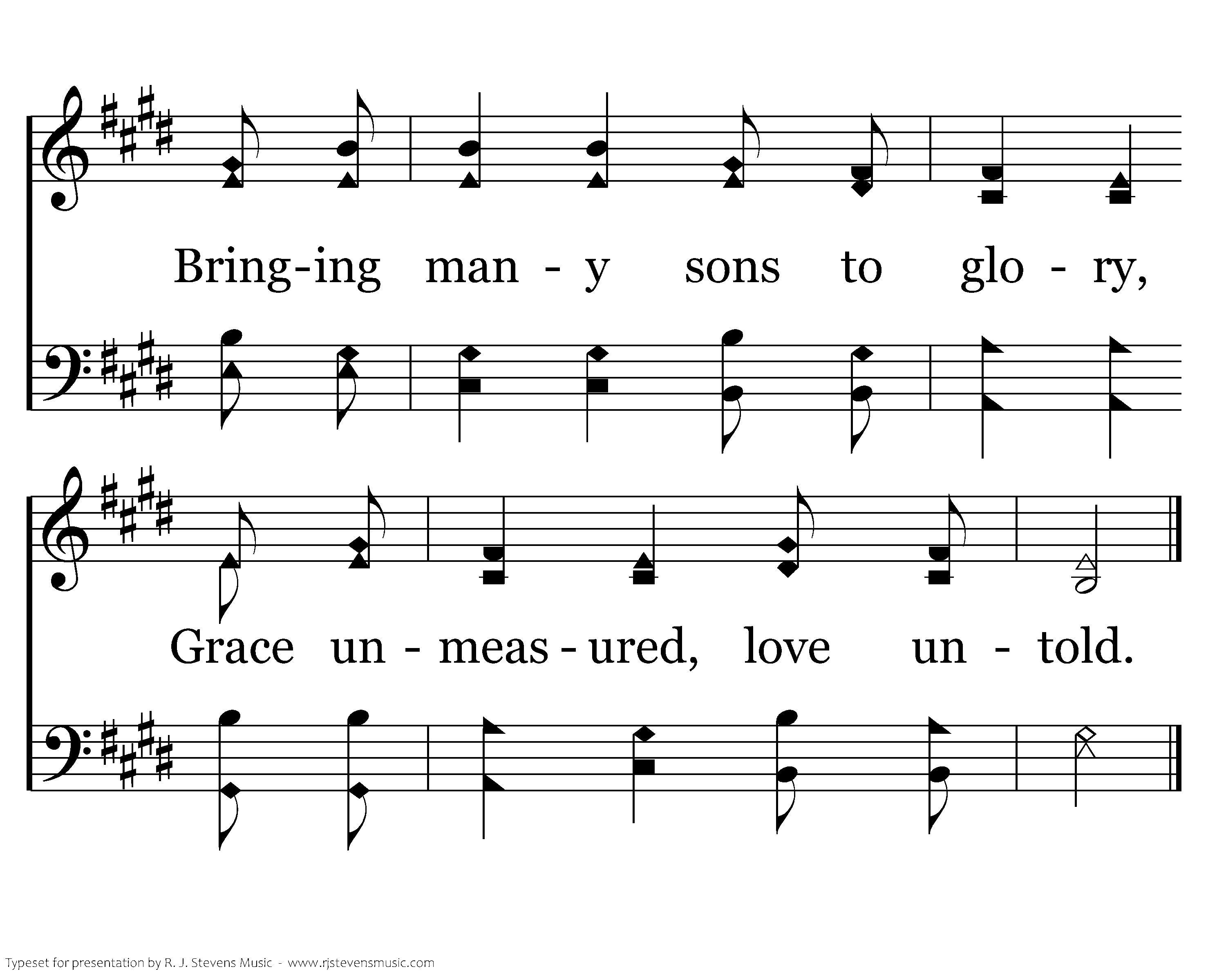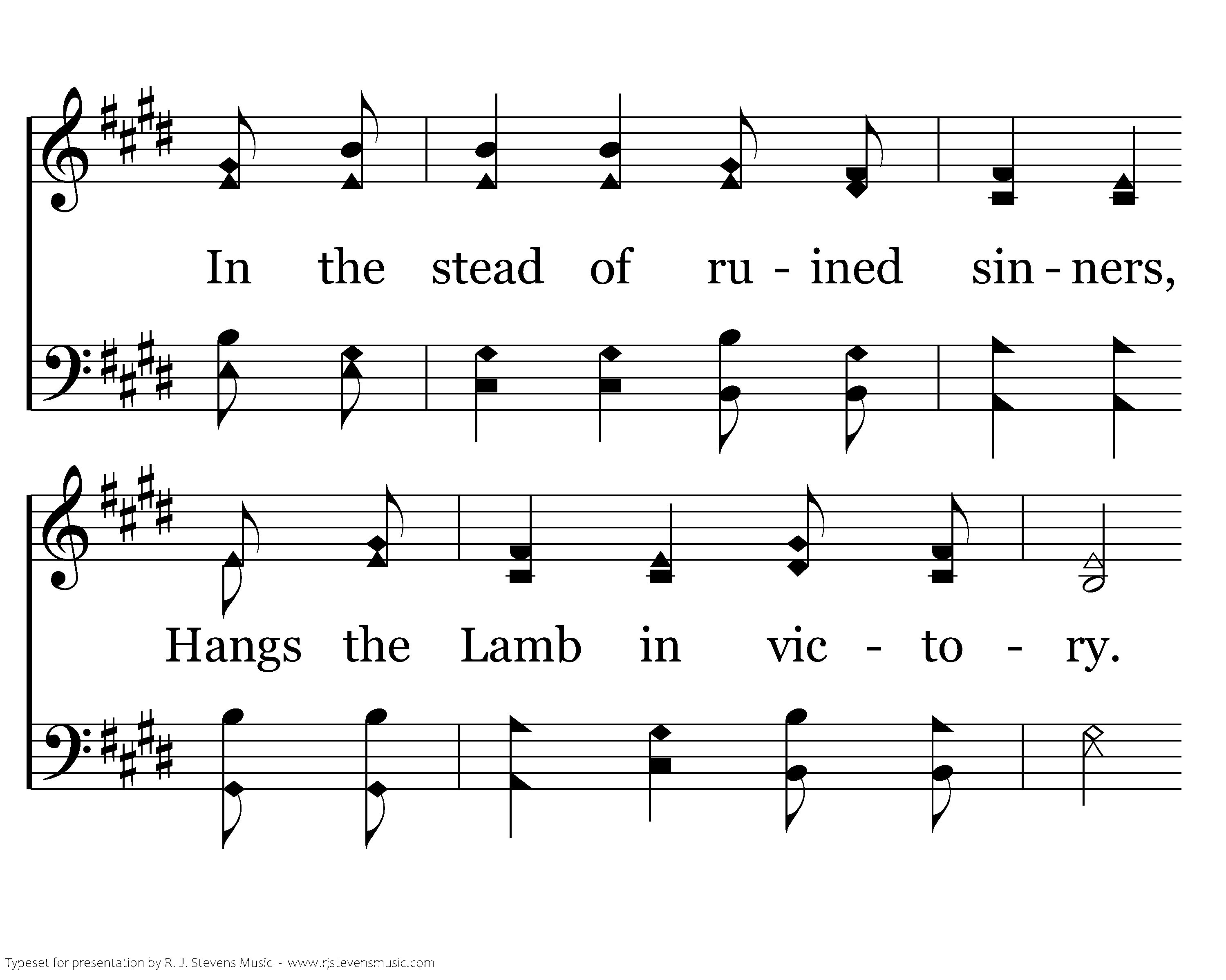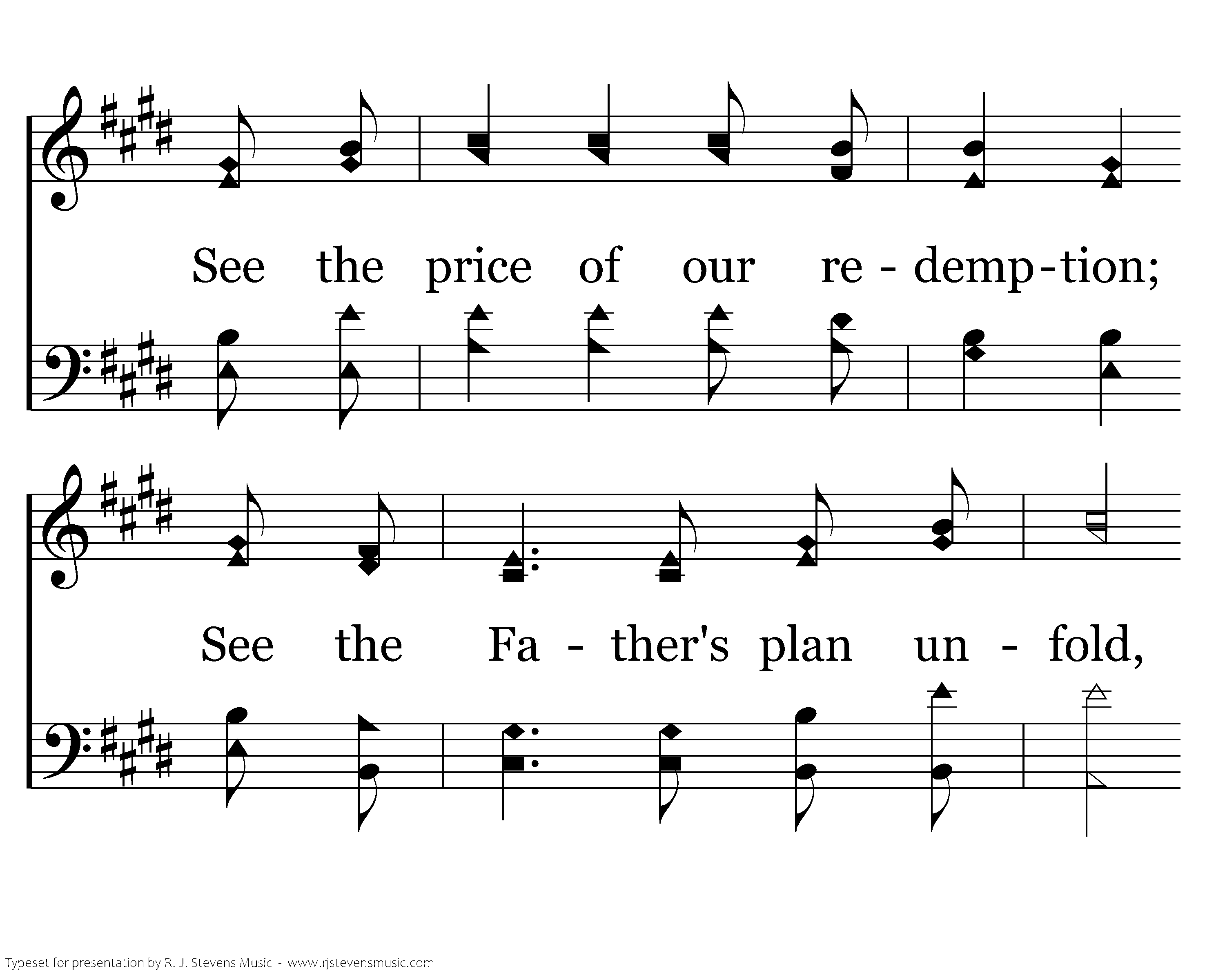Come, behold the wondrous myst'ry: Christ the Lord upon the tree; In the stead of ruined sinners, Hangs the Lamb in victory. See the price of our redemption; See the Father's plan unfold, Bringing many sons to glory, Grace unmeasured, love untold.