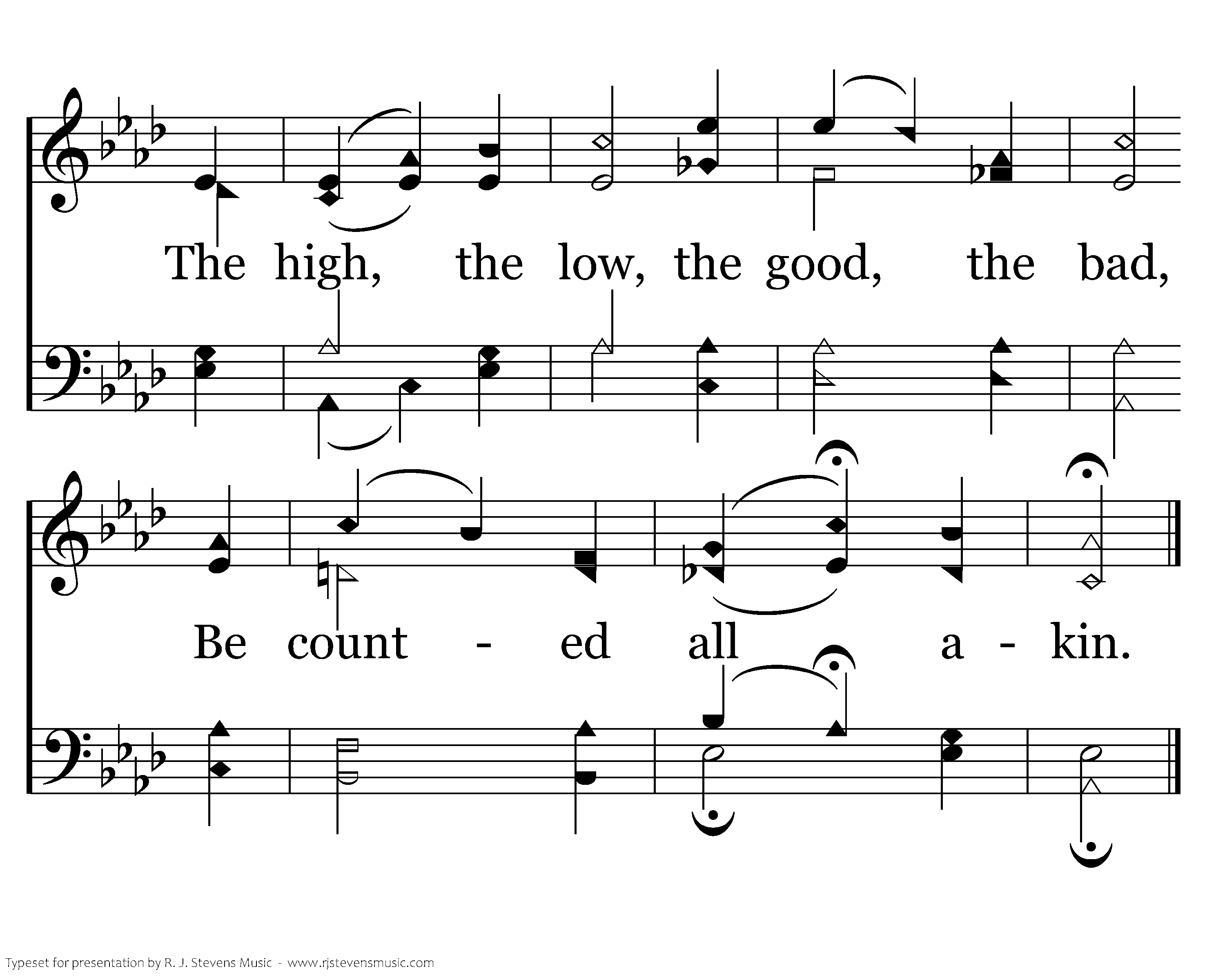 A soul so large that all mankind Can be embrac’d therein; The high, the low, the good, the bad, Be counted all akin.