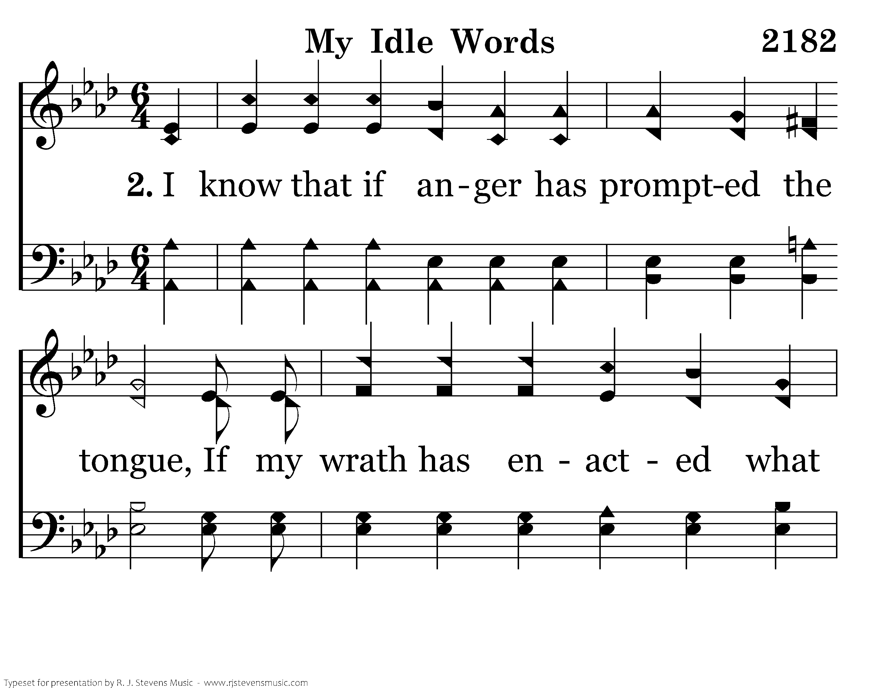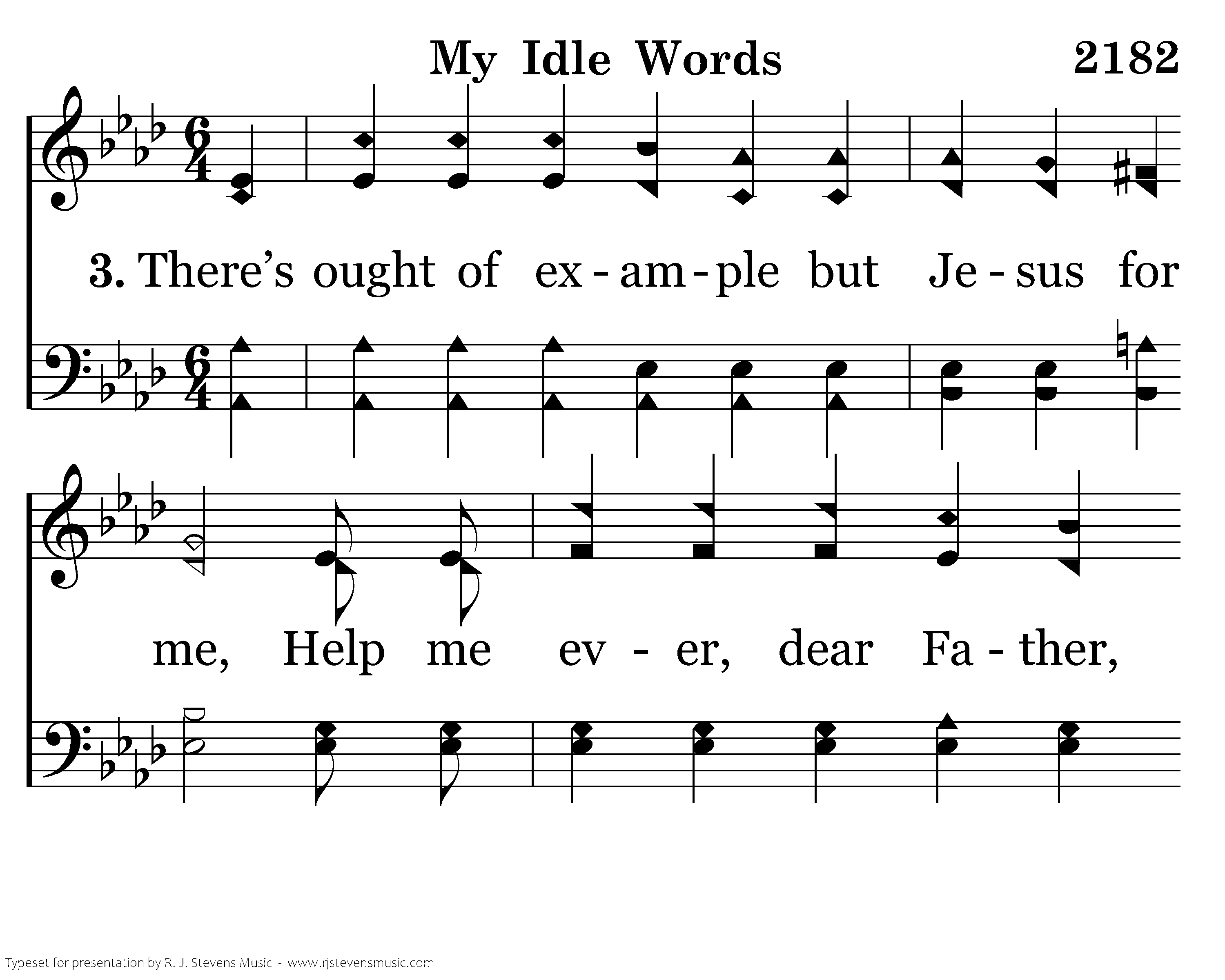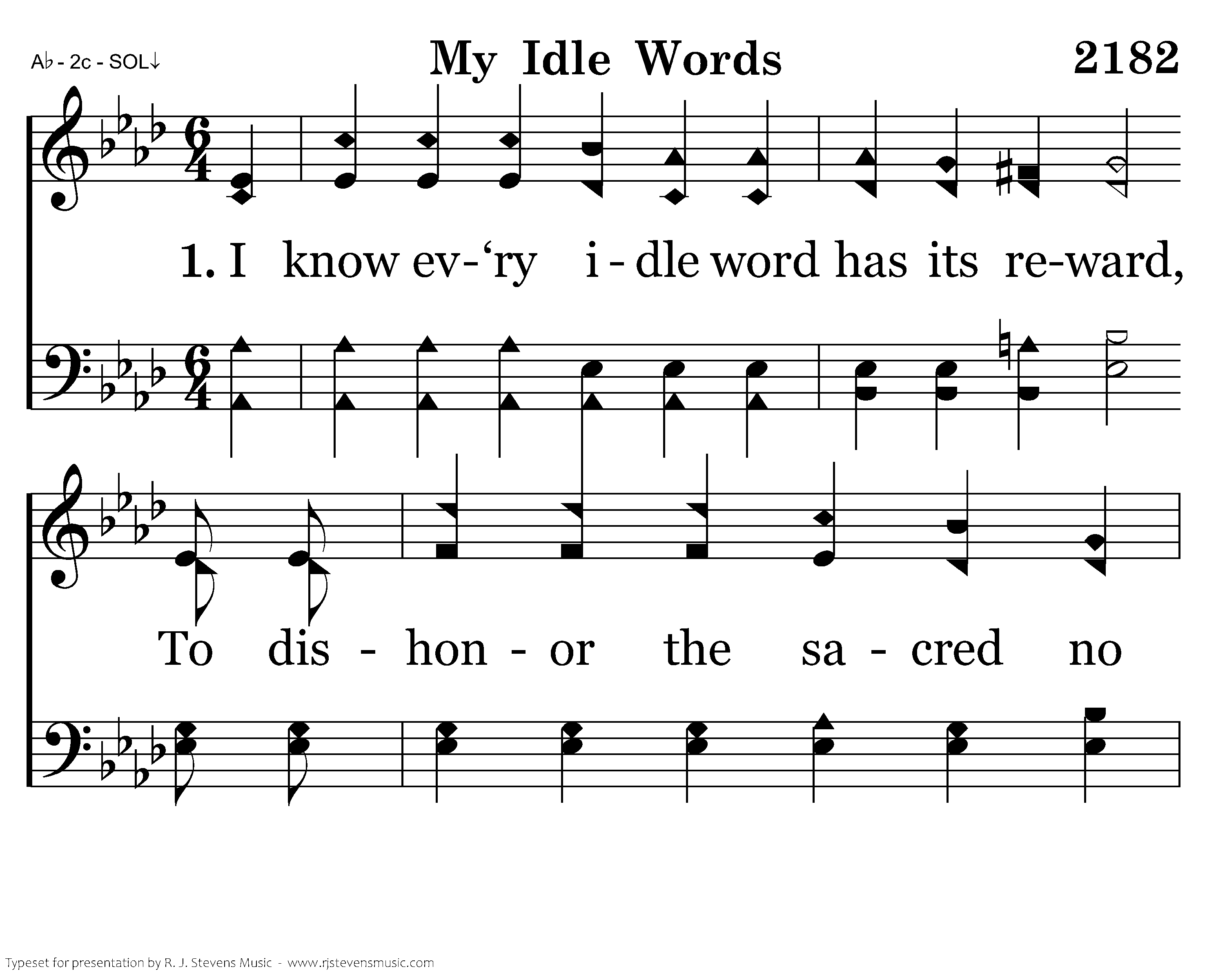 I know ev‘ry idle word has its reward, To dishonor the sacred no true heart accords; Forgive me, dear God, if I’ve uttered a word That would not have been said by my Lord.