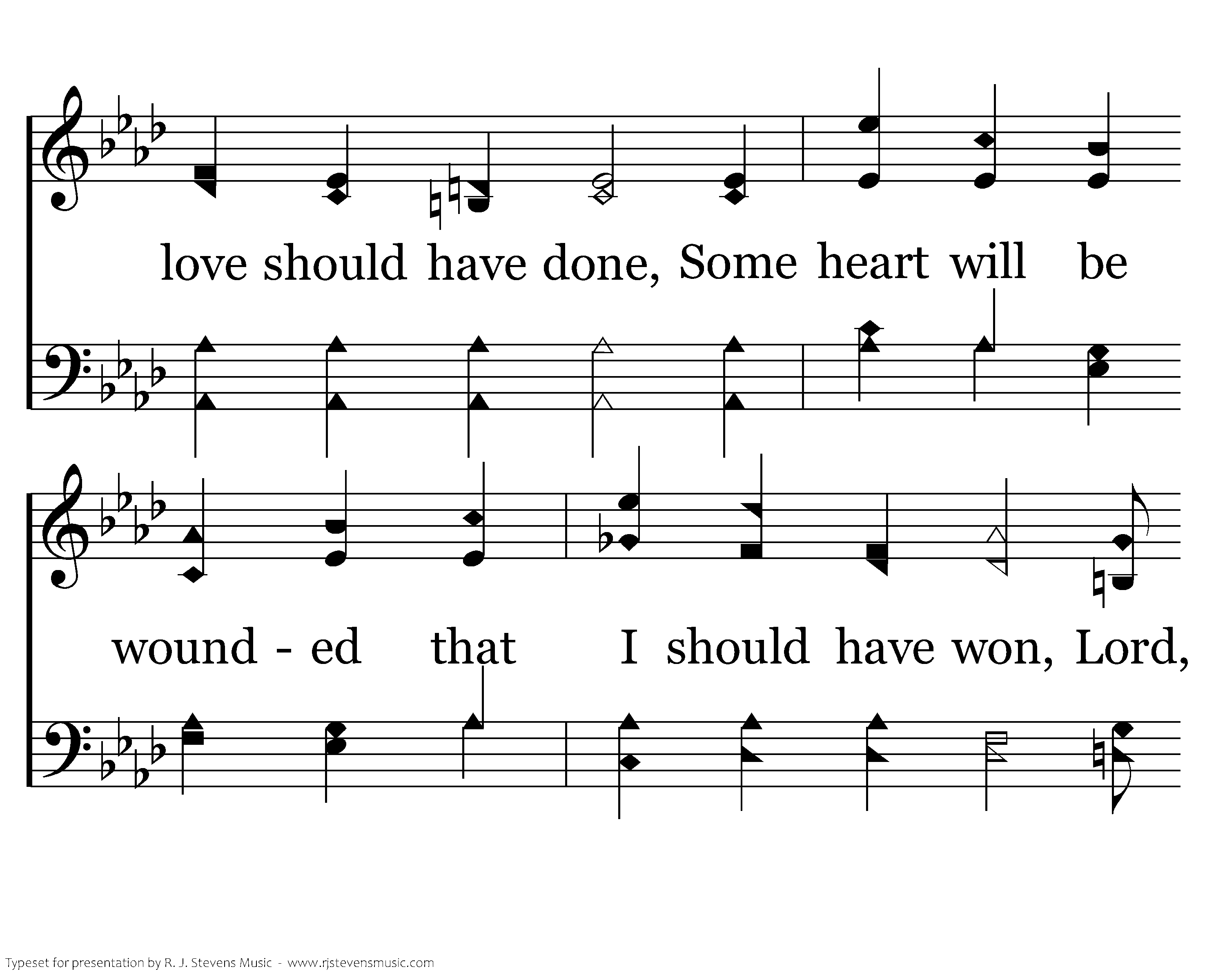 I know that if anger has prompted the tongue, If my wrath has enacted what love should have done, Some heart will be wounded that I should have won, Lord, forgive if I’ve injured a one.