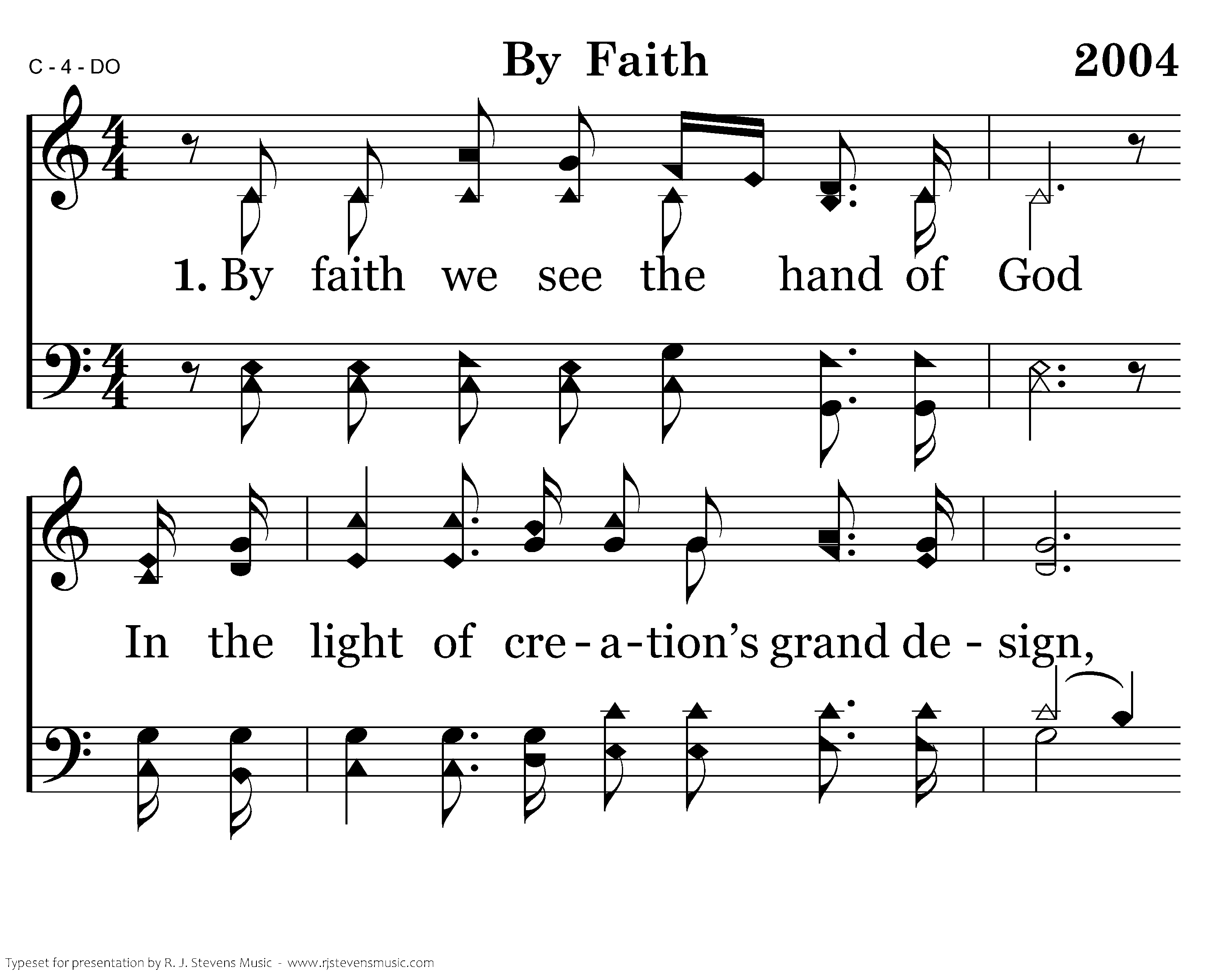 By faith we see the hand of God In the light of creation’s grand design, In the lives of those who prove His faithfulness, Who walk by faith and not by sight.