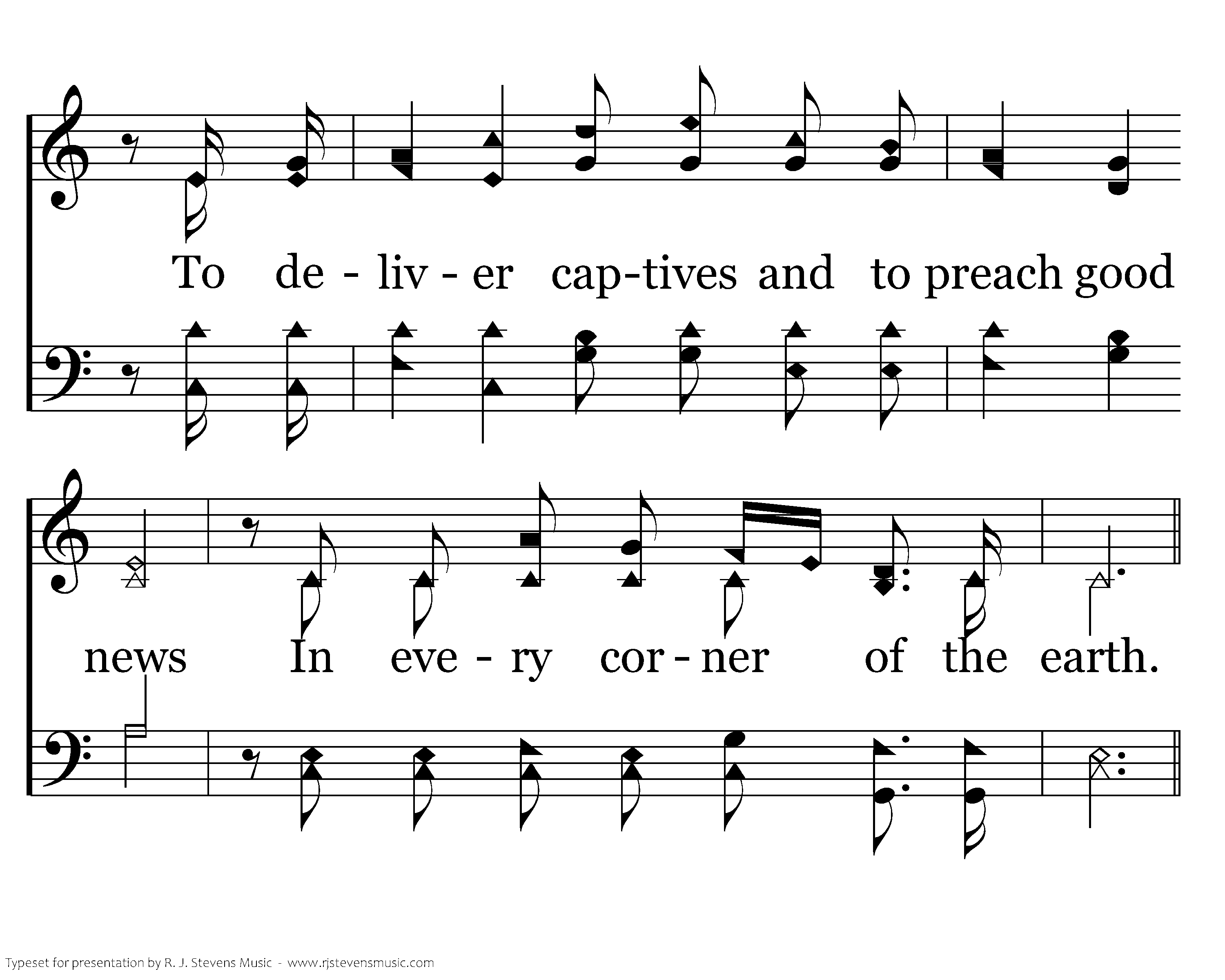 By faith the church was called to go In the pow'r of the Spirit to the lost, To deliver captives and to preach good news In every corner of the earth.