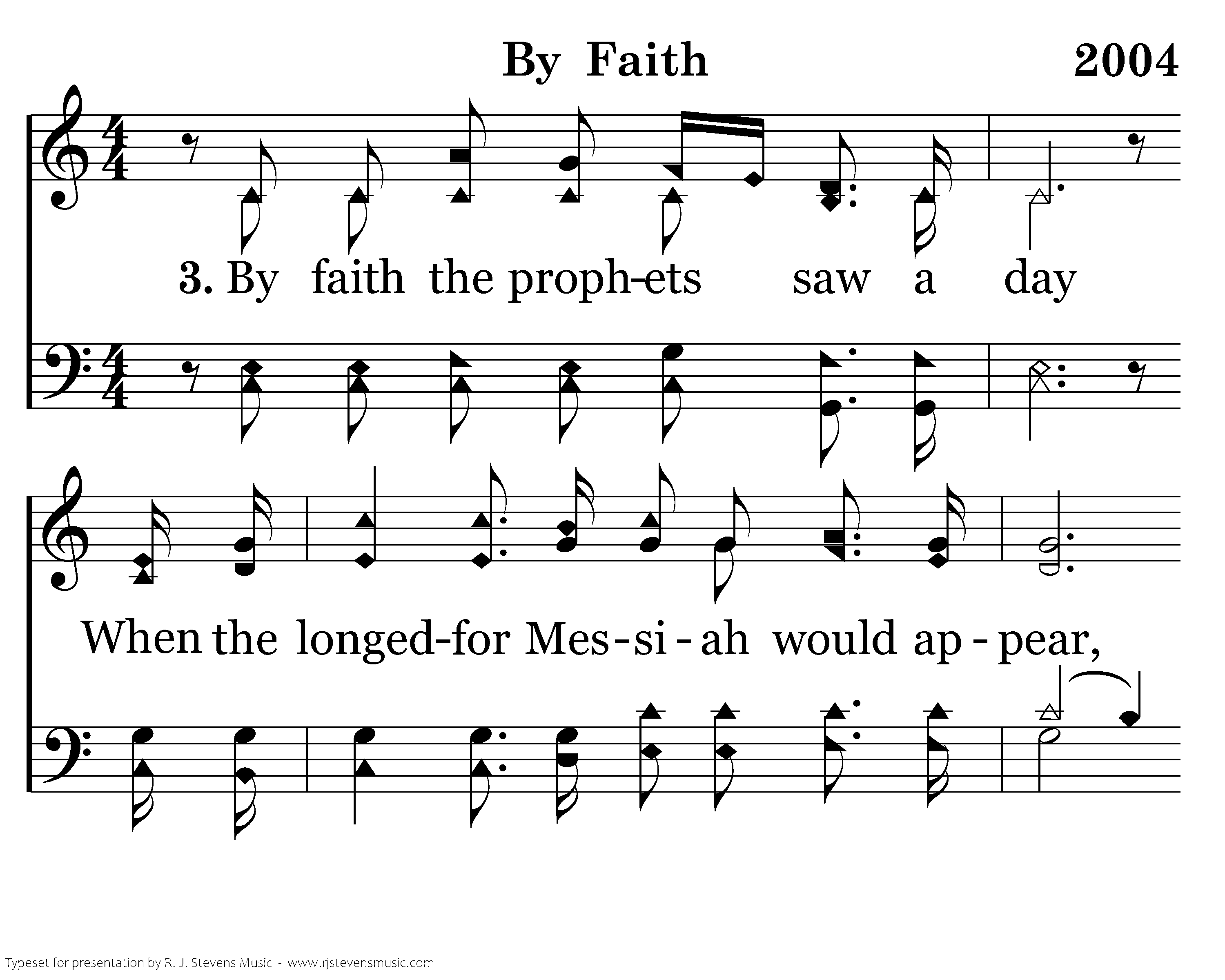 By faith the prophets saw a day When the longed for Messiah would appear, With the pow'r to break the chains of sin and death And rise triumphant from the grave.