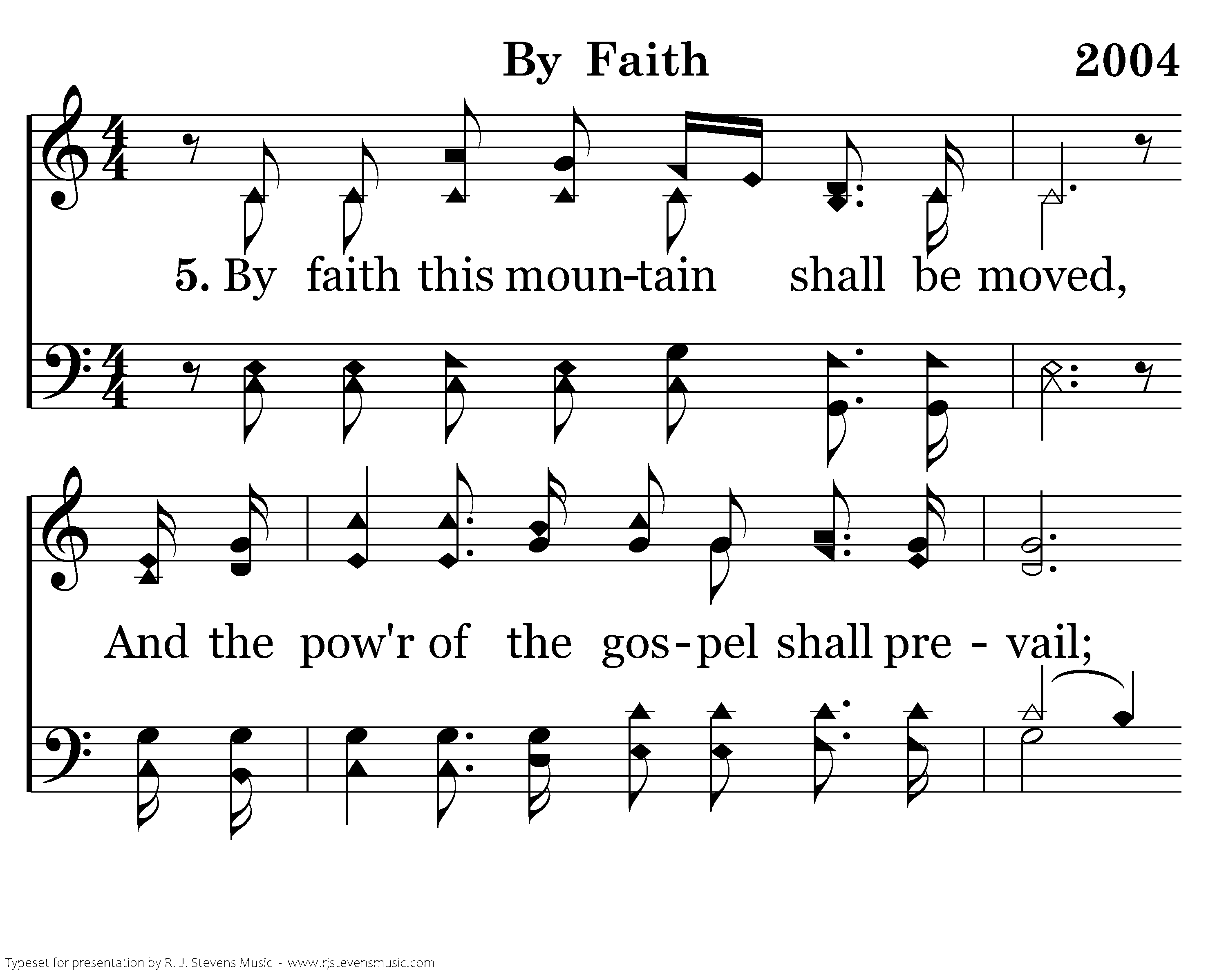 By faith this mountain shall be moved, And the pow'r of the gospel shall prevail; For we know in Christ all things are possible For all who call upon His name.
