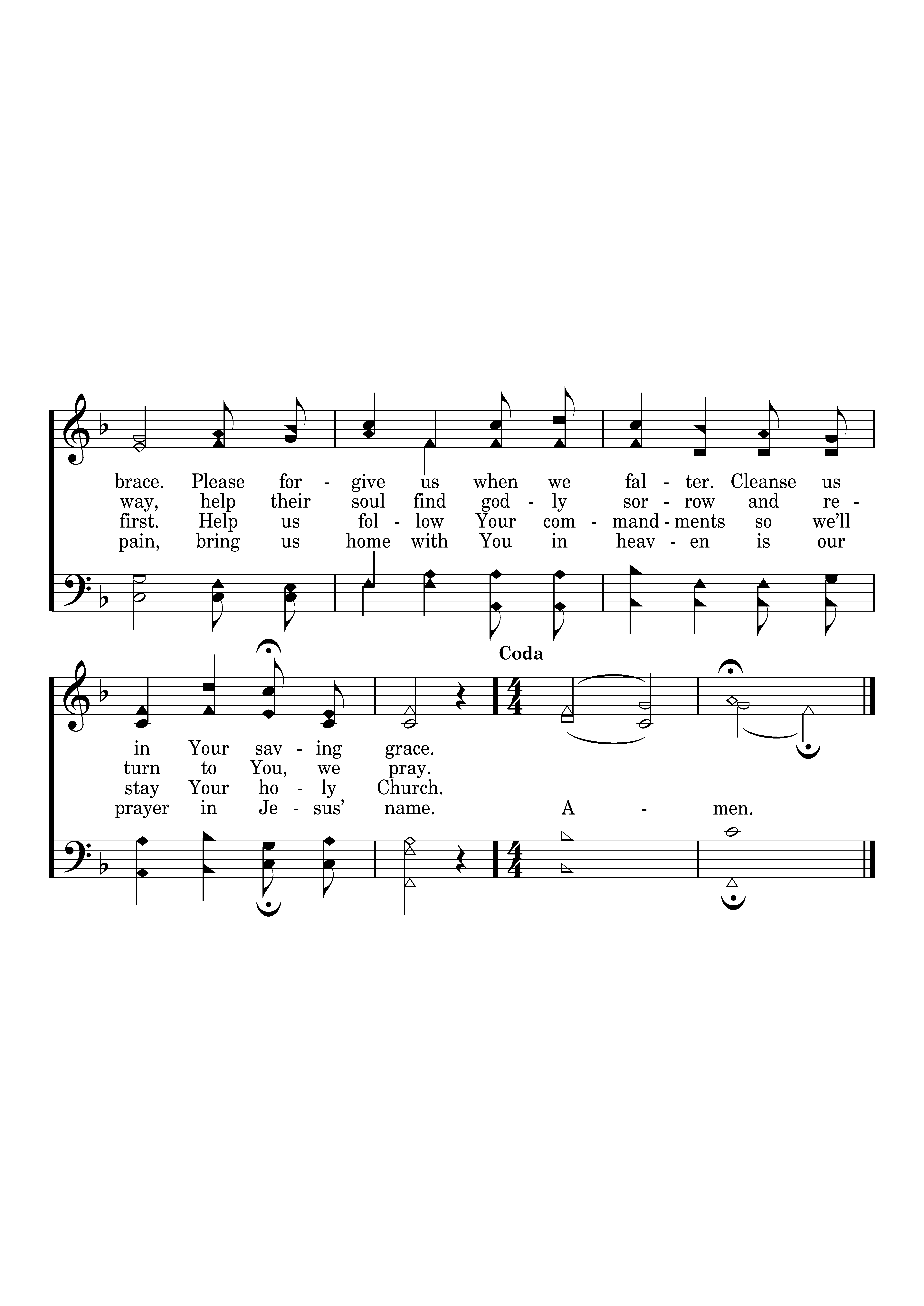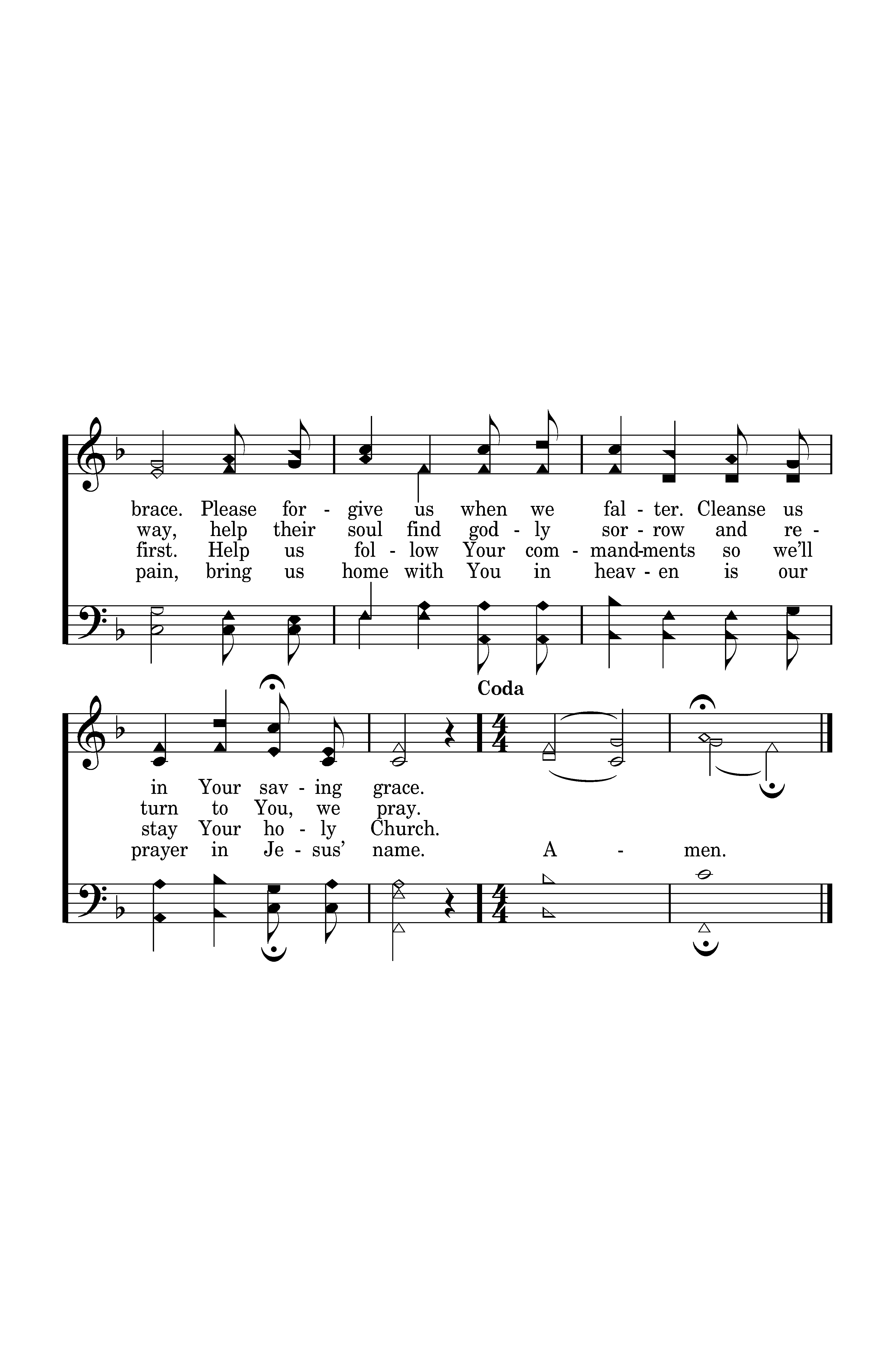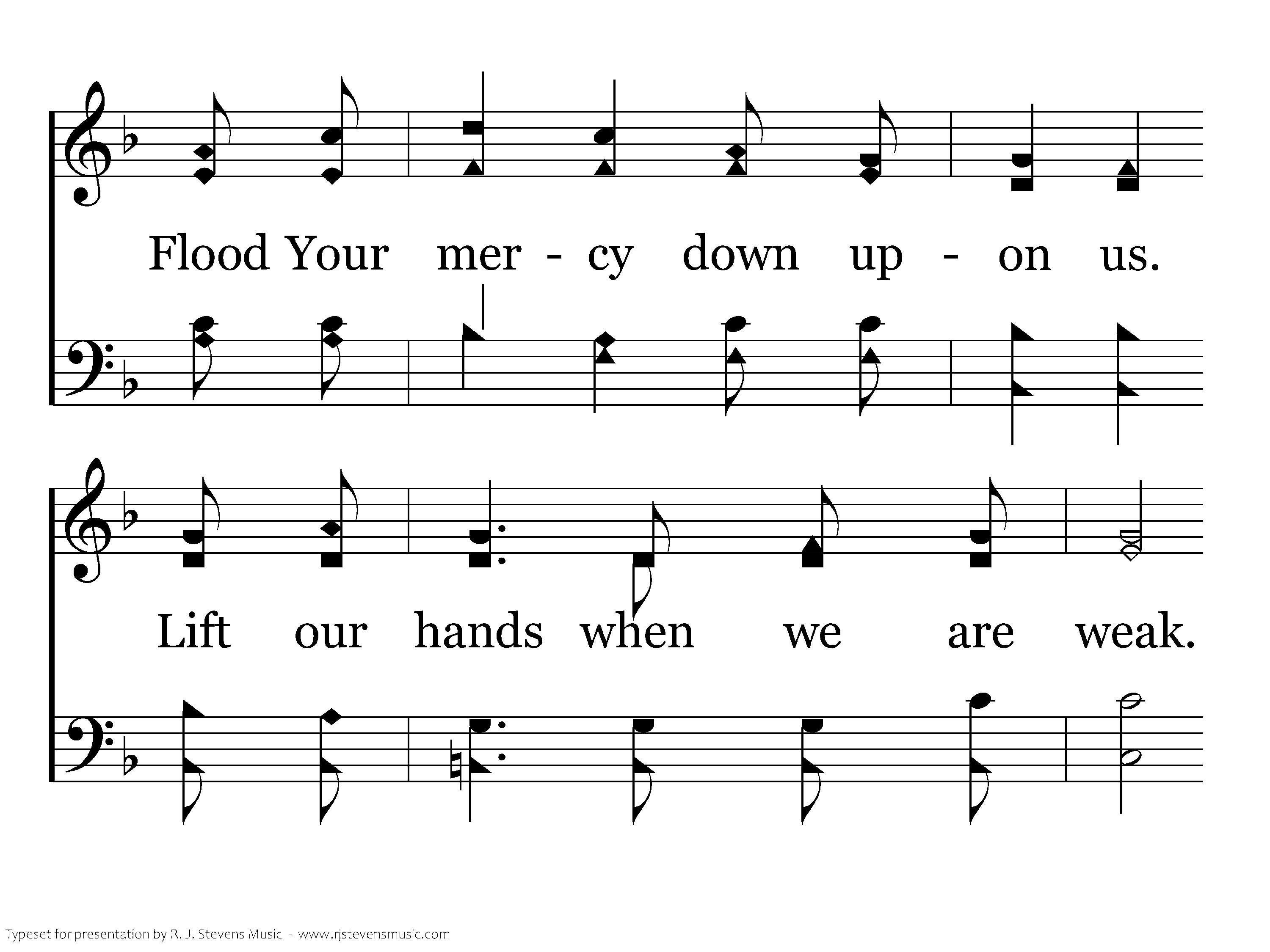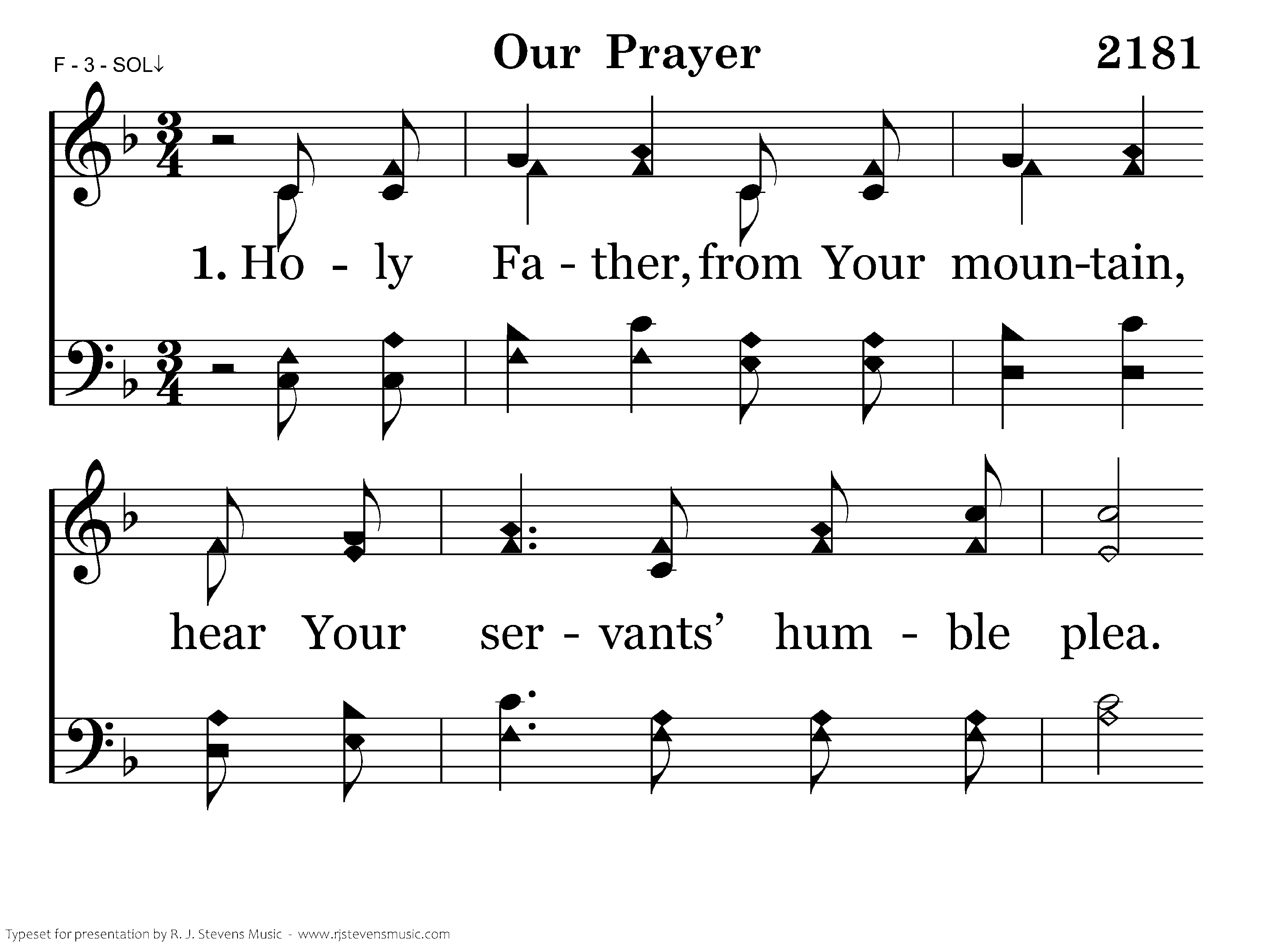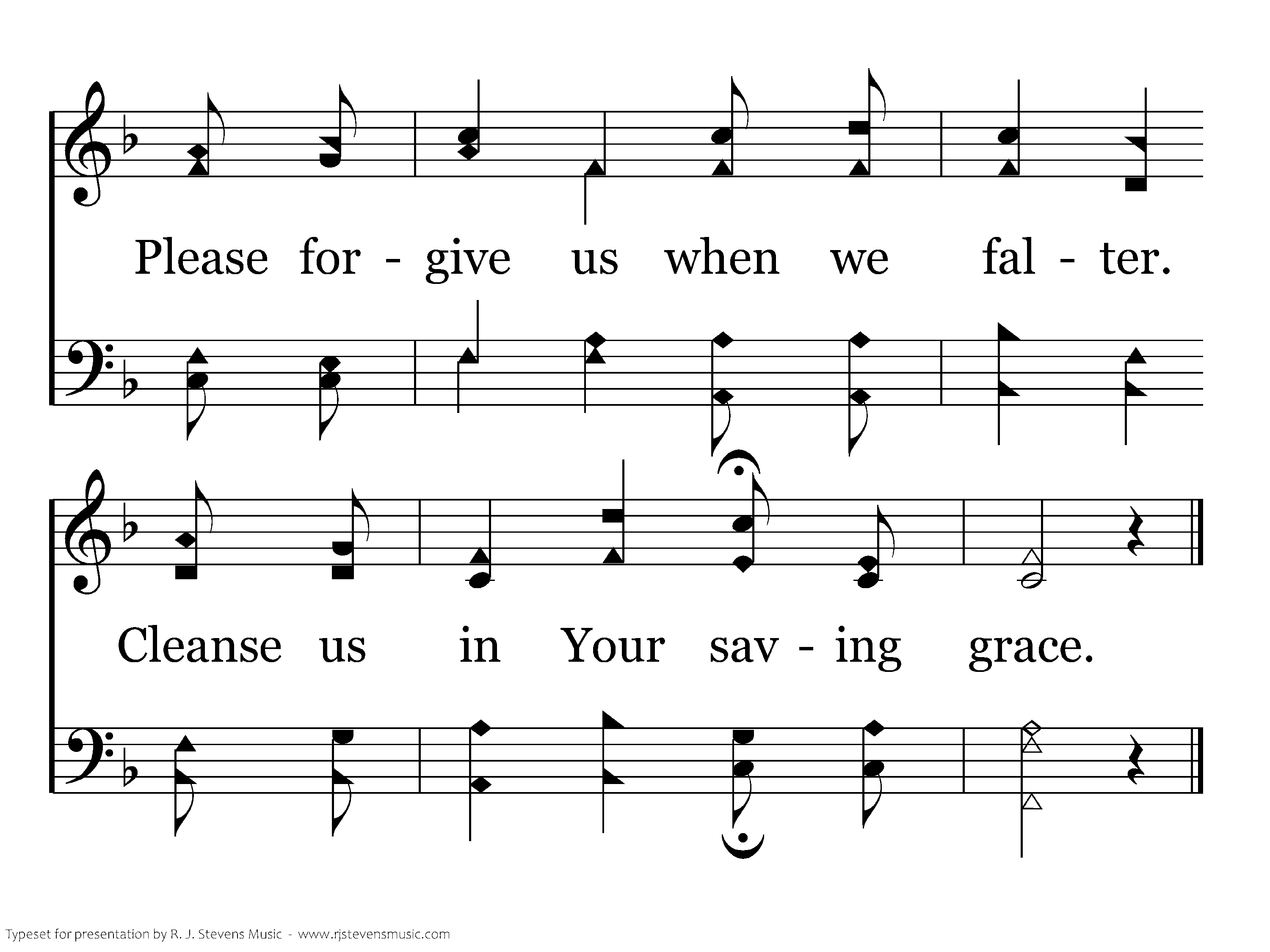 Holy Father, from Your mountain, hear Your servants’ humble plea. Flood Your mercy down upon us. Lift our hands when we are weak. Lord, we’re grateful for Your goodness, hold us in Your warm embrace. Please forgive us when we falter. Cleanse us in Your saving grace.