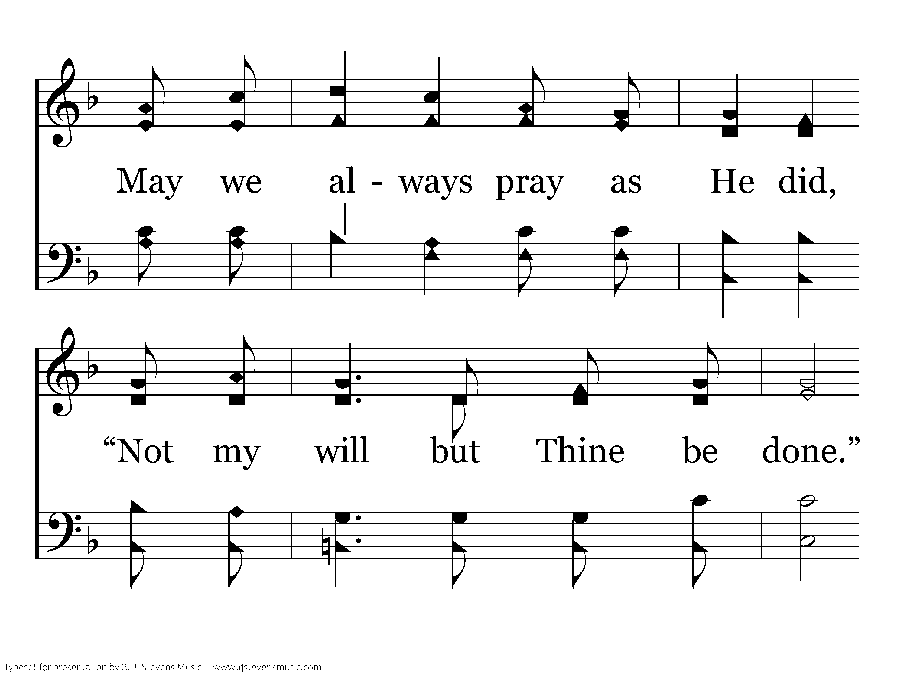 Lord, we thank You for Your blessings, most of all Your only Son. May we always pray as He did, “Not my will but Thine be done.” When at last we’re at the River, having left this world of pain, bring us home with You in heaven is our prayer in Jesus’ name.