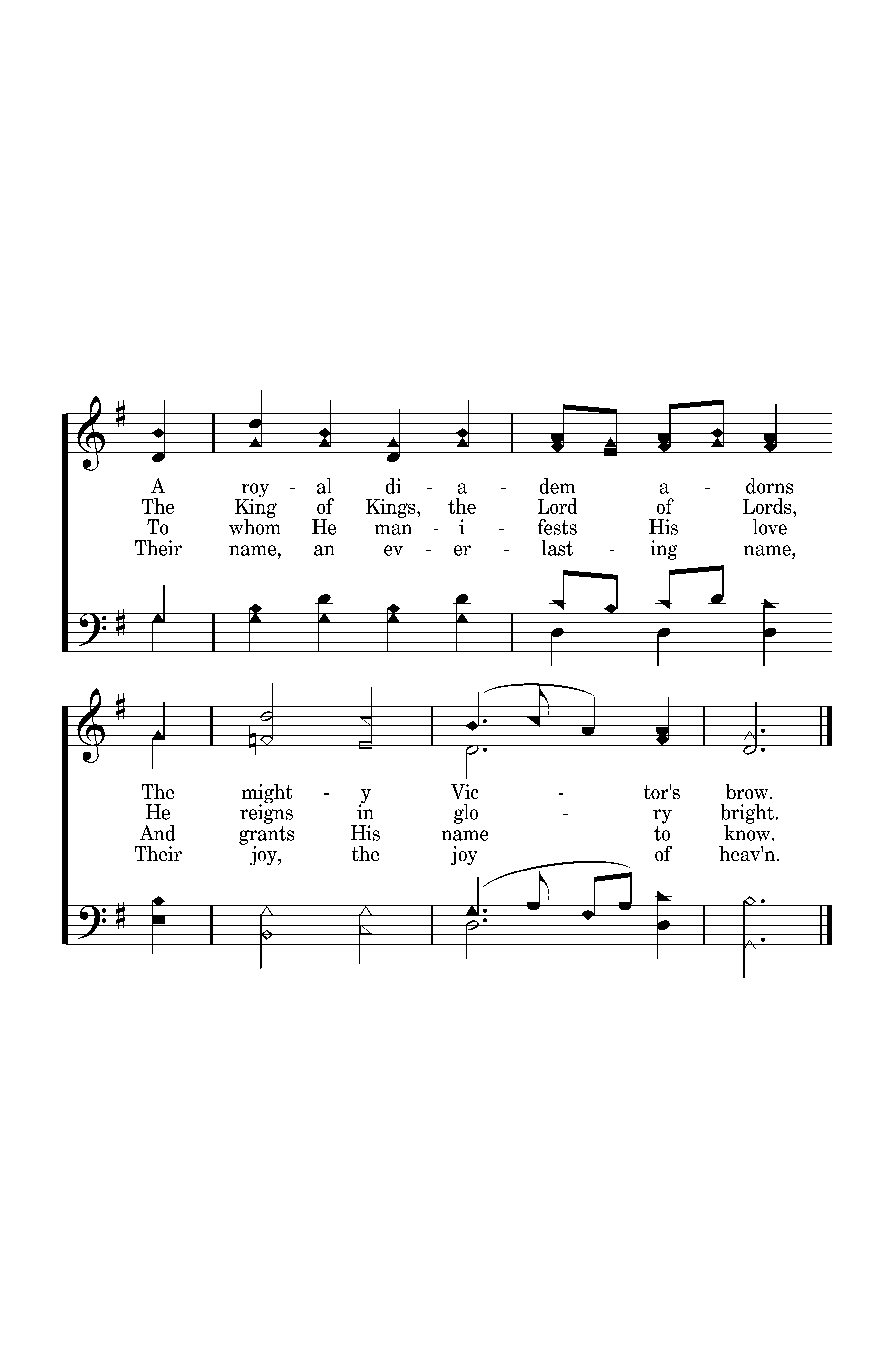 A royal diadem adorns The mighty Victor's brow.