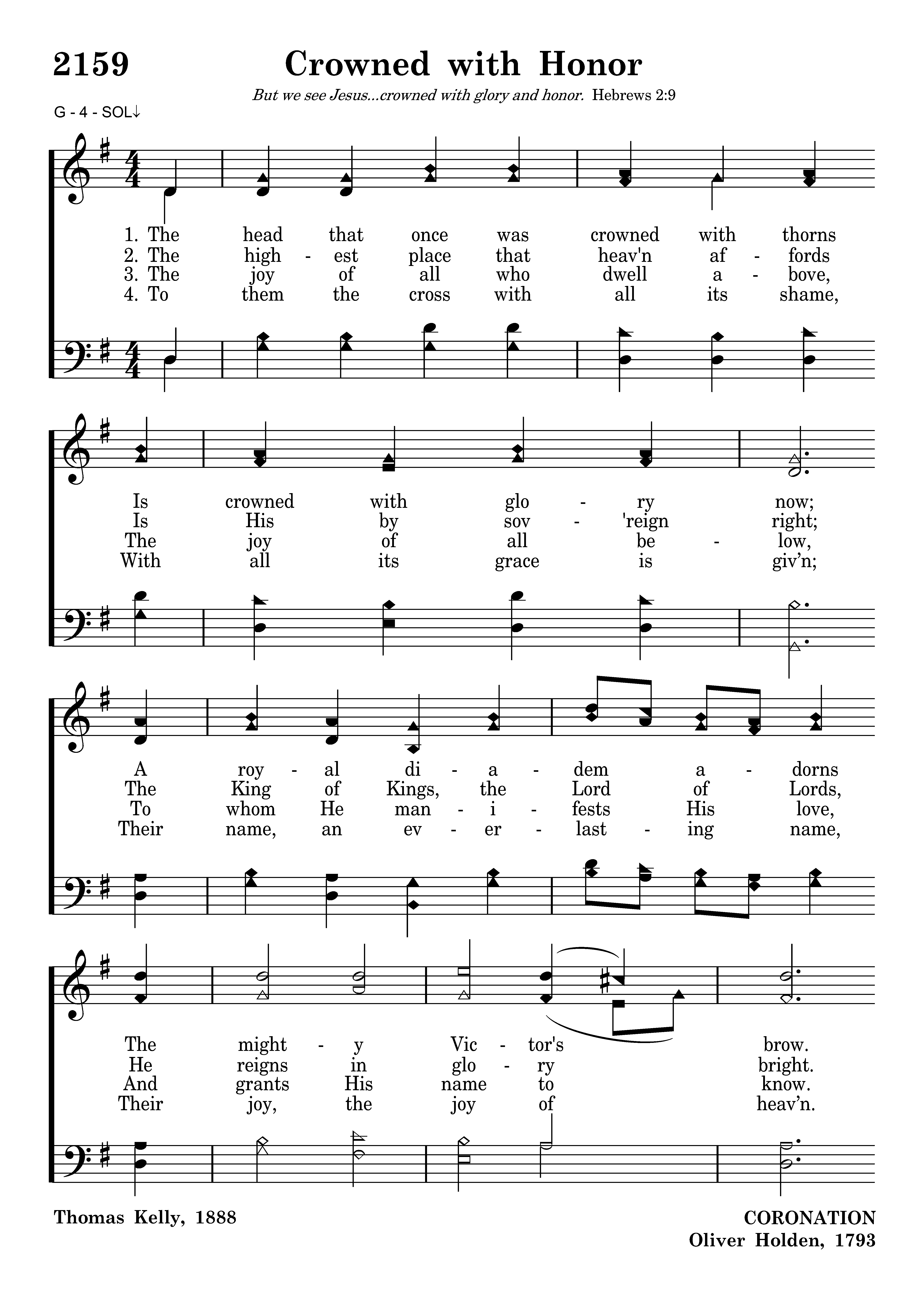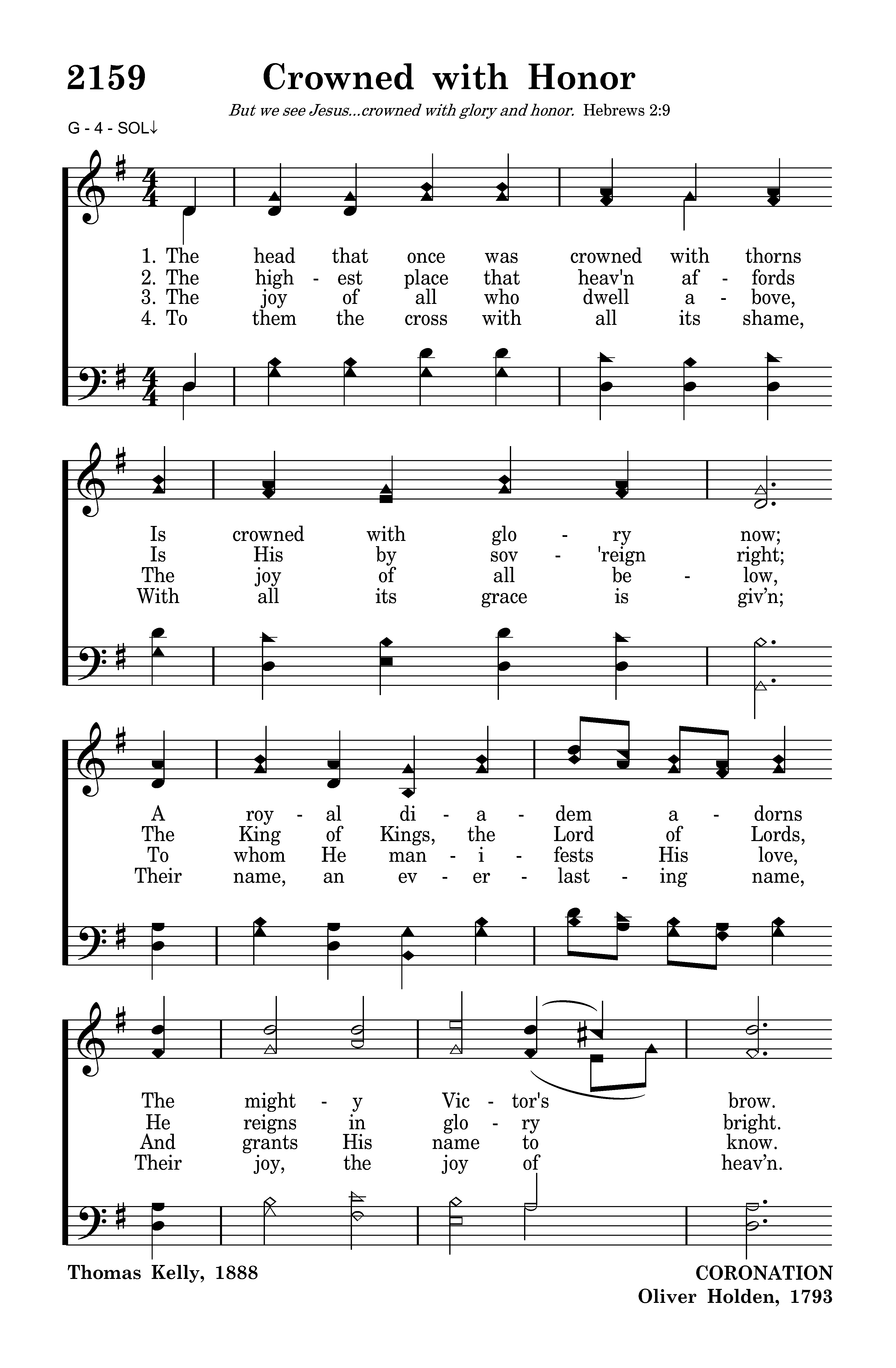 The head that once was crowned with thorns Is crowned with glory now; A royal diadem adorns The mighty Victor's brow.