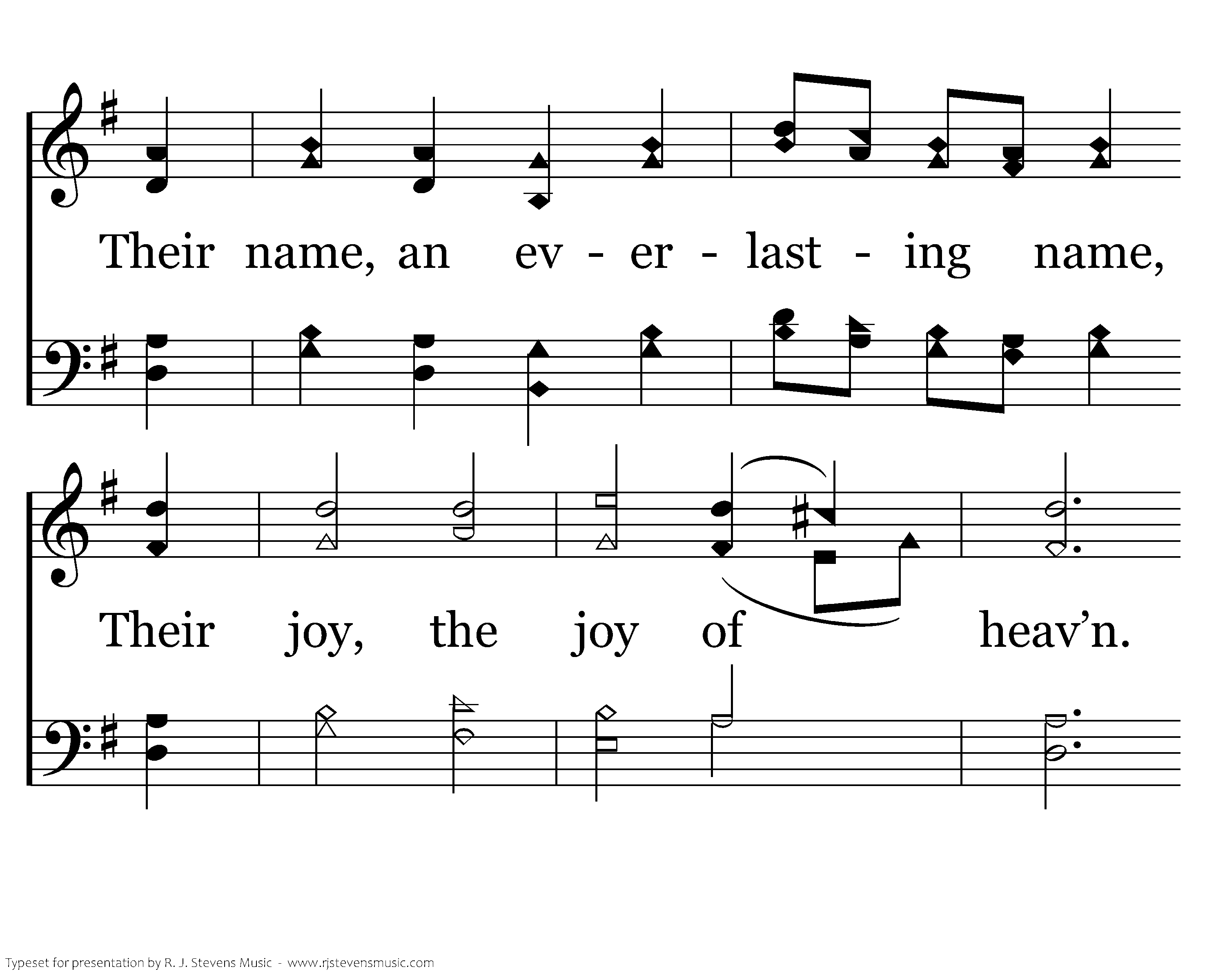 To them the cross with all its shame, With all its grace is giv’n; Their name, an everlasting name, Their joy, the joy of heav’n. Their name, an everlasting name, Their joy, the joy of heav’n.